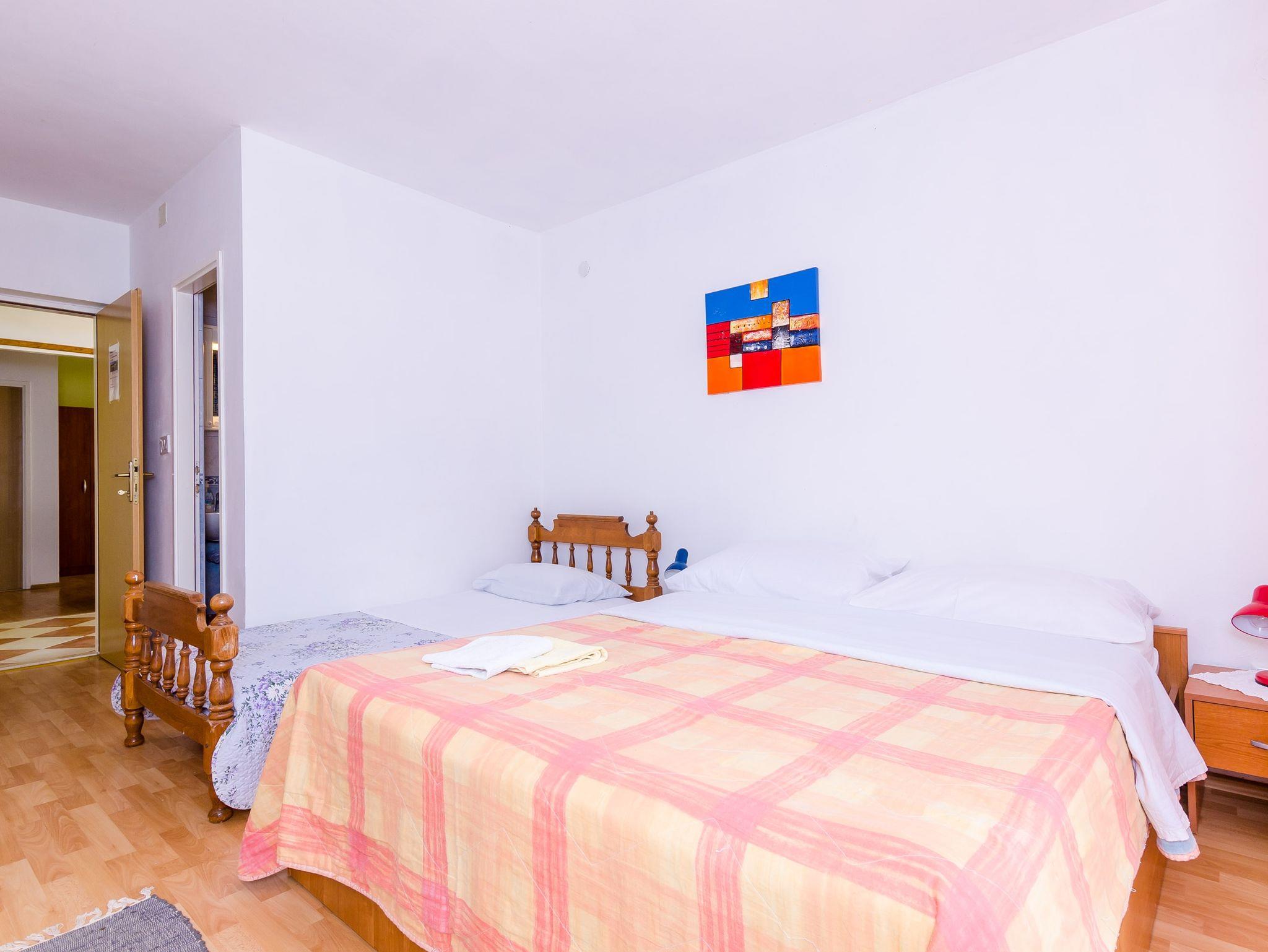 Ferienwohnung bietet Platz für 5 Gäste. Die Betten sind in Schlafzimmern, die es 1 gibt, und in Wohnzimmer, innerhalb einer Gesamtfläche von 37m2, angeordnet. Die Gäste haben eine eigene Terrasse zur Verfügung, auf der sie in warmen Sommernächten genießen können. Das Apartment bietet Meerblick. Für vollen Genuss und Entspannung gibt es einen privaten Grill für Gäste dieser Unterkunft. IM PREIS INBEGRIFFEN: Kurtaxe, Endreinigung, Klimatisierung, Parkplatz, Internet, Bügeleisen, Bügelbrett, Föhn, Liegestühle. Die Verfügbarkeit zusätzlicher Dienstleistungen in Ihrem reservierten Termin und die Preise derselben (falls nicht aufgeführt) müssen im Voraus überprüft werden. Zusätzliche Dienstleistungen die in der Zahlungsaufforderung nicht aufgeführt sind werden direkt beim Vermieter bezahlt, angenommen der Gast nutzt auch diese.