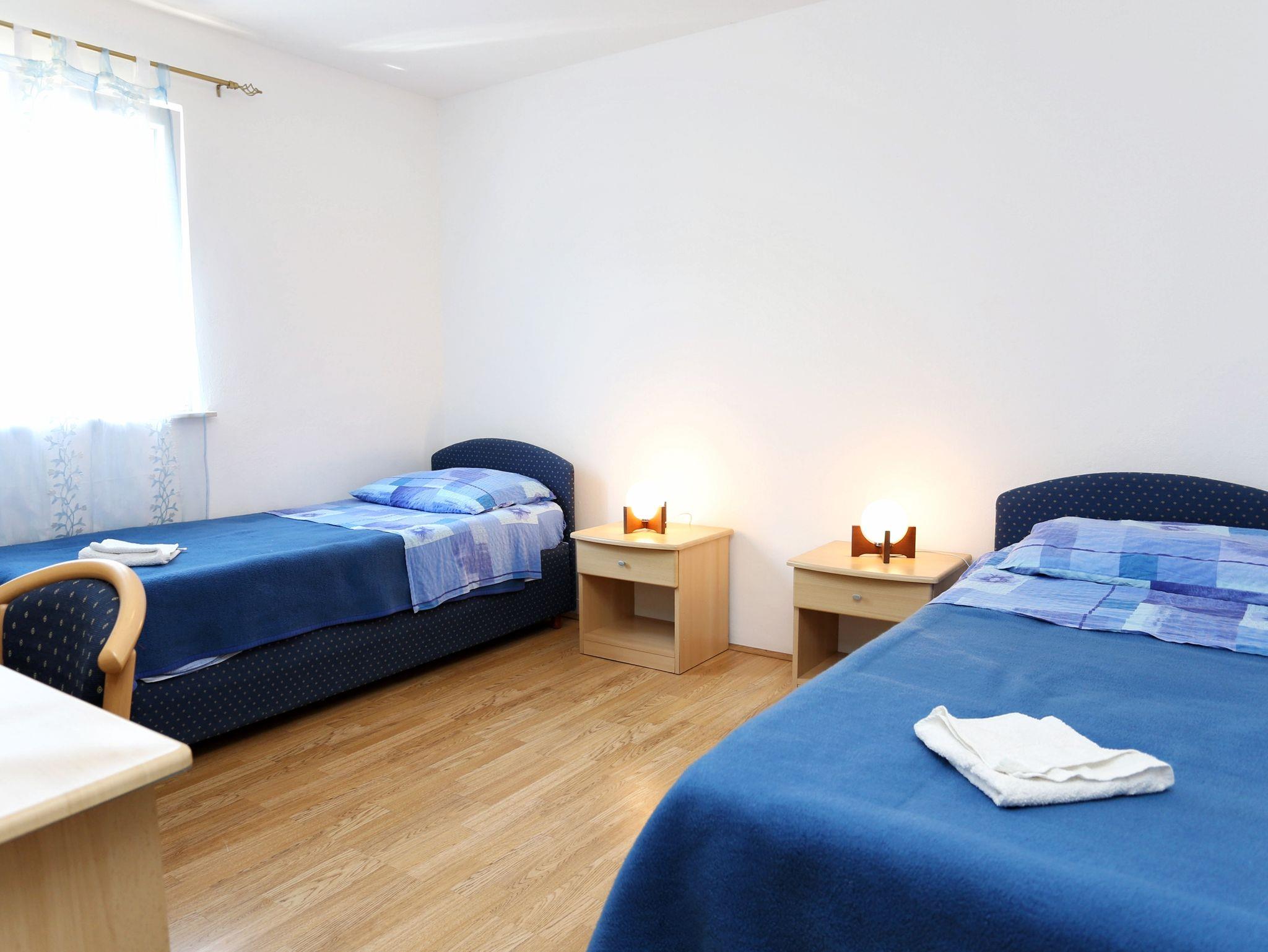 Ferienwohnung bietet Platz für 6 Gäste. Die Betten sind in Schlafzimmern, die es 2 gibt, und in Esszimmer, innerhalb einer Gesamtfläche von 49m2, angeordnet. Das Apartment bietet Meerblick. Es ist erlaubt, Speisen auf dem Gemeinschafts-Grill vorzubereiten. Die reservierte Unterkunftseinheit verfügt über einen gemeinsame Terrasse. IM PREIS INBEGRIFFEN: Kurtaxe, Endreinigung, Klimatisierung, Parkplatz, Internet, Bootsanlegeplatz, Kinderbett, Liegestühle. VERBINDLICHE ZUSÄTZLICHE KOSTEN: Aufzahlung für Kurzaufenthalte (prozentualer Zuschlag pro Nächtigungsanzahl: 30% - 1, 20% - 2, 10% - 3). Die Verfügbarkeit zusätzlicher Dienstleistungen in Ihrem reservierten Termin und die Preise derselben (falls nicht aufgeführt) müssen im Voraus überprüft werden. Zusätzliche Dienstleistungen die in der Zahlungsaufforderung nicht aufgeführt sind werden direkt beim Vermieter bezahlt, angenommen der Gast nutzt auch diese.