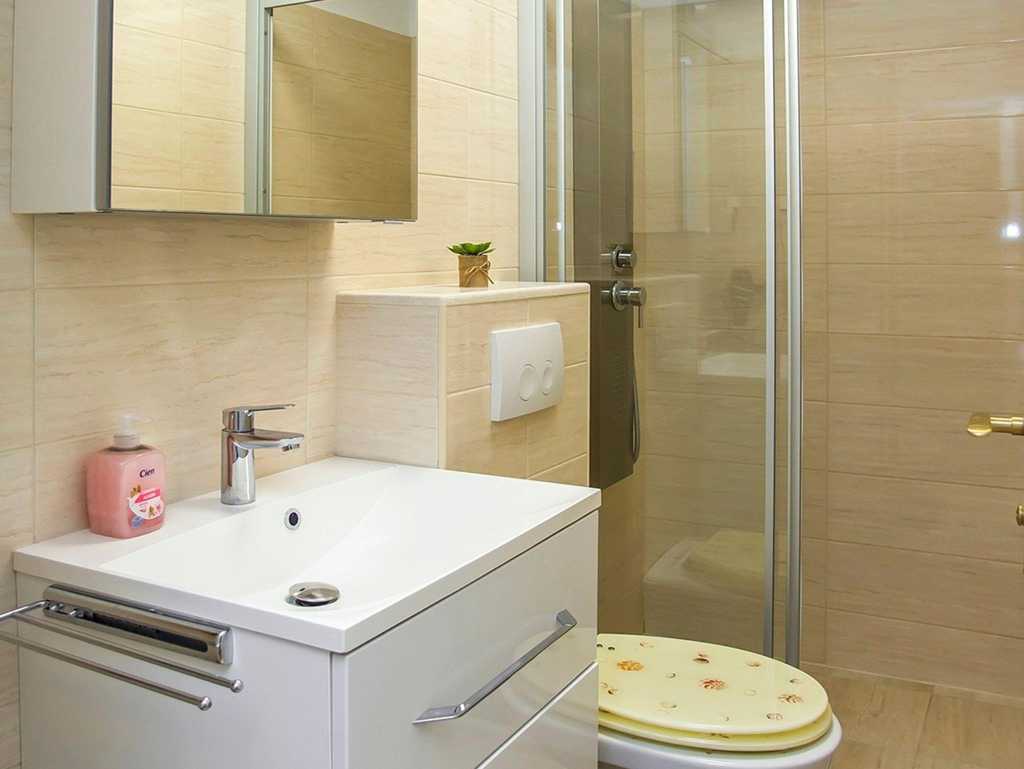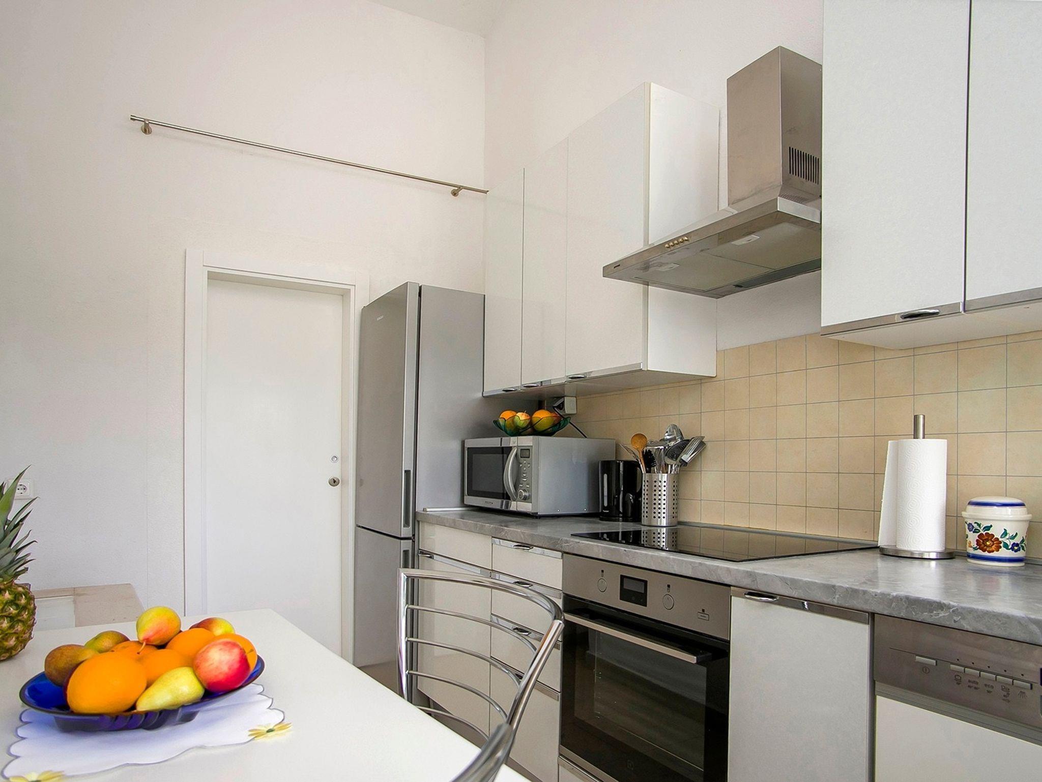 Haus bietet Platz für 8 Gäste. Die Betten sind in Schlafzimmern, die es 4 gibt, innerhalb einer Gesamtfläche von 129m2, angeordnet. Die Gäste haben eine eigene Terrasse zur Verfügung, auf der sie in warmen Sommernächten genießen können. Es ist erlaubt, Speisen auf dem Gemeinschafts-Grill vorzubereiten. IM PREIS INBEGRIFFEN: Kurtaxe, Endreinigung, Klimatisierung, Parkplatz, Internet, Föhn, tragbarer Grill. Die Verfügbarkeit zusätzlicher Dienstleistungen in Ihrem reservierten Termin und die Preise derselben (falls nicht aufgeführt) müssen im Voraus überprüft werden. Zusätzliche Dienstleistungen die in der Zahlungsaufforderung nicht aufgeführt sind werden direkt beim Vermieter bezahlt, angenommen der Gast nutzt auch diese.