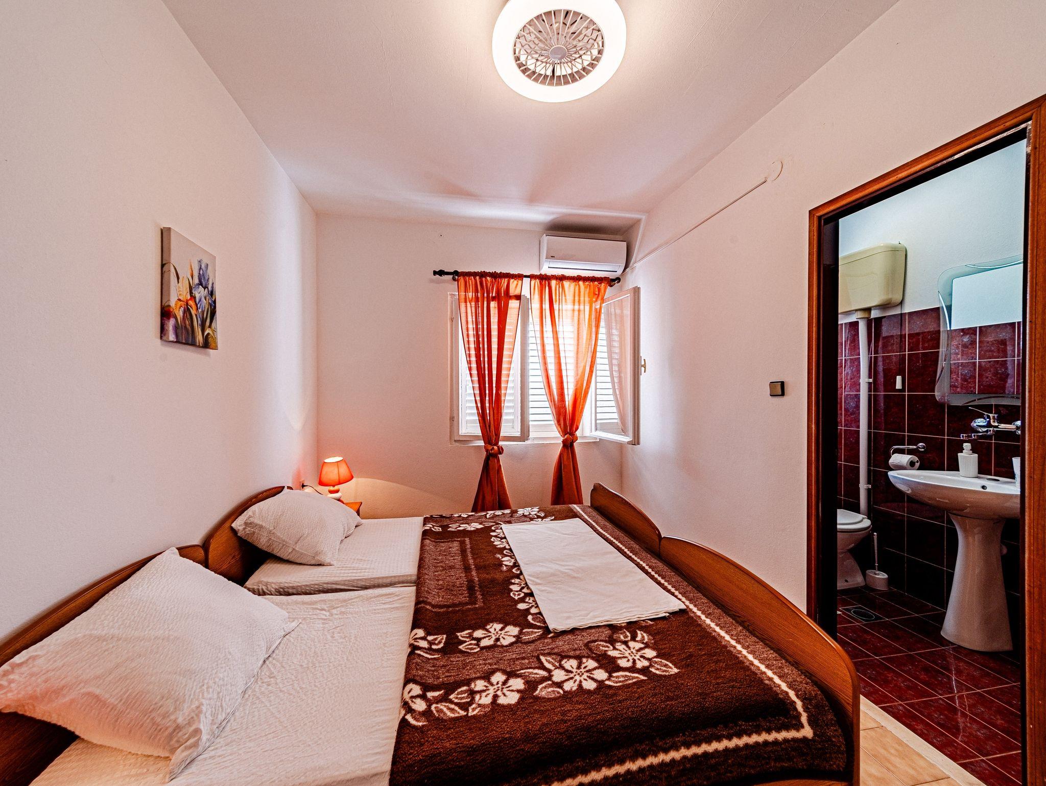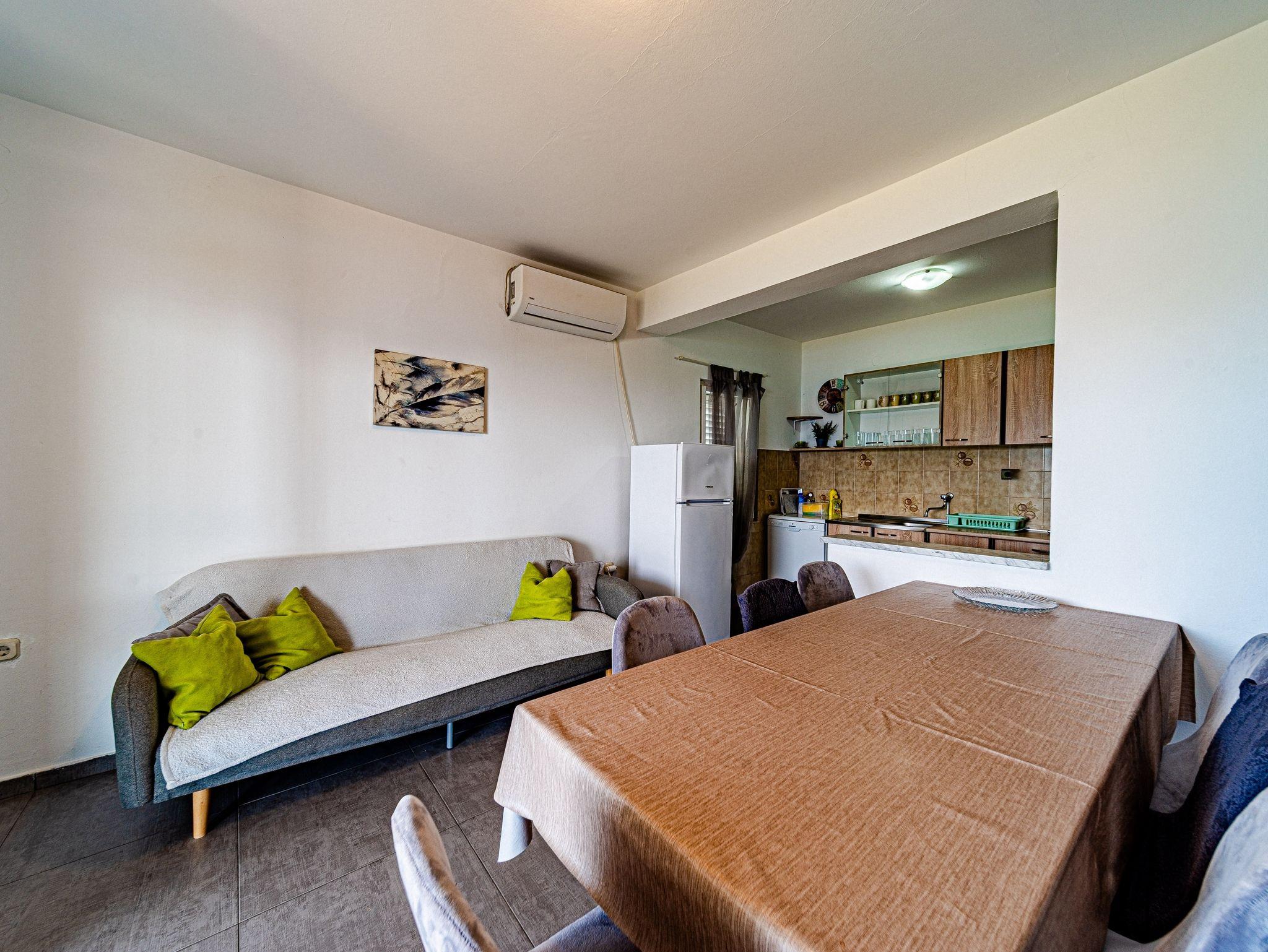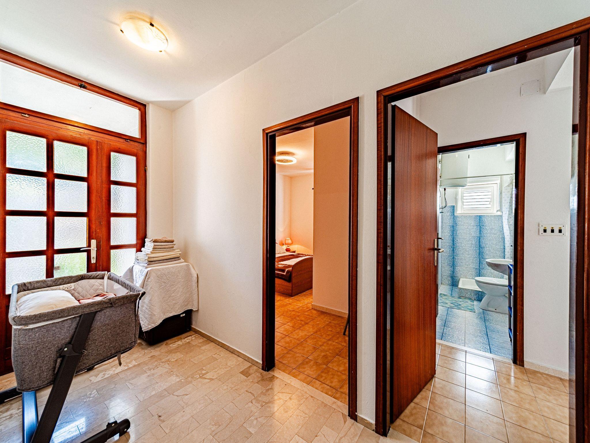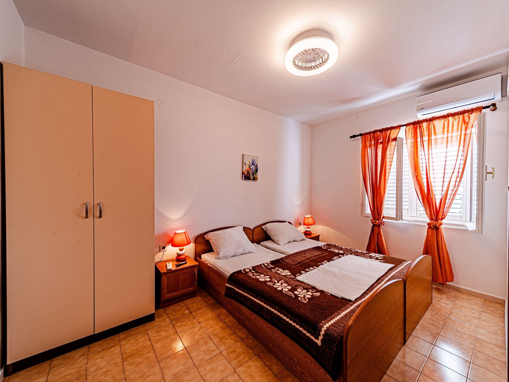 Ferienwohnung bietet Platz für 8 Gäste. Die Betten sind in Schlafzimmern, die es 4 gibt, innerhalb einer Gesamtfläche von 93m2, angeordnet. Die Gäste haben eine eigene Terrasse zur Verfügung, auf der sie in warmen Sommernächten genießen können. Das Apartment bietet Meerblick. Es ist erlaubt, Speisen auf dem Gemeinschafts-Grill vorzubereiten. IM PREIS INBEGRIFFEN: Kurtaxe, Endreinigung, Klimatisierung, Parkplatz, Internet, Bootsanlegeplatz, Kinderbett, Zusatzbett, Bügeleisen, Föhn, Liegestühle. VERBINDLICHE ZUSÄTZLICHE KOSTEN: Aufzahlung für Kurzaufenthalte (prozentualer Zuschlag pro Nächtigungsanzahl: 30% - 1, 20% - 2, 10% - 3). Die Verfügbarkeit zusätzlicher Dienstleistungen in Ihrem reservierten Termin und die Preise derselben (falls nicht aufgeführt) müssen im Voraus überprüft werden. Zusätzliche Dienstleistungen die in der Zahlungsaufforderung nicht aufgeführt sind werden direkt beim Vermieter bezahlt, angenommen der Gast nutzt auch diese.