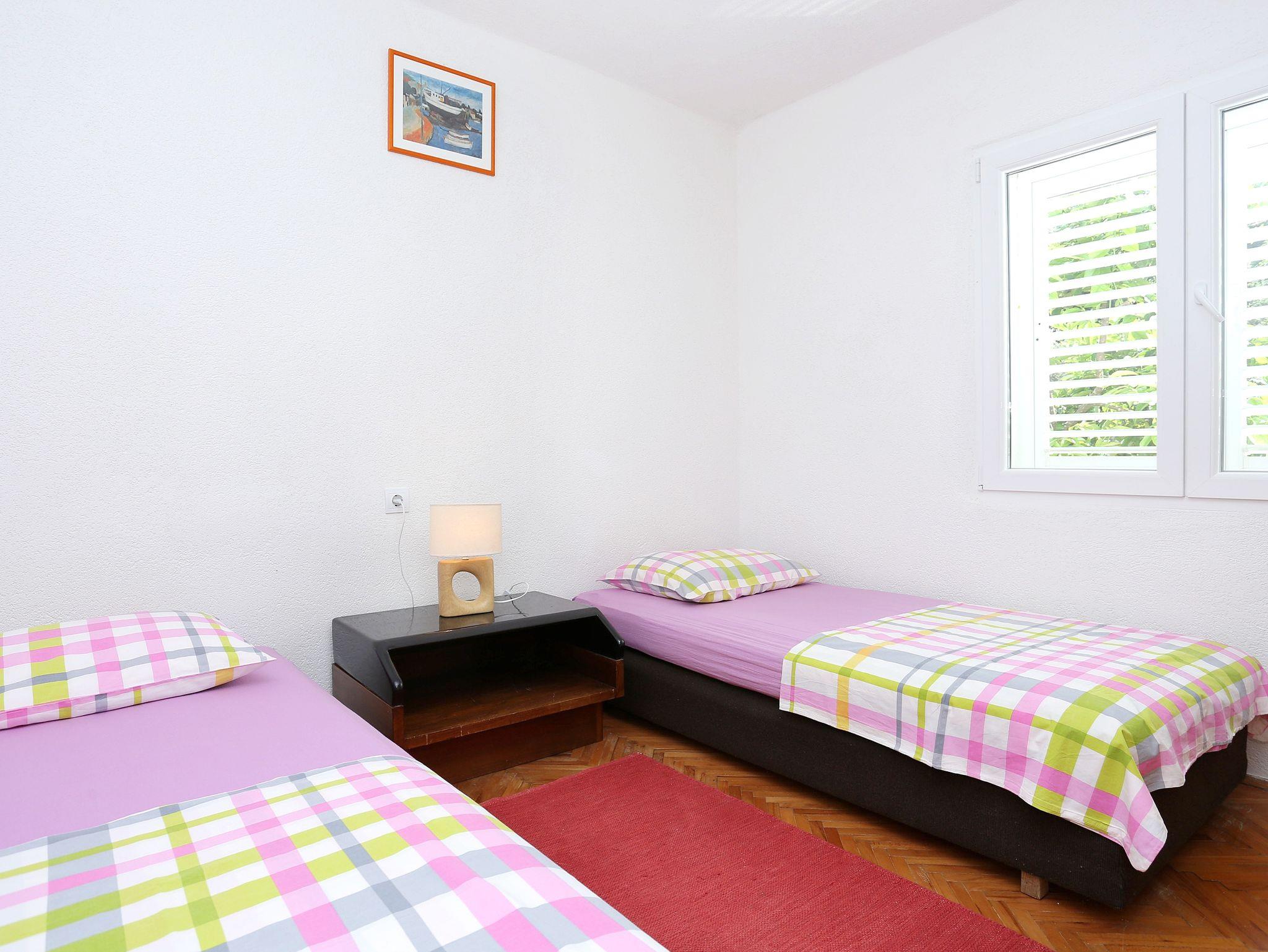 Ferienwohnung bietet Platz für 4 Gäste. Die Betten sind in Schlafzimmern, die es 2 gibt, innerhalb einer Gesamtfläche von 40m2, angeordnet. Die Gäste haben einen eigenen Balkon zur Verfügung, auf der sie in warmen Sommernächten genießen können. Das Apartment bietet Meerblick. Es ist erlaubt, Speisen auf dem Gemeinschafts-Grill vorzubereiten. IM PREIS INBEGRIFFEN: Kurtaxe, Endreinigung, Klimatisierung, Parkplatz, Internet, Bootsanlegeplatz, Bügeleisen, Bügelbrett, Föhn, Liegestühle. VERBINDLICHE ZUSÄTZLICHE KOSTEN: Aufzahlung für Kurzaufenthalte (prozentualer Zuschlag pro Nächtigungsanzahl: 30% - 1, 20% - 2, 10% - 3). Die Verfügbarkeit zusätzlicher Dienstleistungen in Ihrem reservierten Termin und die Preise derselben (falls nicht aufgeführt) müssen im Voraus überprüft werden. Zusätzliche Dienstleistungen die in der Zahlungsaufforderung nicht aufgeführt sind werden direkt beim Vermieter bezahlt, angenommen der Gast nutzt auch diese.
