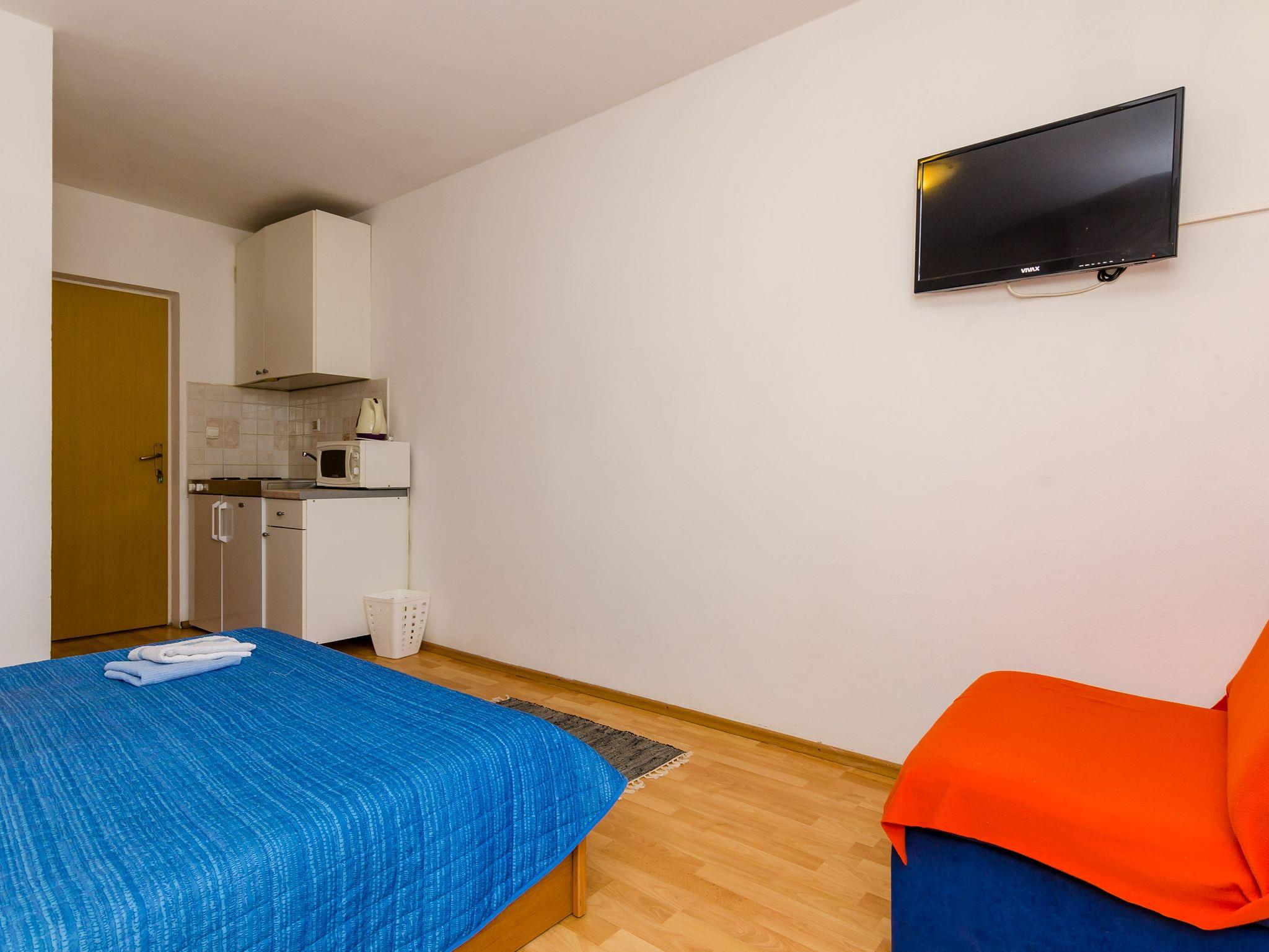 Studio bietet Platz für 3 Gäste. Die Betten sind in Schlafzimmern, die es 1 gibt, innerhalb einer Gesamtfläche von 25m2, angeordnet. Die Gäste haben eine eigene Terrasse zur Verfügung, auf der sie in warmen Sommernächten genießen können. Das Studio-Apartment bietet Meerblick. Es ist erlaubt, Speisen auf dem Gemeinschafts-Grill vorzubereiten. IM PREIS INBEGRIFFEN: Kurtaxe, Endreinigung, Klimatisierung, Parkplatz, Internet, Bügeleisen, Bügelbrett, Föhn, Liegestühle. Die Verfügbarkeit zusätzlicher Dienstleistungen in Ihrem reservierten Termin und die Preise derselben (falls nicht aufgeführt) müssen im Voraus überprüft werden. Zusätzliche Dienstleistungen die in der Zahlungsaufforderung nicht aufgeführt sind werden direkt beim Vermieter bezahlt, angenommen der Gast nutzt auch diese.