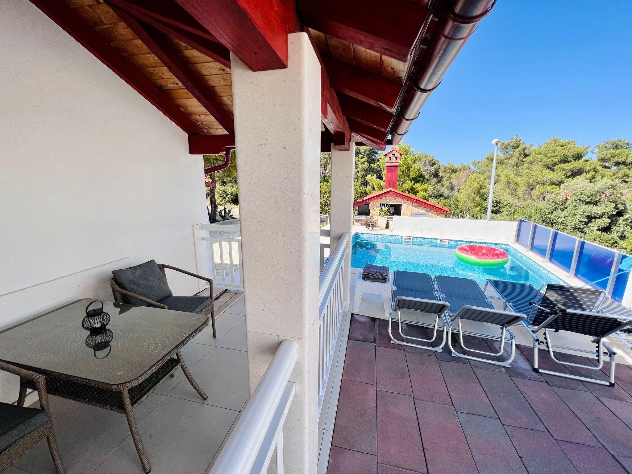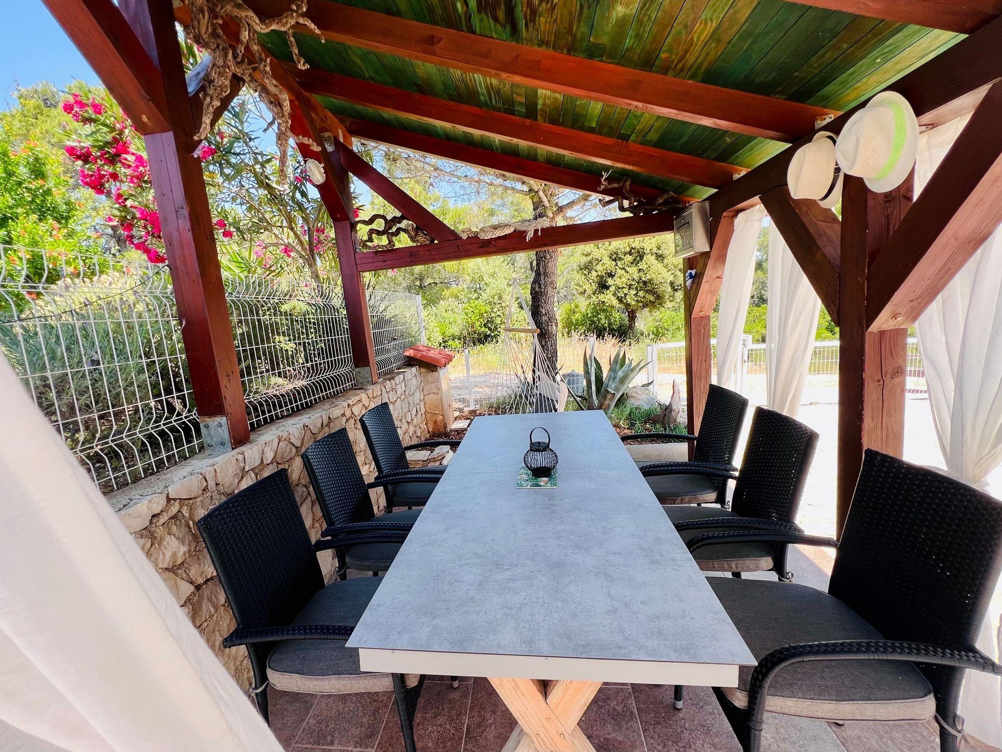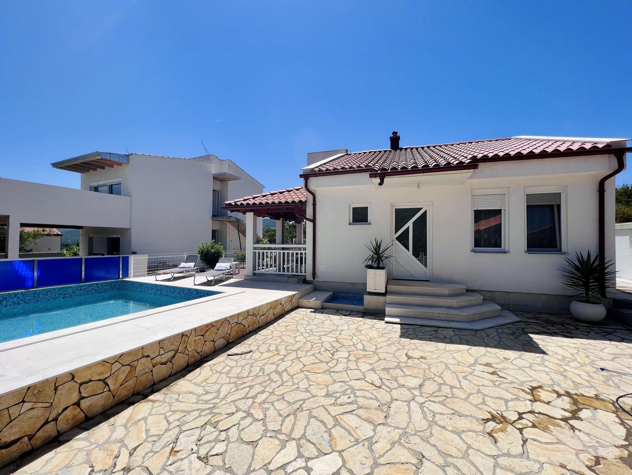 Haus bietet Platz für 6 Gäste. Die Betten sind in Schlafzimmern, die es 1 gibt, und in Wohnzimmer, innerhalb einer Gesamtfläche von 47m2, angeordnet. Die Gäste haben eine eigene Terrasse zur Verfügung, auf der sie in warmen Sommernächten genießen können. Für vollen Genuss und Entspannung gibt es einen privaten Grill für Gäste dieser Unterkunft. Während ihres Aufenthalts können sich Gäste im privaten Schwimmbad entspannen. In der Unterkunftseinheit besteht die Möglichkeit des Mitbringens von Haustieren gegen Aufpreis. IM PREIS INBEGRIFFEN: Kurtaxe, Endreinigung, Klimatisierung, Zentralheizung, Pool, Parkplatz, Internet, Kinderbett, Zusatzbett, Bügeleisen, Bügelbrett, Föhn. UNVERBINDLICHE ZUSÄTZLICHE KOSTEN: Haustiere (5,00 € pro Nacht). Die Verfügbarkeit zusätzlicher Dienstleistungen in Ihrem reservierten Termin und die Preise derselben (falls nicht aufgeführt) müssen im Voraus überprüft werden. Zusätzliche Dienstleistungen die in der Zahlungsaufforderung nicht aufgeführt sind werden direkt beim Vermieter bezahlt, angenommen der Gast nutzt auch diese. Ermäßigung auf den Grundpreis: Gratistag 14=13 (bei einem Aufenthalt von 14 Tagen oder mehr erhalten Sie einen Gratistag für den Aufenthalt bis 31.12.26).