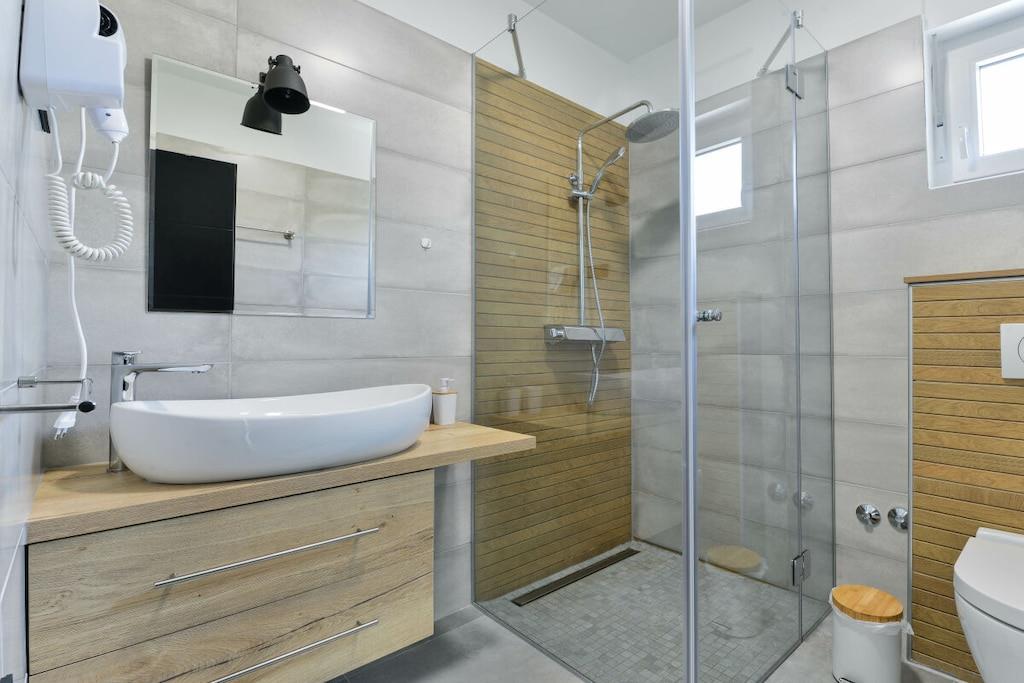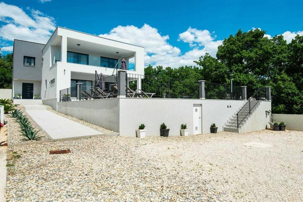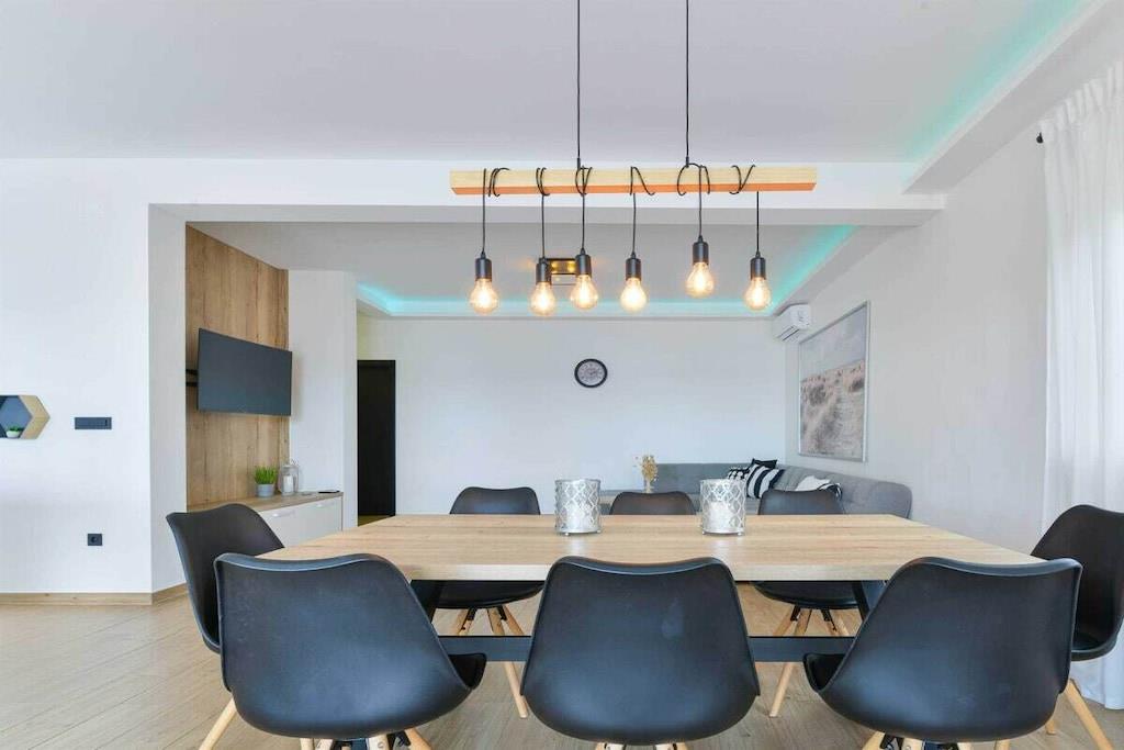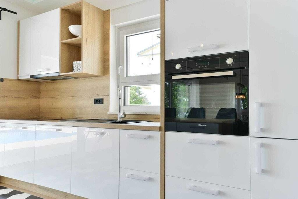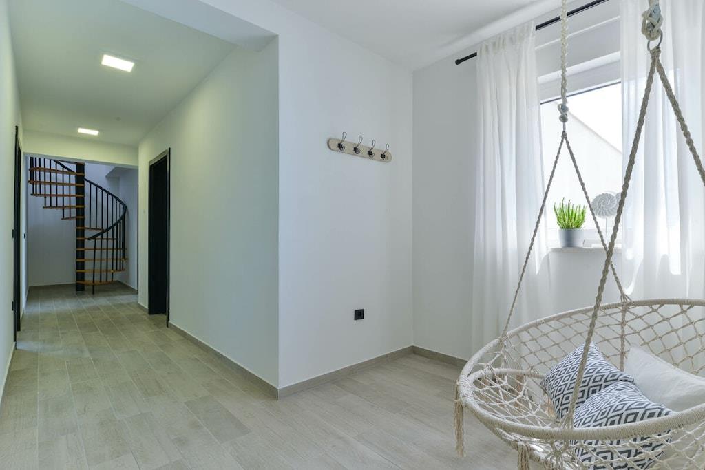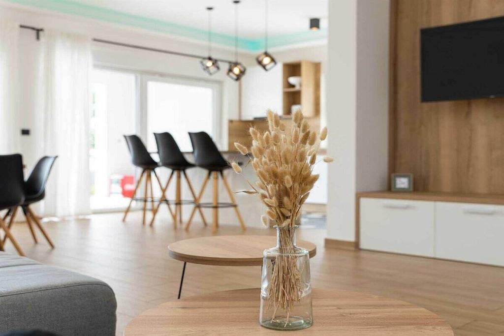 Diese luxuriöse 4 * Villa, nur 70 m vom Strand entfernt, wird Sie atemlos machen. Dies ist eine Oase der Ruhe und Entspannung für alle Sinne. Villa besteht aus vier Schlafzimmern, jedes mit eigenem Bad. Zwei von ihnen haben eine Terrasse und einen atemberaubenden Blick auf das Meer. Im Erdgeschoss befinden sich eine geräumige, voll ausgestattete Küche, ein Esszimmer, ein Wohnzimmer, eine Terrasse mit Zugang zum Außenpoolbereich mit Liegestühlen, ein Grillplatz, eine Tischtennisplatte und fünf gesicherte Parkplätze. Die Villa wurde in einem hochwertigen, spezifischen Industriestil eingerichtet, der sich durch das gesamte Innere zieht und auch perfekt mit dem Äußeren dieser modernen Villa harmoniert.