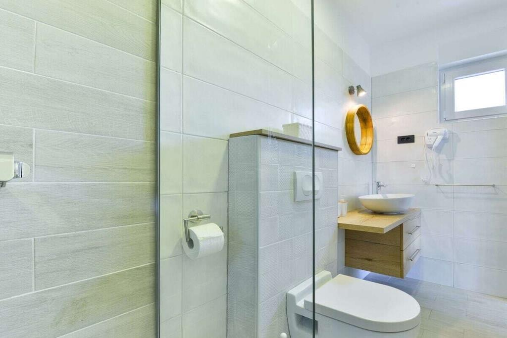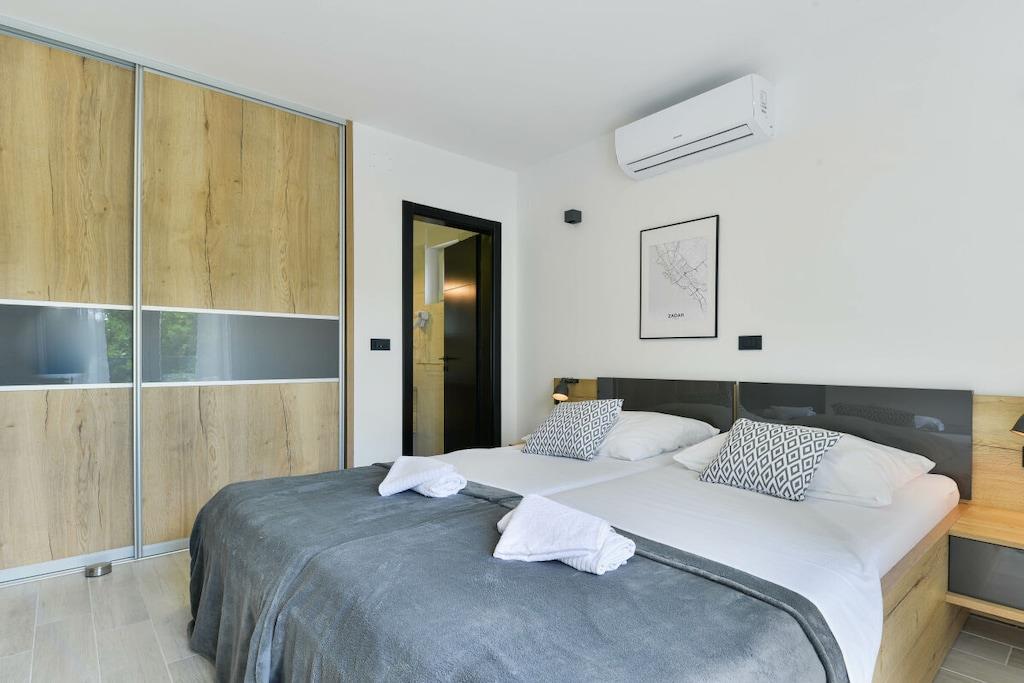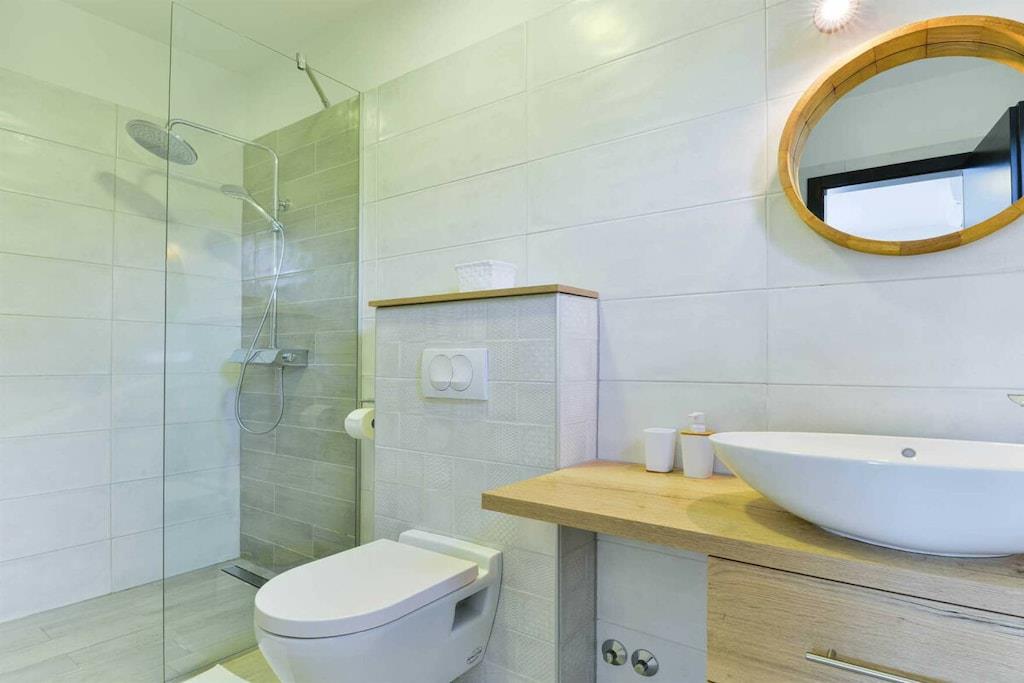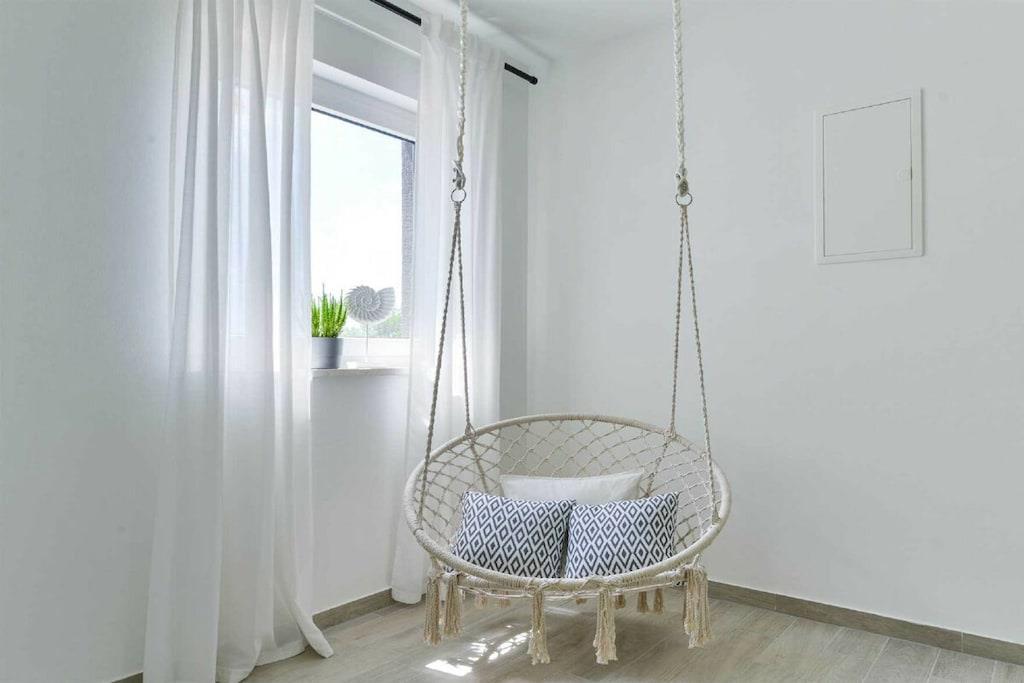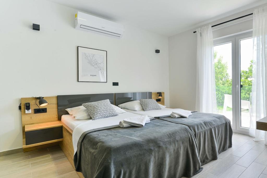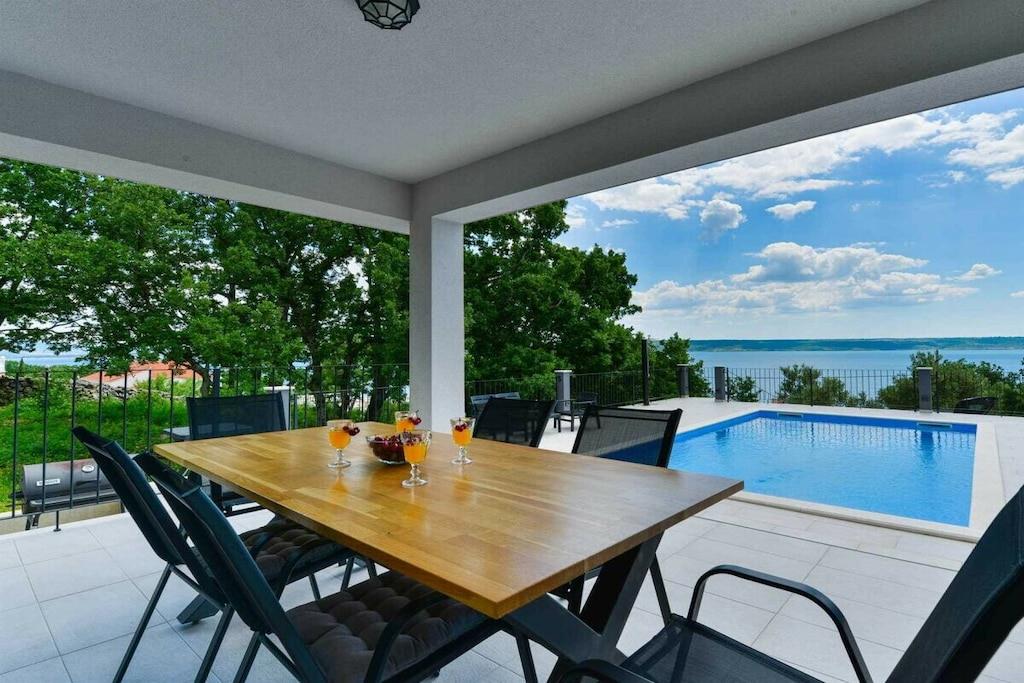 Diese luxuriöse 4 * Villa, nur 70 m vom Strand entfernt, wird Sie atemlos machen. Dies ist eine Oase der Ruhe und Entspannung für alle Sinne. Villa besteht aus vier Schlafzimmern, jedes mit eigenem Bad. Zwei von ihnen haben eine Terrasse und einen atemberaubenden Blick auf das Meer. Im Erdgeschoss befinden sich eine geräumige, voll ausgestattete Küche, ein Esszimmer, ein Wohnzimmer, eine Terrasse mit Zugang zum Außenpoolbereich mit Liegestühlen, ein Grillplatz, eine Tischtennisplatte und fünf gesicherte Parkplätze. Die Villa wurde in einem hochwertigen, spezifischen Industriestil eingerichtet, der sich durch das gesamte Innere zieht und auch perfekt mit dem Äußeren dieser modernen Villa harmoniert.