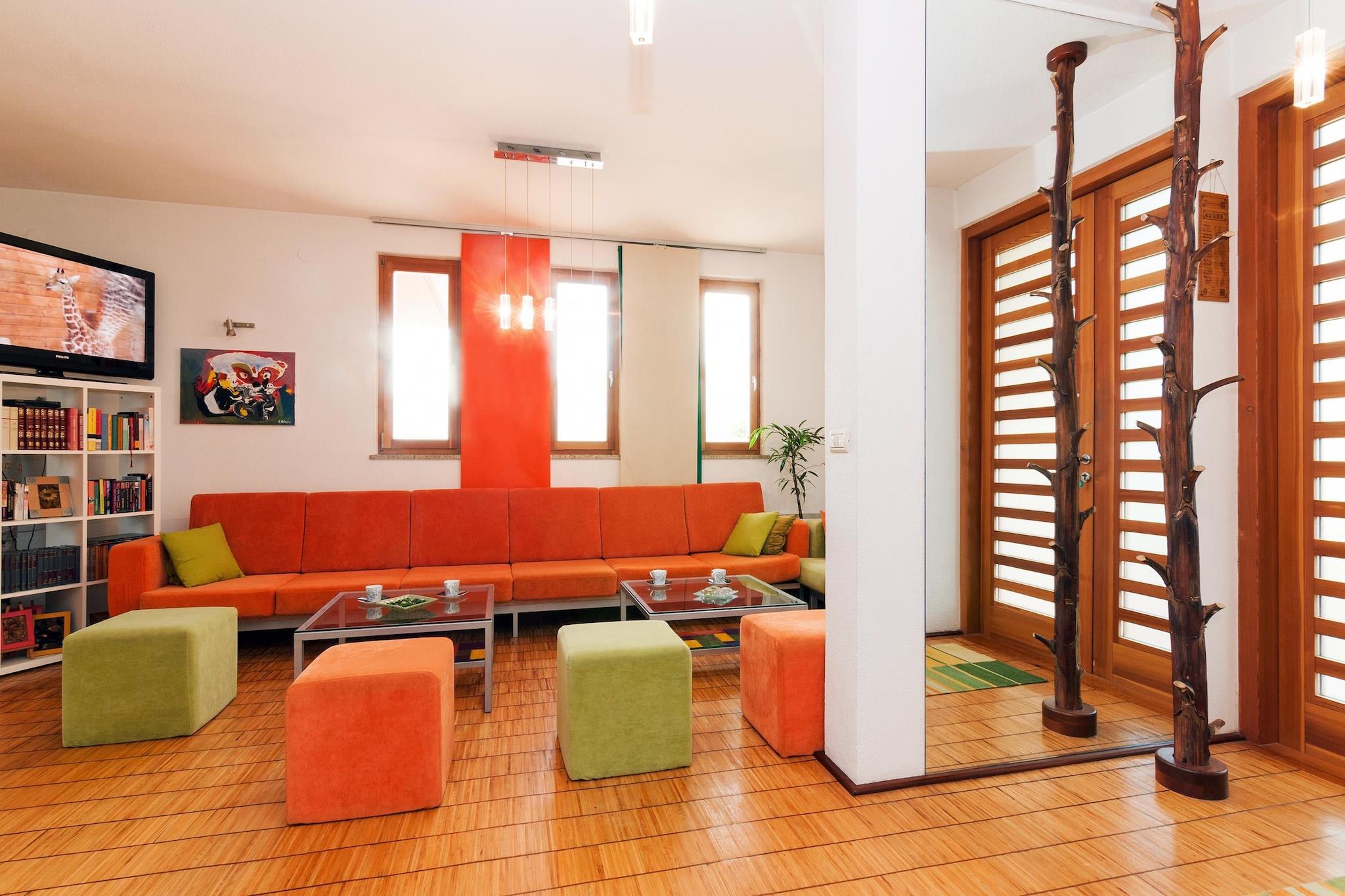 Moderne og komfortabelt indrettet ferievilla i den lille, rolige landsby Rovanjska. Feriehuset har 4 soveværelser og 2 badeværelser og byder derfor på god plads til alle medrejsende. Fra den smukke, store altan har du en vidunderlig panoramaudsigt over havet og Velebit-bjergene. I løbet af dagen kan du slappe af ved din pool og afslutte aftenen på din terrasse med en grill. Småstensstranden på en særlig ren strækning af Adriaterhavet ligger kun få skridt væk. En dejlig gåtur ved havet tager dig til restauranter, caféer, barer og butikker i Rovanjska. Højdepunkter inkluderet: forbrugsbaserede energiomkostninger, WiFi, registreringsgebyr, turistskat, sengelinned og håndklæder. Aktiviteter i nærheden : Området er perfekt for folk, der kan lide at tilbringe deres ferie aktivt med vandreture, mountainbiking og vandsport. Zrmanja-floden er ideel til kanosejlads. Besøg også Paklenica National Park, der ligger 11 kilometer fra din bolig og omkring 50 km nord for Zadar mellem kysten og Velebits højeste toppe. De 400 meter høje klipper, grotter, grotter og bizarre klippeformationer gør dette landskab til en enestående naturoplevelse. Du finder dog ikke kun et goldt karstlandskab her, for de stejle klippeskråninger er dækket af tæt og usædvanlig fyrreskov på grund af klimaet. Inden for parken er der et netværk af over 150 km vandrestier, som giver mulighed for både korte vandreture og flerdages trekking. Den mest populære vandretur tager omkring to timer og fører fra indgangen til parken gennem den imponerende Velika Paklenica-kløft. På vejen kan man se forskellige vandmøller, som ikke længere er i brug, men er velbevarede. Og i Lugarnica-skovhytten kan du forstærke dig med en solid snack. Den smukke by Zadar ligger kun 30 km herfra, hvor du kan besøge en masse historiske seværdigheder og også et indkøbscenter. Mobilitet: ikke egnet til personer med nedsat mobilitet.