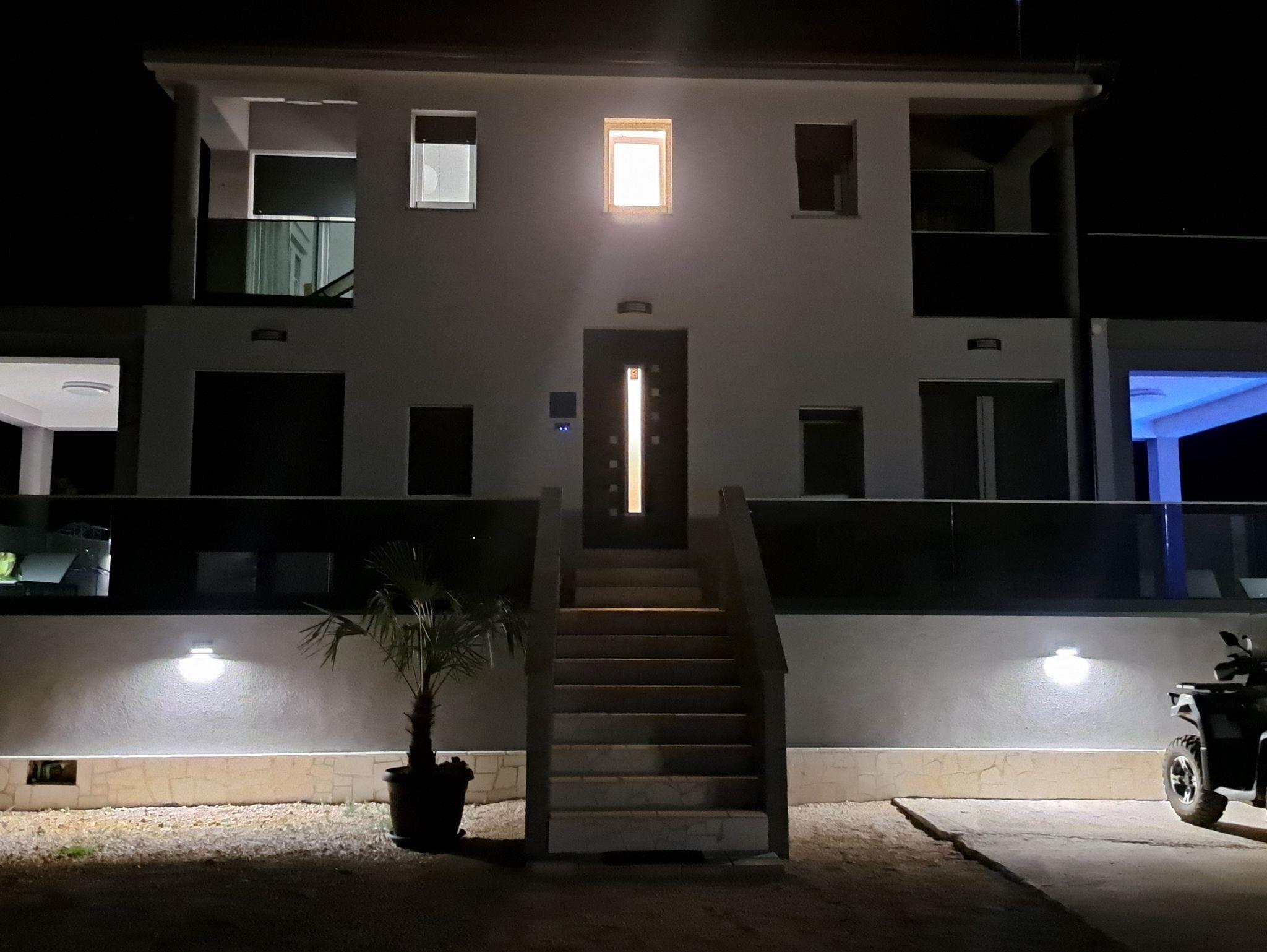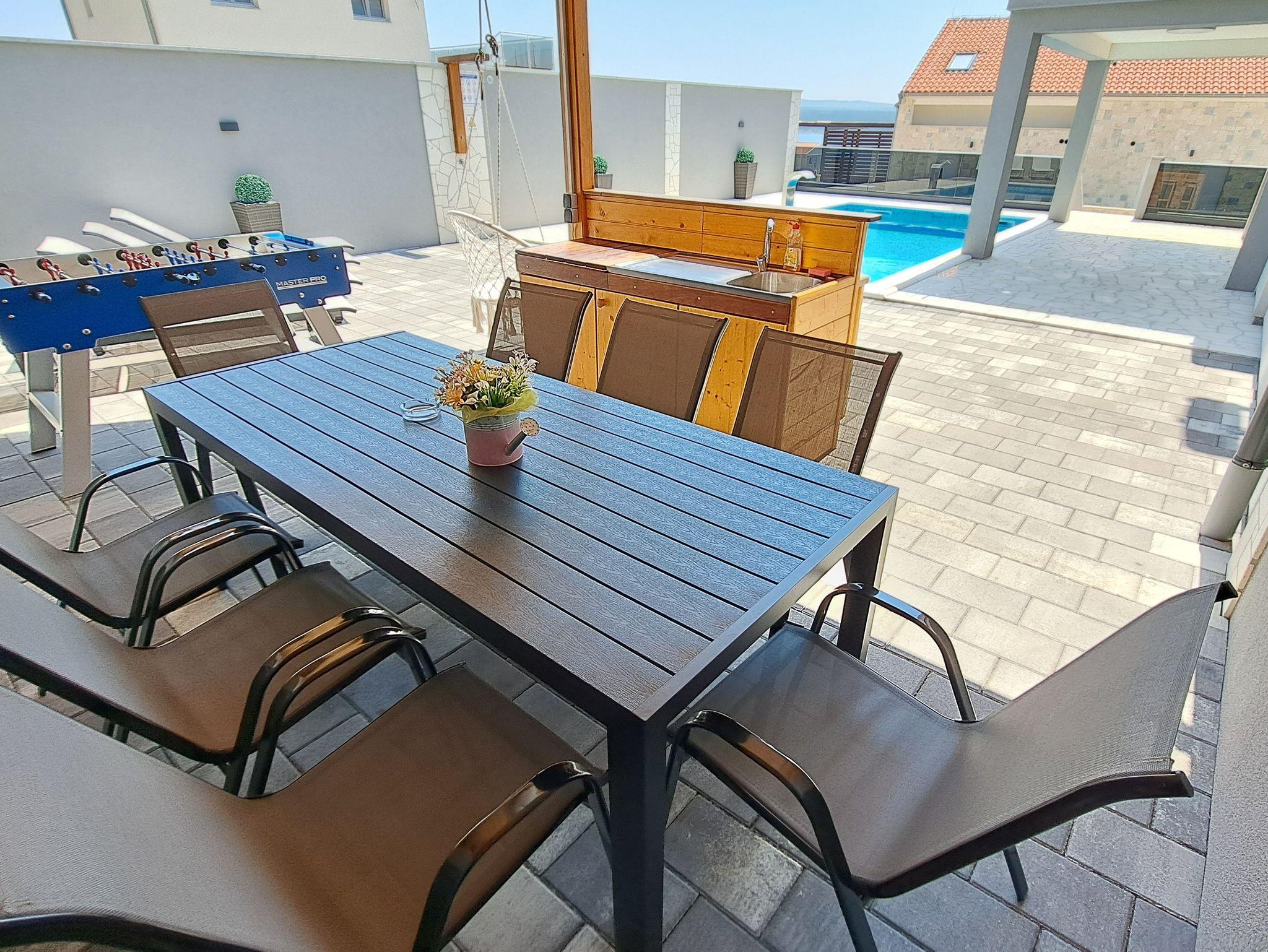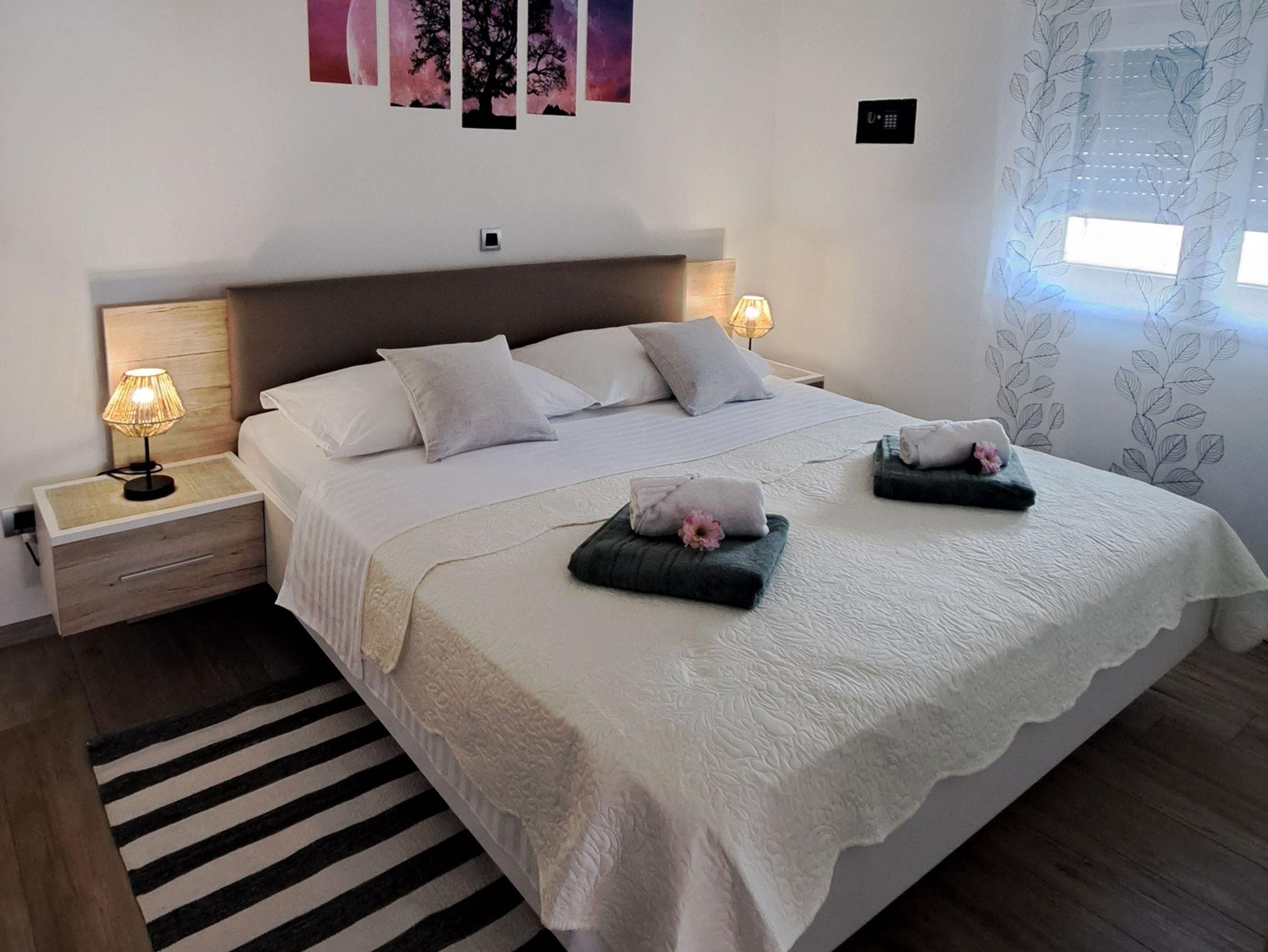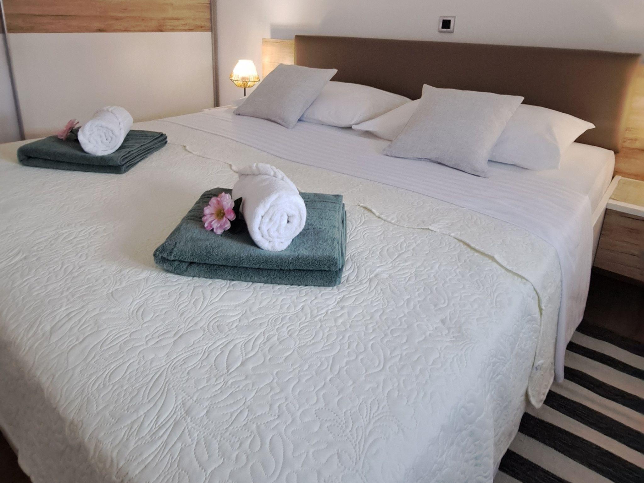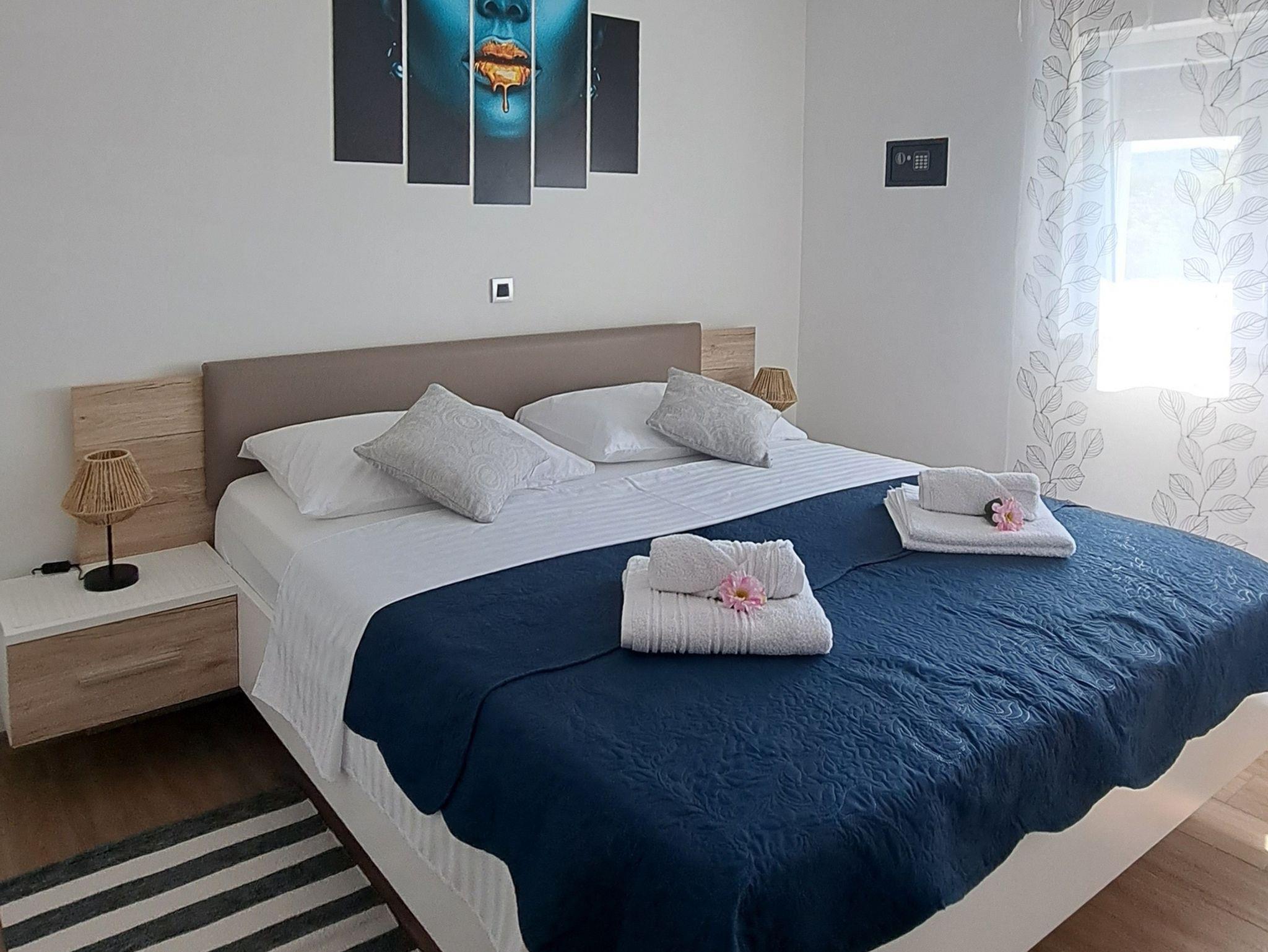 Haus bietet Platz für 16 Gäste. Die Betten sind in Schlafzimmern, die es 4 gibt, und in Wohnzimmer, innerhalb einer Gesamtfläche von 144m2, angeordnet. Die Gäste haben einen eigenen Balkon zur Verfügung, auf der sie in warmen Sommernächten genießen können. Das Haus bietet Meerblick. Für vollen Genuss und Entspannung gibt es einen privaten Grill für Gäste dieser Unterkunft. Während ihres Aufenthalts können Gäste das gemeinsam zur Nutzung stehende Schwimmbad benutzen. In der Unterkunftseinheit besteht die Möglichkeit des Mitbringens von Haustieren gegen Aufpreis. Räume der gebuchten Unterkunftseinheit werden nicht in eine Ganze verbunden. IM PREIS INBEGRIFFEN: Kurtaxe, Endreinigung, Klimatisierung, Pool, Parkplatz, Internet, Bootsanlegeplatz, Kinderbett, Zusatzbett, Bügeleisen, Föhn. UNVERBINDLICHE ZUSÄTZLICHE KOSTEN: Haustiere (5,00 € pro Nacht). Die Verfügbarkeit zusätzlicher Dienstleistungen in Ihrem reservierten Termin und die Preise derselben (falls nicht aufgeführt) müssen im Voraus überprüft werden. Zusätzliche Dienstleistungen die in der Zahlungsaufforderung nicht aufgeführt sind werden direkt beim Vermieter bezahlt, angenommen der Gast nutzt auch diese. Ermäßigung auf den Grundpreis: Gratistag 14=13 (bei einem Aufenthalt von 14 Tagen oder mehr erhalten Sie einen Gratistag für den Aufenthalt bis 31.12.26).