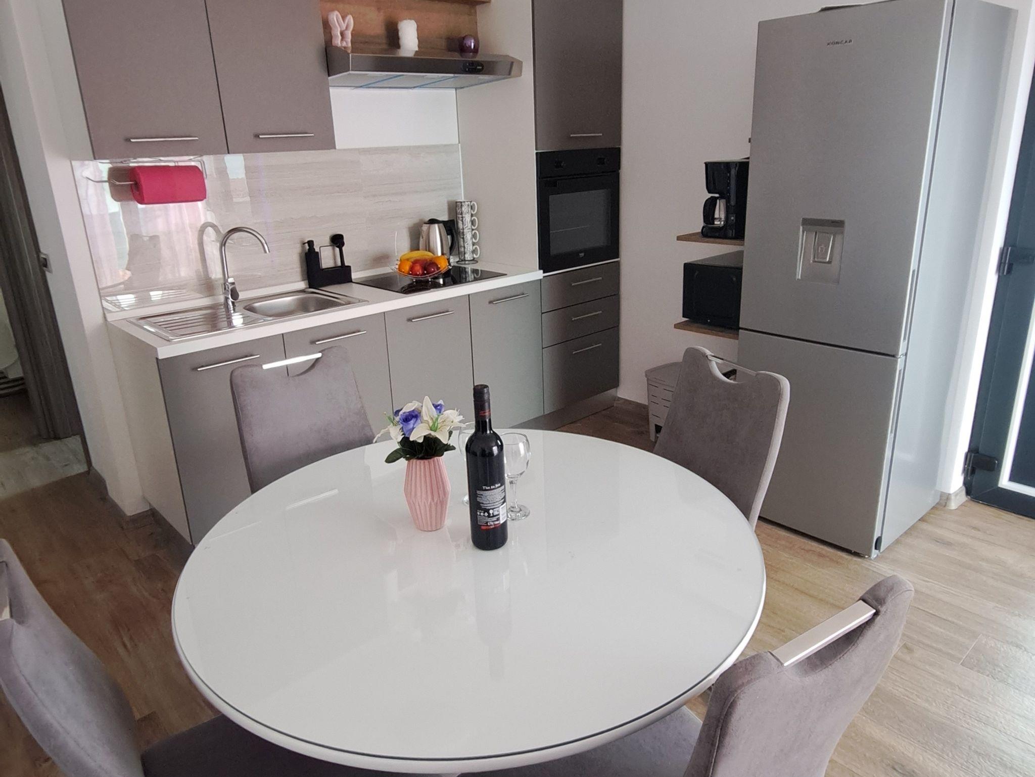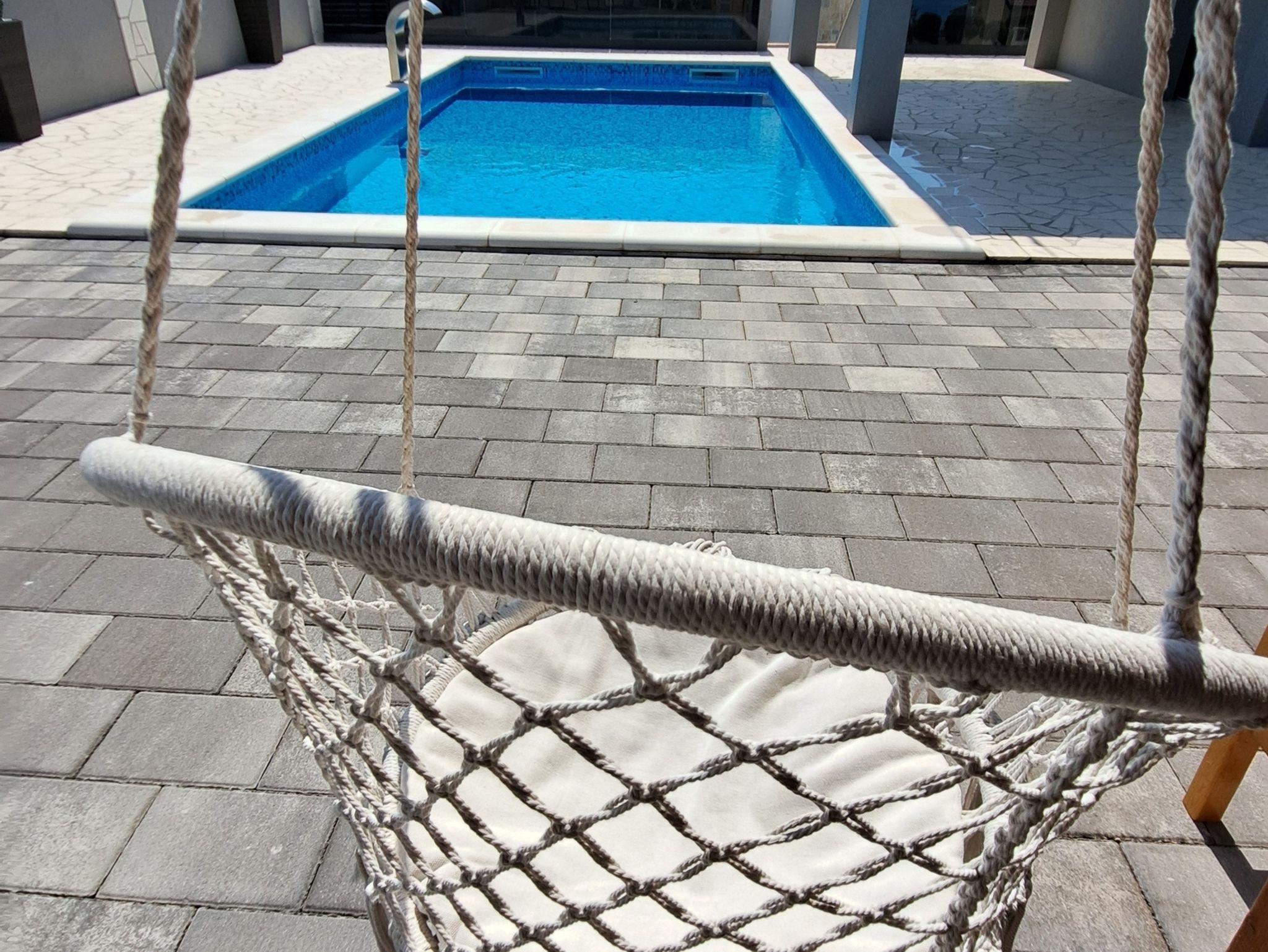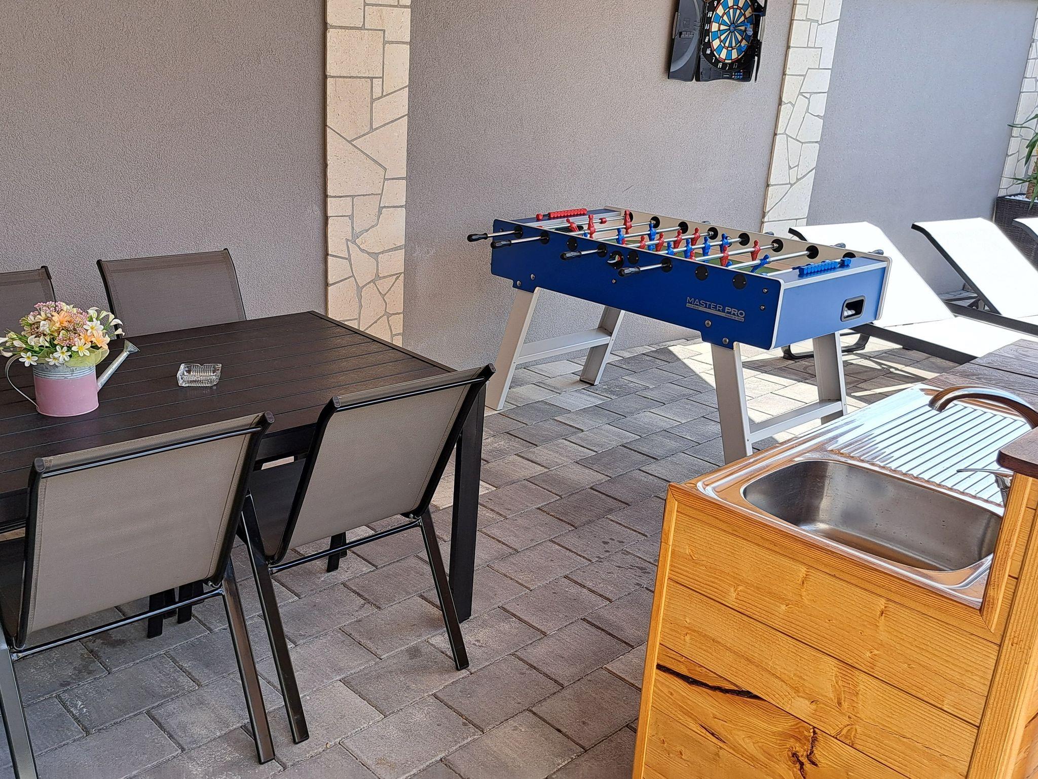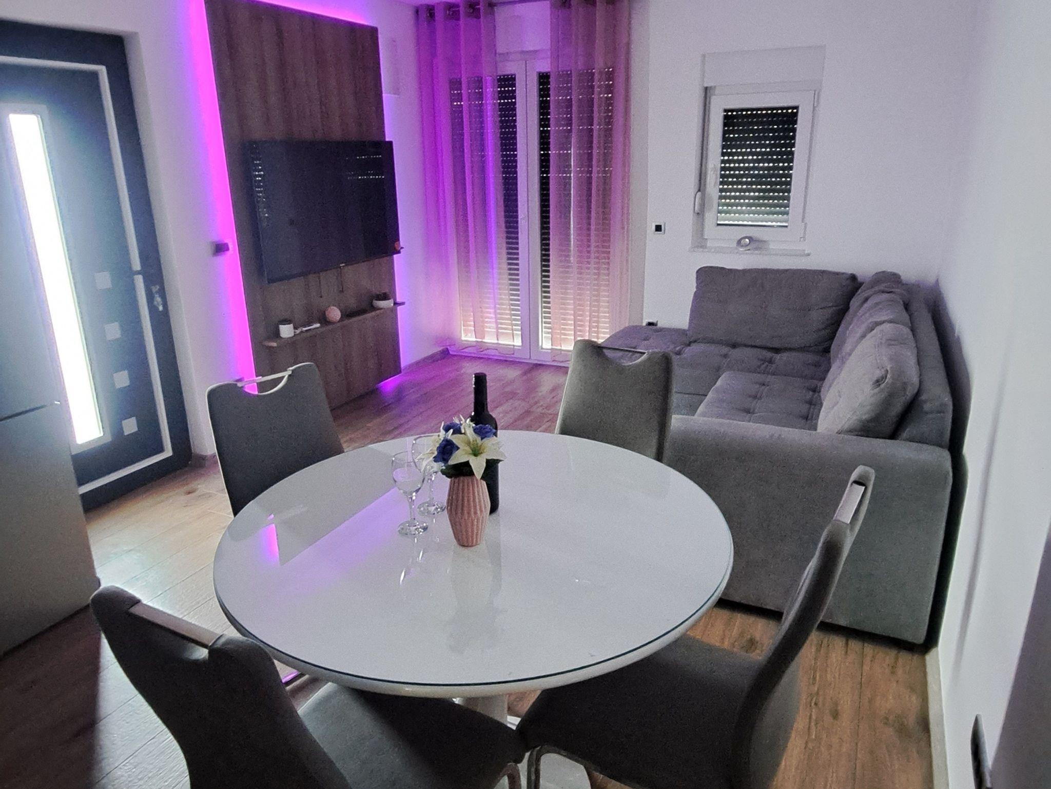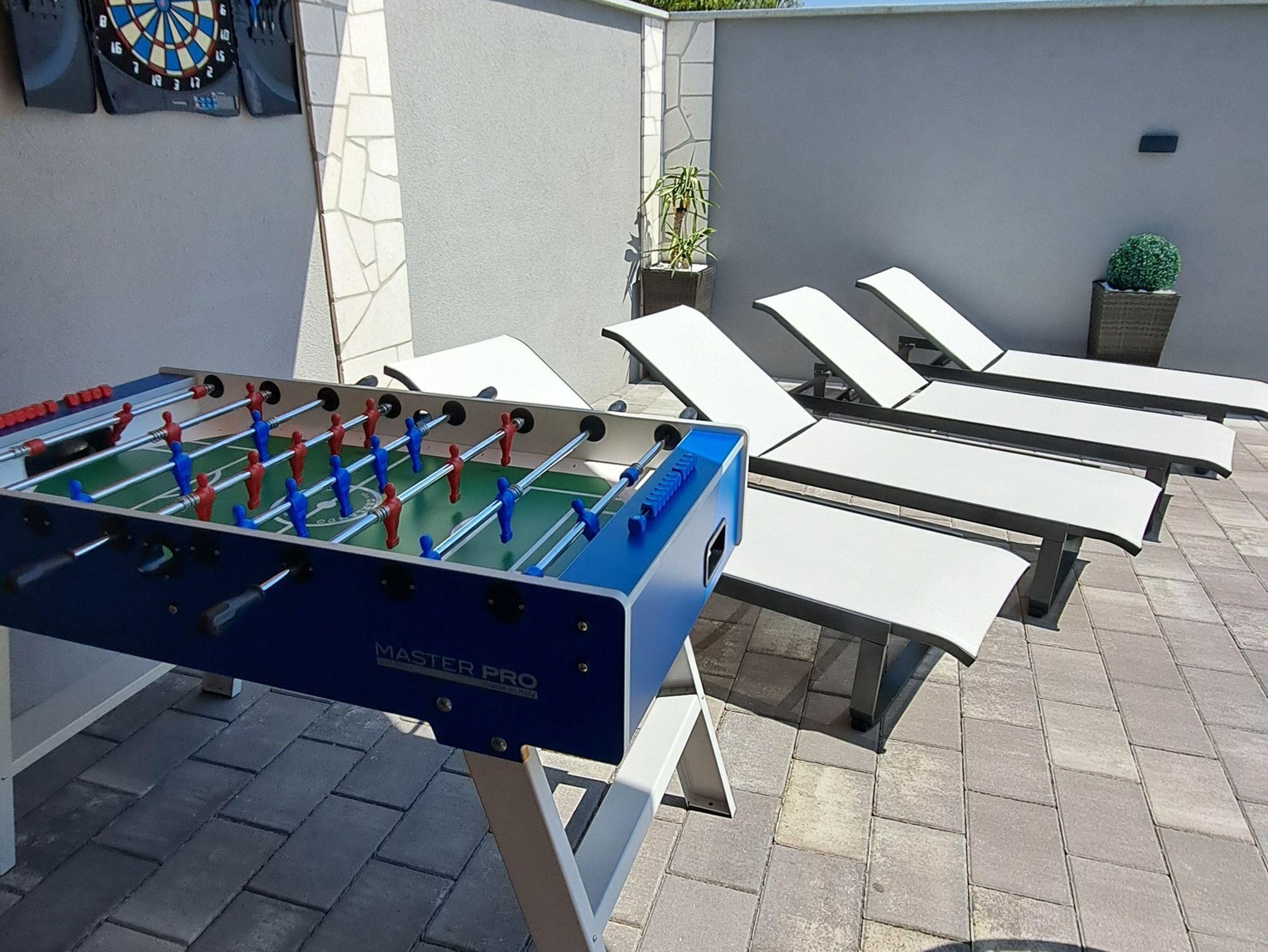 Haus bietet Platz für 16 Gäste. Die Betten sind in Schlafzimmern, die es 4 gibt, und in Wohnzimmer, innerhalb einer Gesamtfläche von 144m2, angeordnet. Die Gäste haben einen eigenen Balkon zur Verfügung, auf der sie in warmen Sommernächten genießen können. Das Haus bietet Meerblick. Für vollen Genuss und Entspannung gibt es einen privaten Grill für Gäste dieser Unterkunft. Während ihres Aufenthalts können Gäste das gemeinsam zur Nutzung stehende Schwimmbad benutzen. In der Unterkunftseinheit besteht die Möglichkeit des Mitbringens von Haustieren gegen Aufpreis. Räume der gebuchten Unterkunftseinheit werden nicht in eine Ganze verbunden. IM PREIS INBEGRIFFEN: Kurtaxe, Endreinigung, Klimatisierung, Pool, Parkplatz, Internet, Bootsanlegeplatz, Kinderbett, Zusatzbett, Bügeleisen, Föhn. UNVERBINDLICHE ZUSÄTZLICHE KOSTEN: Haustiere (5,00 € pro Nacht). Die Verfügbarkeit zusätzlicher Dienstleistungen in Ihrem reservierten Termin und die Preise derselben (falls nicht aufgeführt) müssen im Voraus überprüft werden. Zusätzliche Dienstleistungen die in der Zahlungsaufforderung nicht aufgeführt sind werden direkt beim Vermieter bezahlt, angenommen der Gast nutzt auch diese. Ermäßigung auf den Grundpreis: Gratistag 14=13 (bei einem Aufenthalt von 14 Tagen oder mehr erhalten Sie einen Gratistag für den Aufenthalt bis 31.12.26).