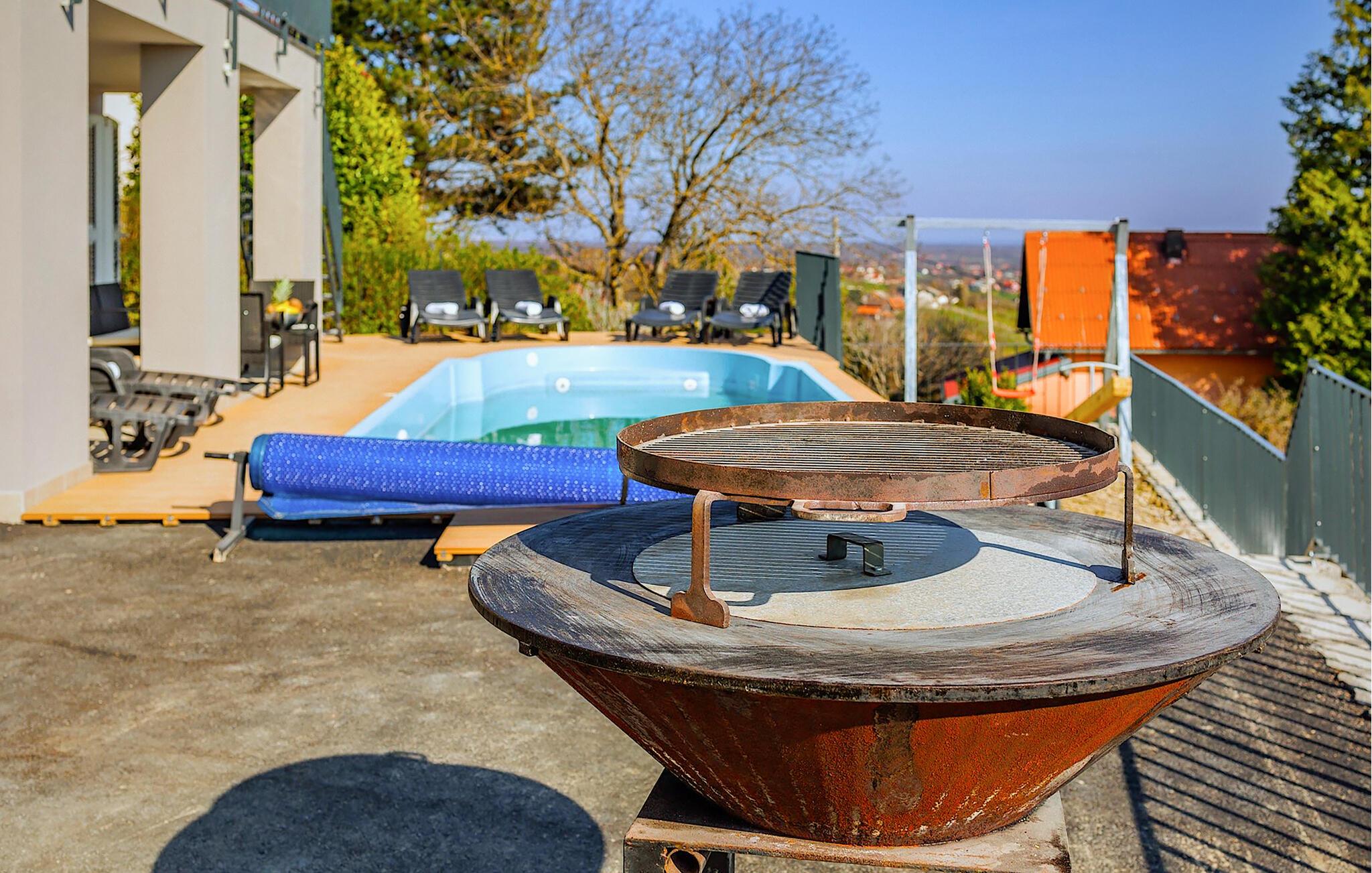 Velkommen til dette attraktive hus, hvor I som større familie får den ideelle base for et absolut lækkert ophold, omgivet af smuk natur og med en vidunderlig udsigt over landskabet. Indretningen fremtræder flot og indbydende med gode, moderne faciliteter, der gør det nemt for jer at slappe af med det samme, I stiller kufferterne. Efter en dag på udflugt kan I forkæle kroppen med god wellness i saunaen eller spabadet, tage et slag pool inden aftensmaden og nyde en lækker aftensmad med et vidunderligt skue. Bider vejret lidt, kan I tænde op i brændeovnen og nyde dens varme knitren til en hyggelig aften med brætspil eller en god film til sent.