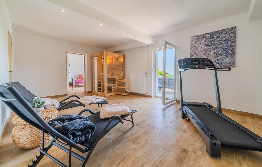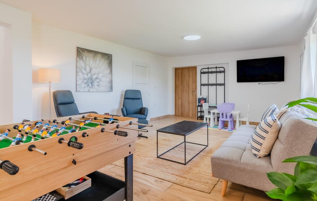Tag familien eller jeres bedste venner med – dette rummelige feriehus tilbyder masser af plads til hyggelige måltider, sjove madlavningsaftener og hyggelige timer med familien. Brug den lyse, rummelige opholdsstue til at nyde bordfodboldbordet, afhold en spilleaften eller stream en spændende film. Hold jer i form på løbebåndet eller forkæl jer selv med en afslappende tid i saunaen.