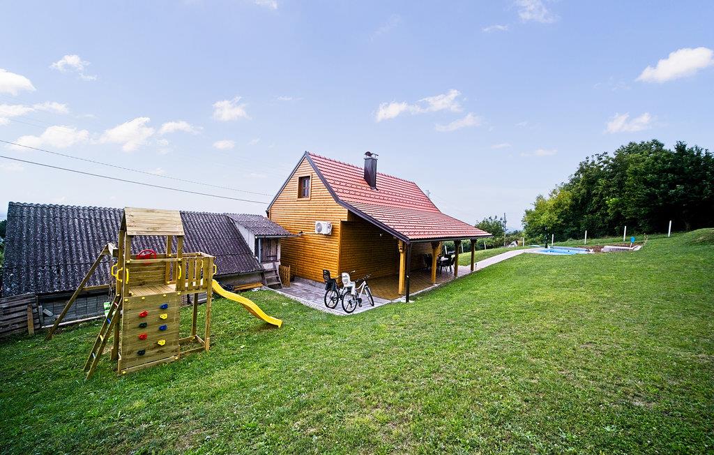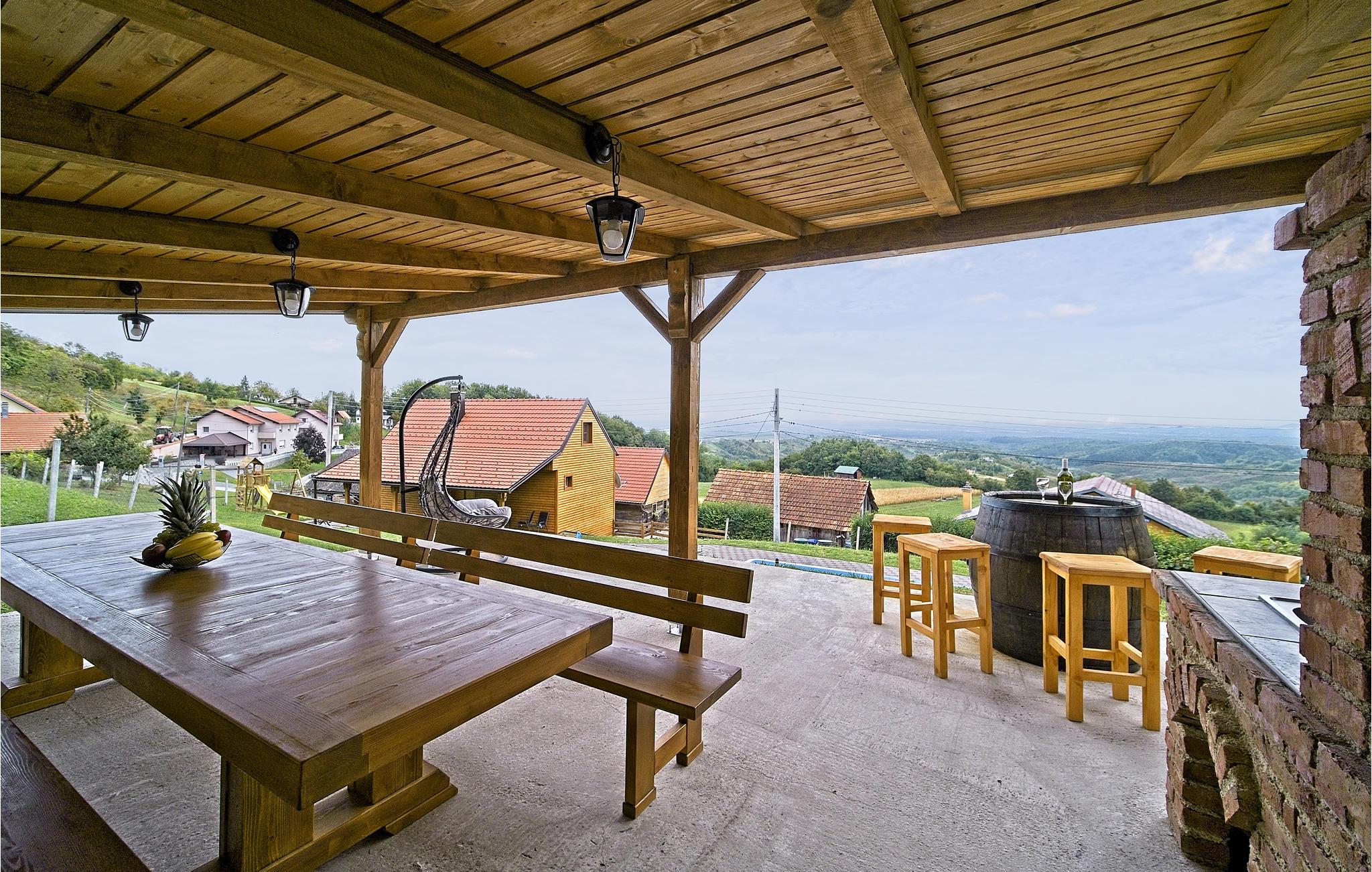 Dette træhus med pool og storslået udsigt over landskabet byder jer velkommen for foden af Plesivica.