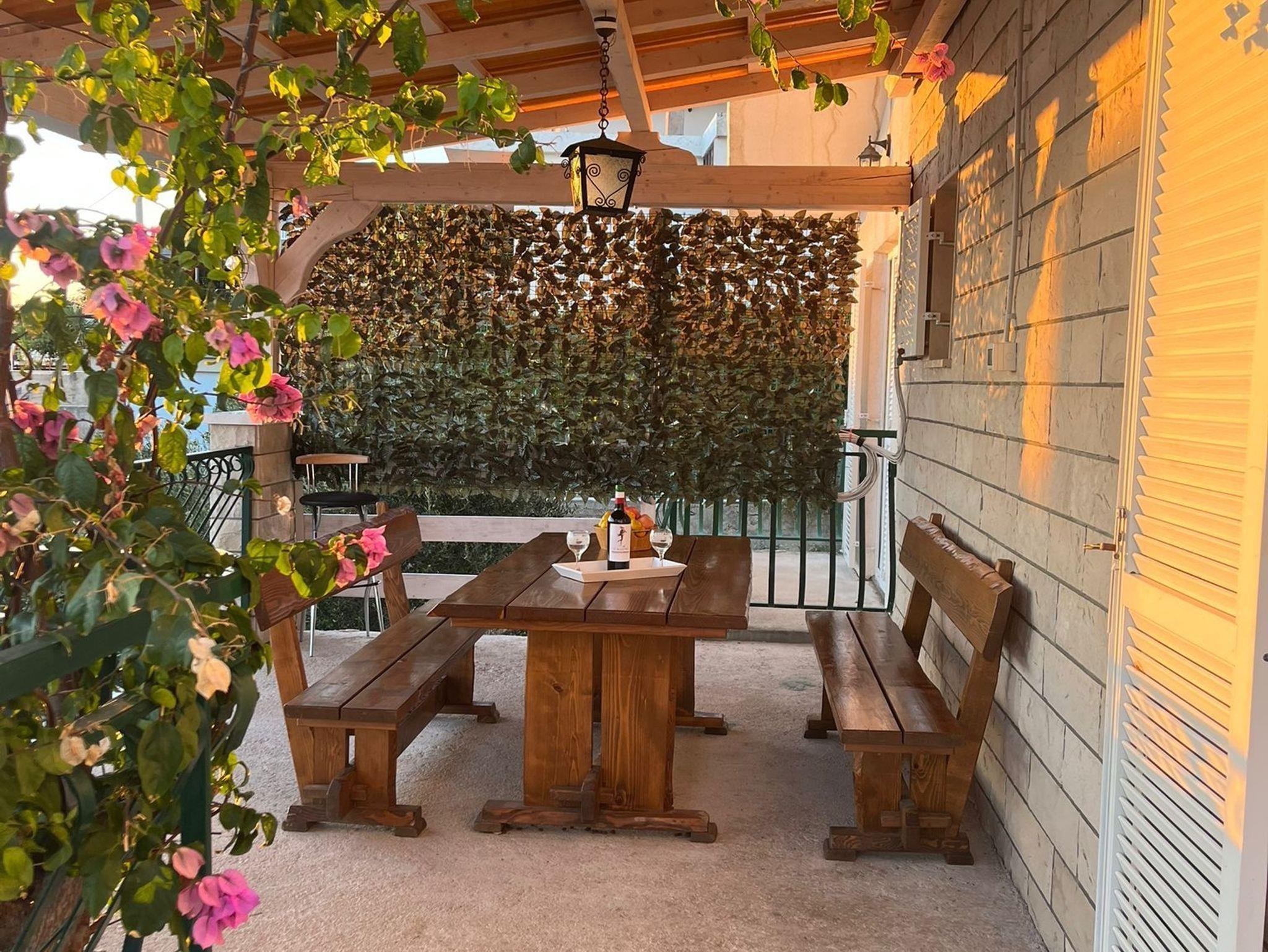 Ferienwohnung bietet Platz für 7 Gäste. Die Betten sind in Schlafzimmern, die es 3 gibt, und in Wohnzimmer, innerhalb einer Gesamtfläche von 106m2, angeordnet. Die Gäste haben eine eigene Terrasse zur Verfügung, auf der sie in warmen Sommernächten genießen können. Das Apartment bietet Meerblick. IM PREIS INBEGRIFFEN: Kurtaxe, Endreinigung, Klimatisierung, Parkplatz, Internet, Kinderbett, Föhn. VERBINDLICHE ZUSÄTZLICHE KOSTEN: Aufzahlung für Kurzaufenthalte (prozentualer Zuschlag pro Nächtigungsanzahl: 30% - 1, 20% - 2, 10% - 3). Die Verfügbarkeit zusätzlicher Dienstleistungen in Ihrem reservierten Termin und die Preise derselben (falls nicht aufgeführt) müssen im Voraus überprüft werden. Zusätzliche Dienstleistungen die in der Zahlungsaufforderung nicht aufgeführt sind werden direkt beim Vermieter bezahlt, angenommen der Gast nutzt auch diese.