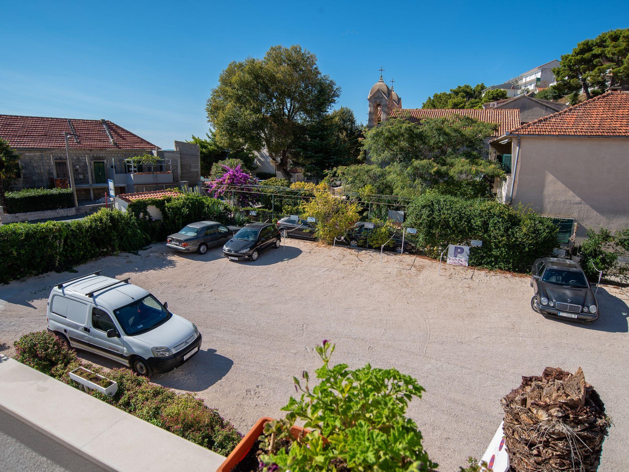 Hof (300m2, Sitzbereich), Parkplatz (Anzahl der Parkplätze: 15, Entfernung vom Objekt: im Hof), Grill: gemeinsam, WiFi Internet, Wäschewaschen, Föhn, Bügeleisen, Kinderbett