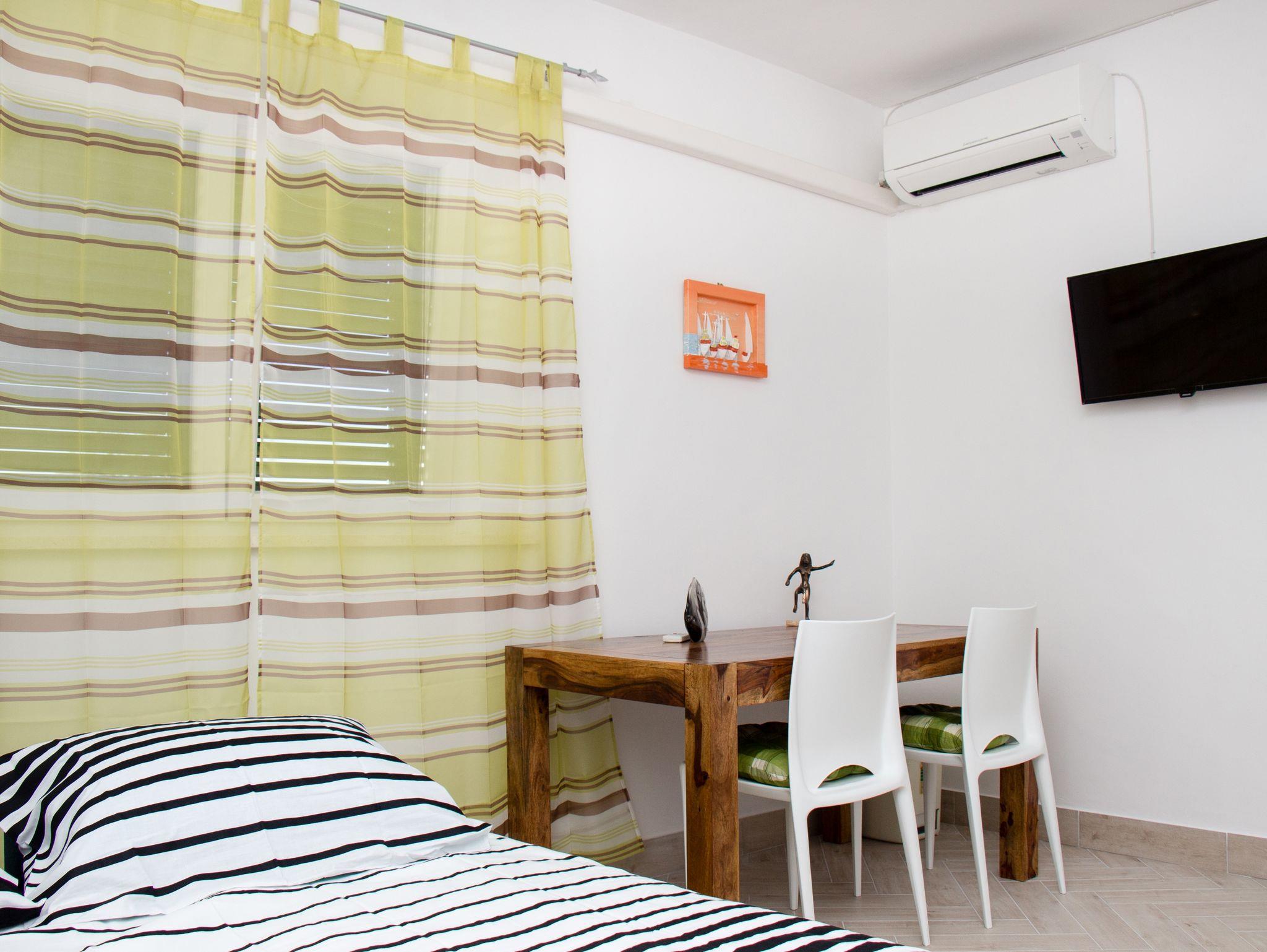 Ferienwohnung bietet Platz für 6 Gäste. Die Betten sind in Schlafzimmern, die es 2 gibt, und in Wohnzimmer, innerhalb einer Gesamtfläche von 63m2, angeordnet. Die Gäste haben eine eigene Terrasse zur Verfügung, auf der sie in warmen Sommernächten genießen können. Das Apartment bietet Meerblick. IM PREIS INBEGRIFFEN: Kurtaxe, Endreinigung, Klimatisierung, Parkplatz, Garage, Internet. Die Verfügbarkeit zusätzlicher Dienstleistungen in Ihrem reservierten Termin und die Preise derselben (falls nicht aufgeführt) müssen im Voraus überprüft werden. Zusätzliche Dienstleistungen die in der Zahlungsaufforderung nicht aufgeführt sind werden direkt beim Vermieter bezahlt, angenommen der Gast nutzt auch diese.