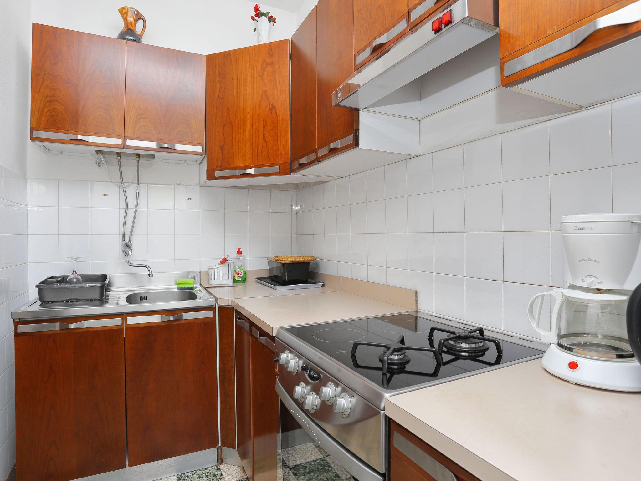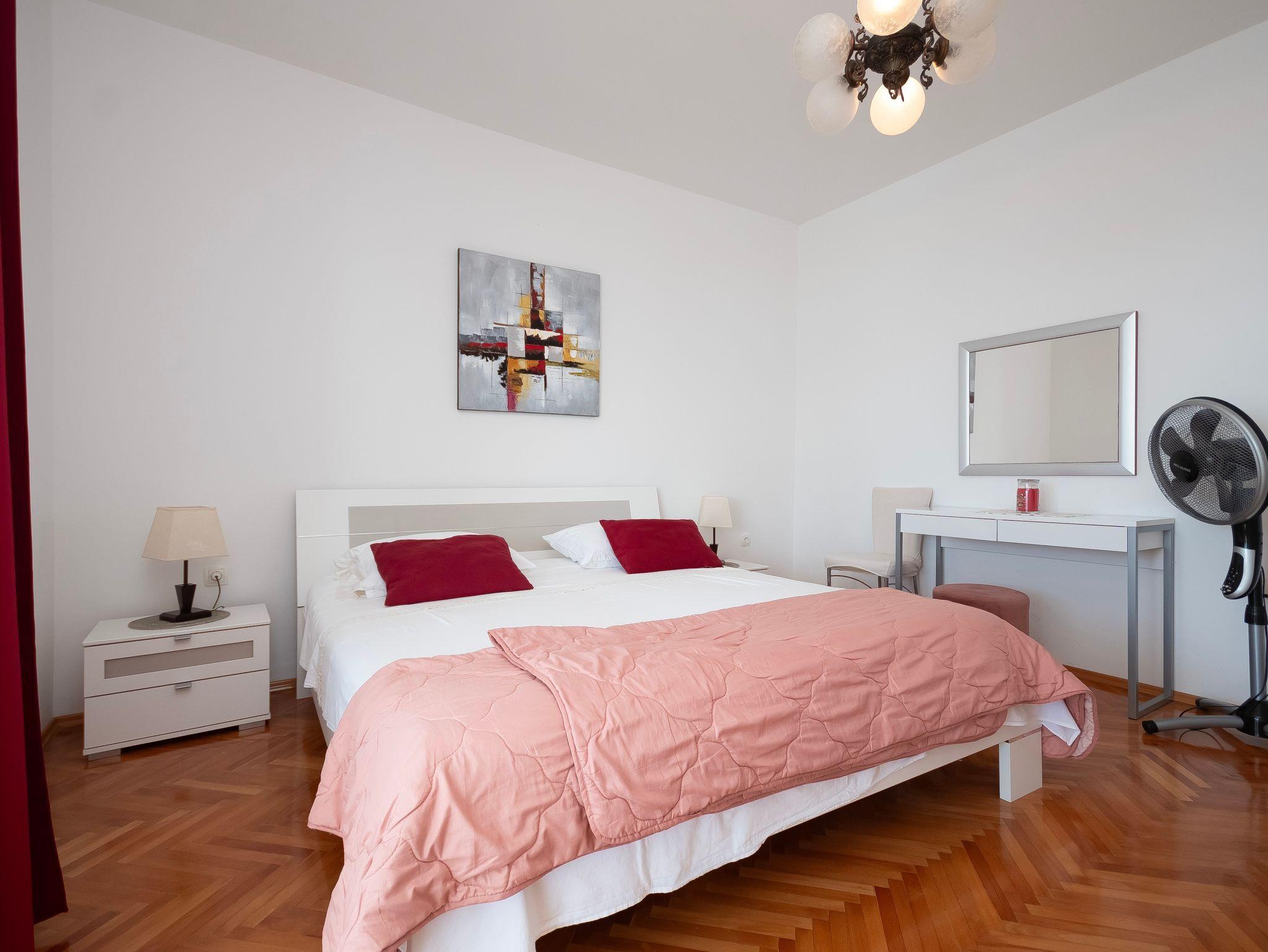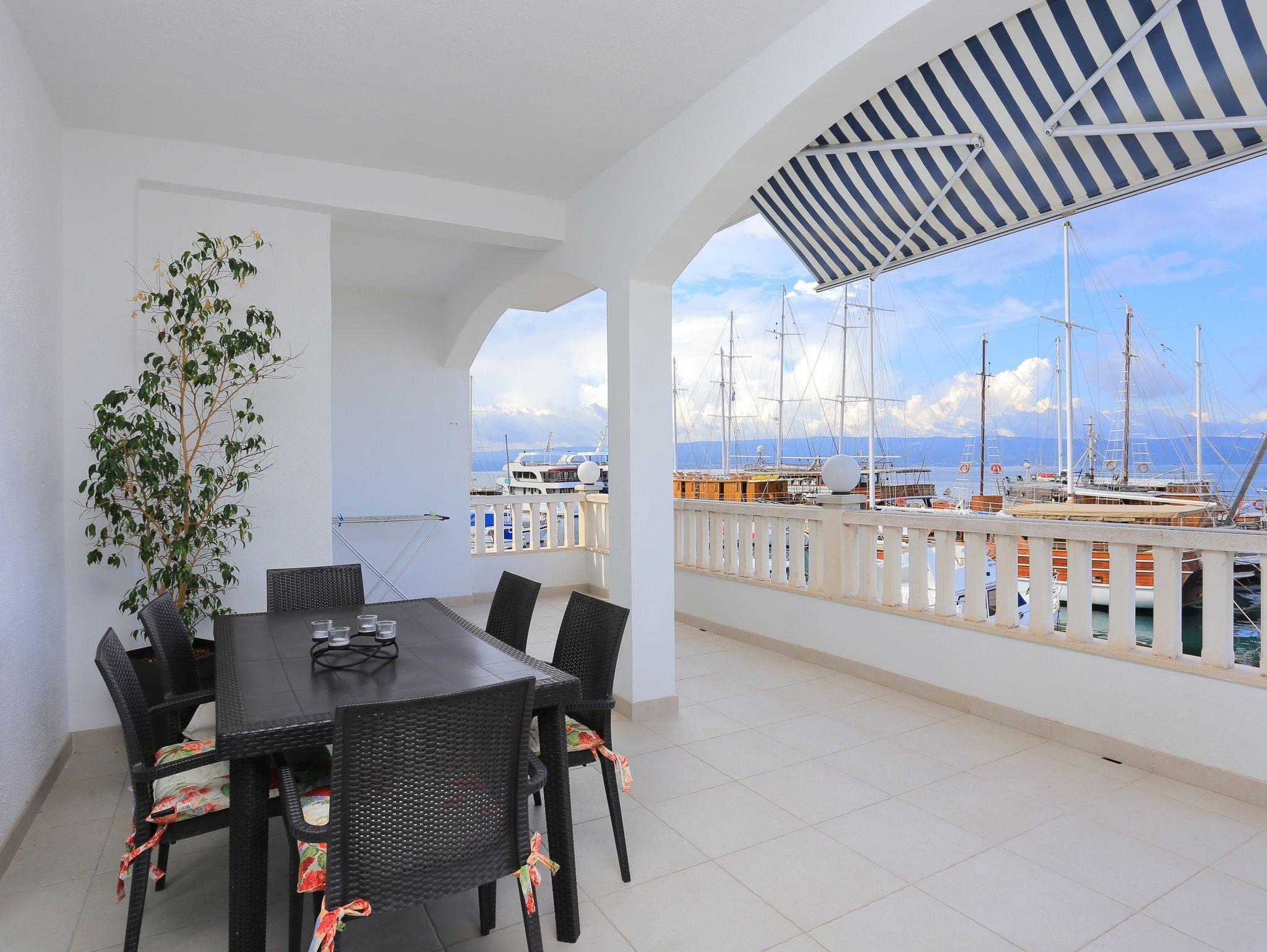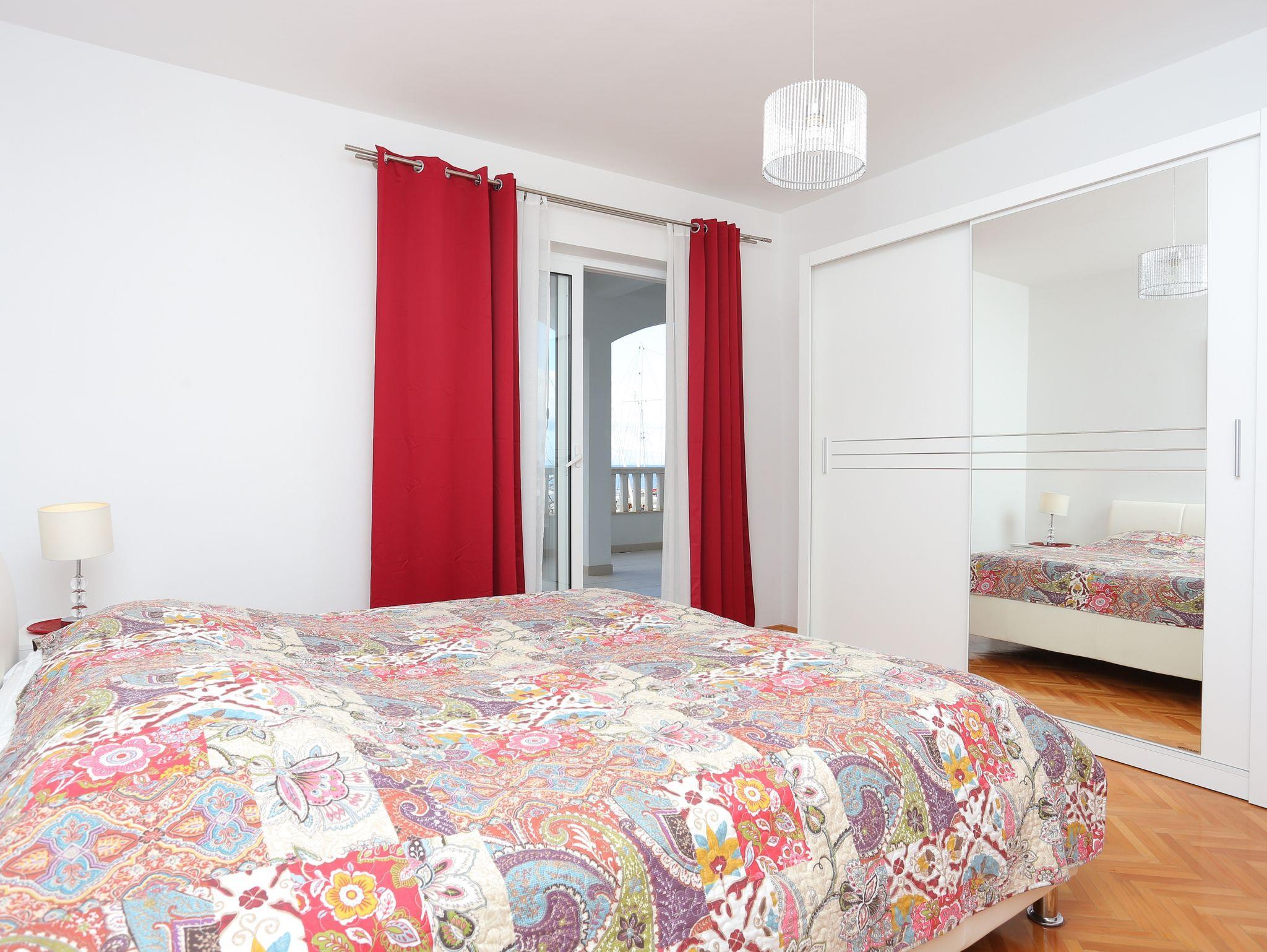 Ferienwohnung bietet Platz für 6 Gäste. Die Betten sind in Schlafzimmern, die es 3 gibt, innerhalb einer Gesamtfläche von 73m2, angeordnet. Die Gäste haben eine eigene Terrasse zur Verfügung, auf der sie in warmen Sommernächten genießen können. Das Apartment bietet Meerblick. Es ist erlaubt, Speisen auf dem Gemeinschafts-Grill vorzubereiten. IM PREIS INBEGRIFFEN: Kurtaxe, Endreinigung, Klimatisierung, Parkplatz, Internet, Bootsanlegeplatz, Kinderbett, tragbarer Grill. VERBINDLICHE ZUSÄTZLICHE KOSTEN: Aufzahlung für Kurzaufenthalte (prozentualer Zuschlag pro Nächtigungsanzahl: 30% - 1, 20% - 2, 10% - 3). UNVERBINDLICHE ZUSÄTZLICHE KOSTEN: Wäschewaschen (5,00 € Waschen). Die Verfügbarkeit zusätzlicher Dienstleistungen in Ihrem reservierten Termin und die Preise derselben (falls nicht aufgeführt) müssen im Voraus überprüft werden. Zusätzliche Dienstleistungen die in der Zahlungsaufforderung nicht aufgeführt sind werden direkt beim Vermieter bezahlt, angenommen der Gast nutzt auch diese.