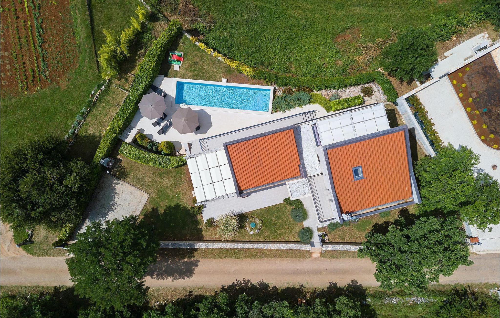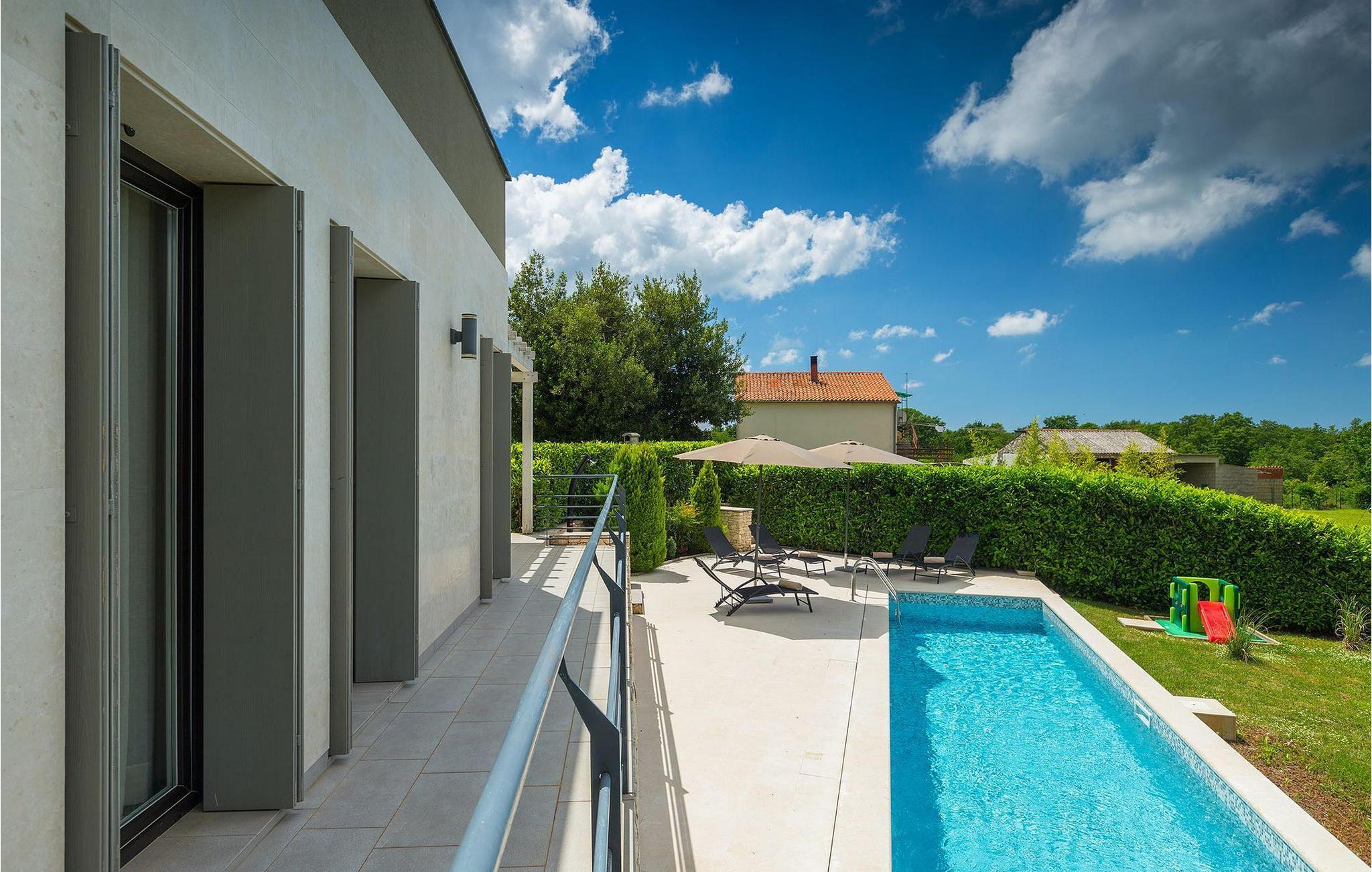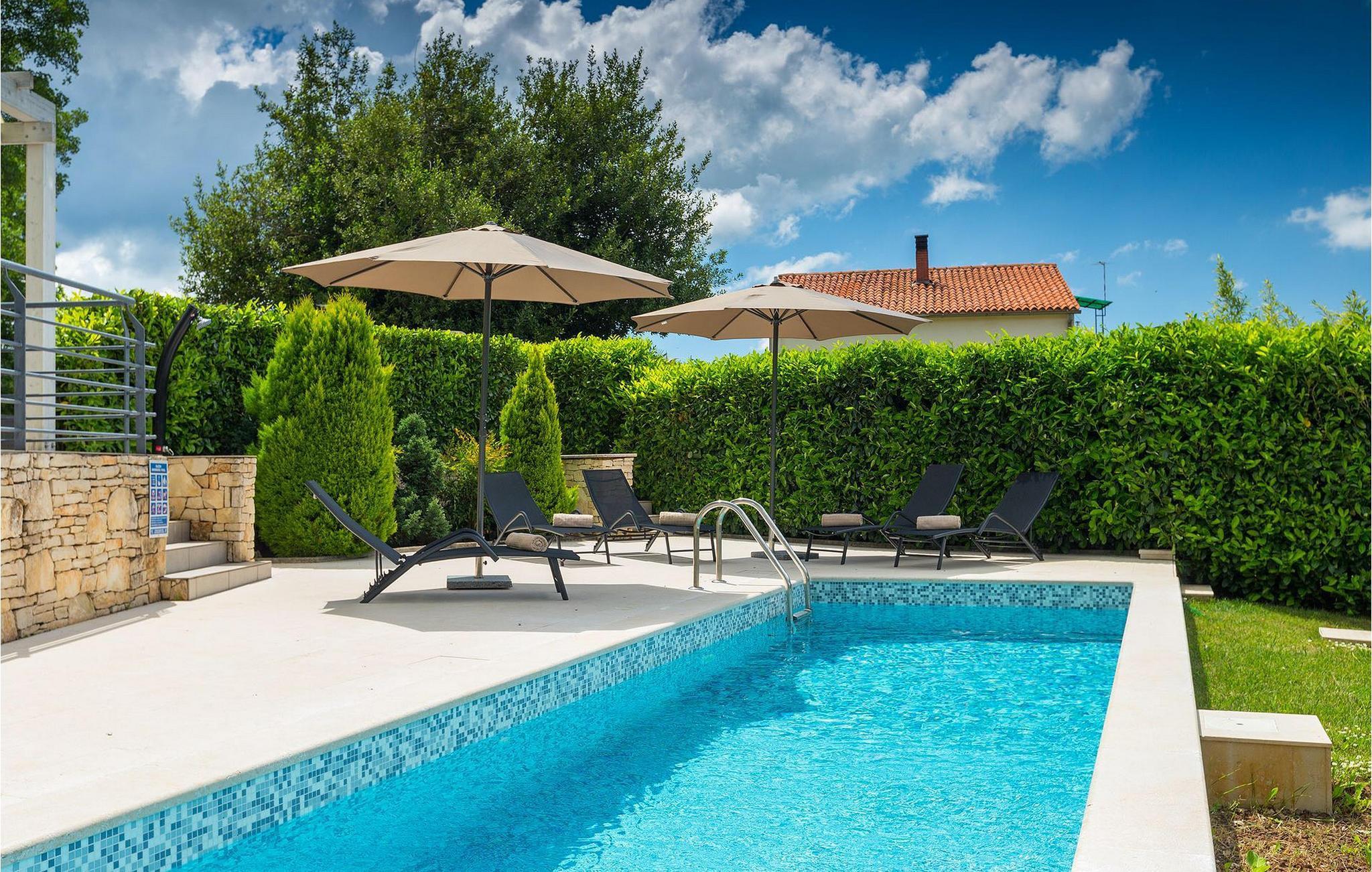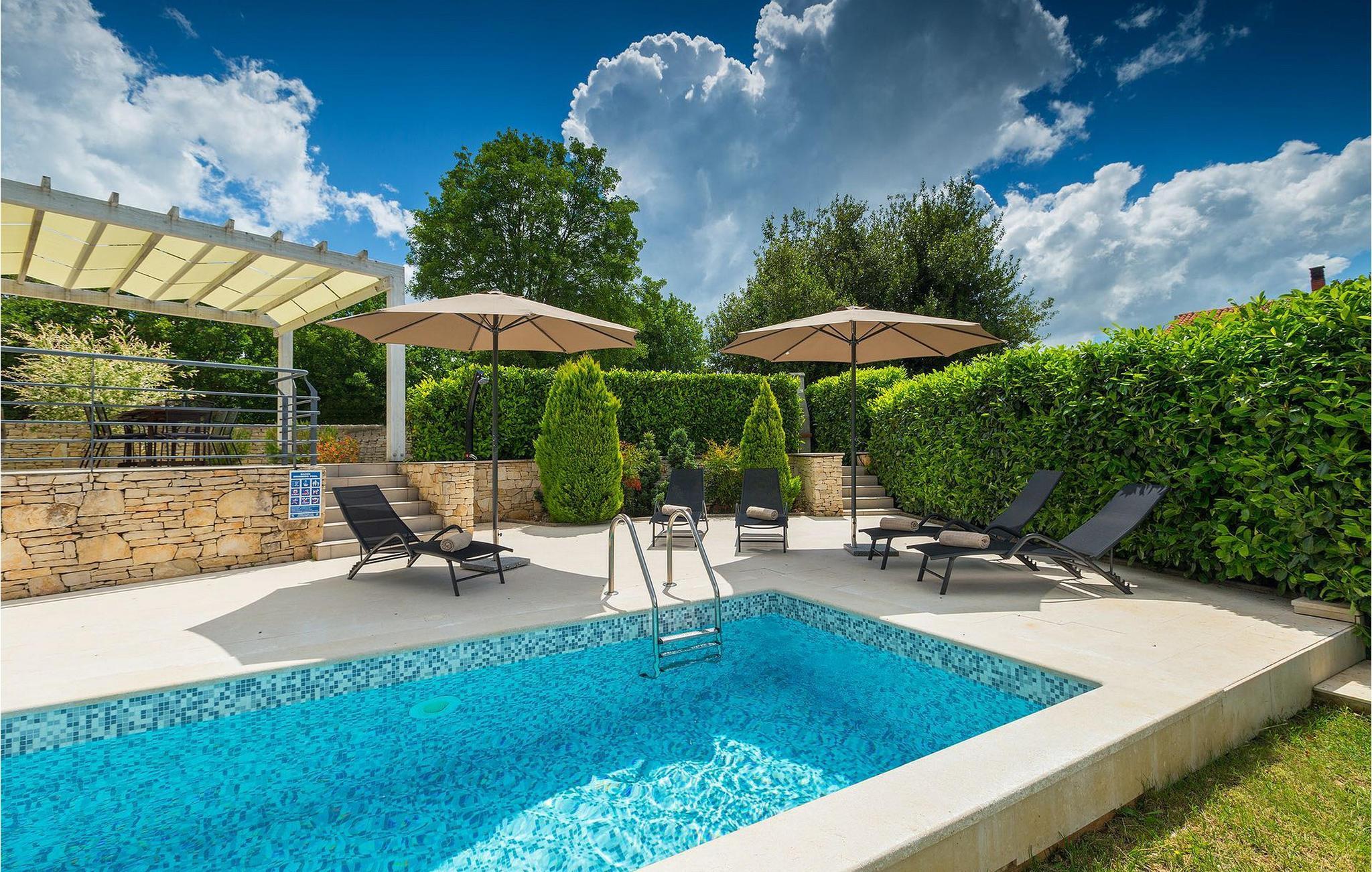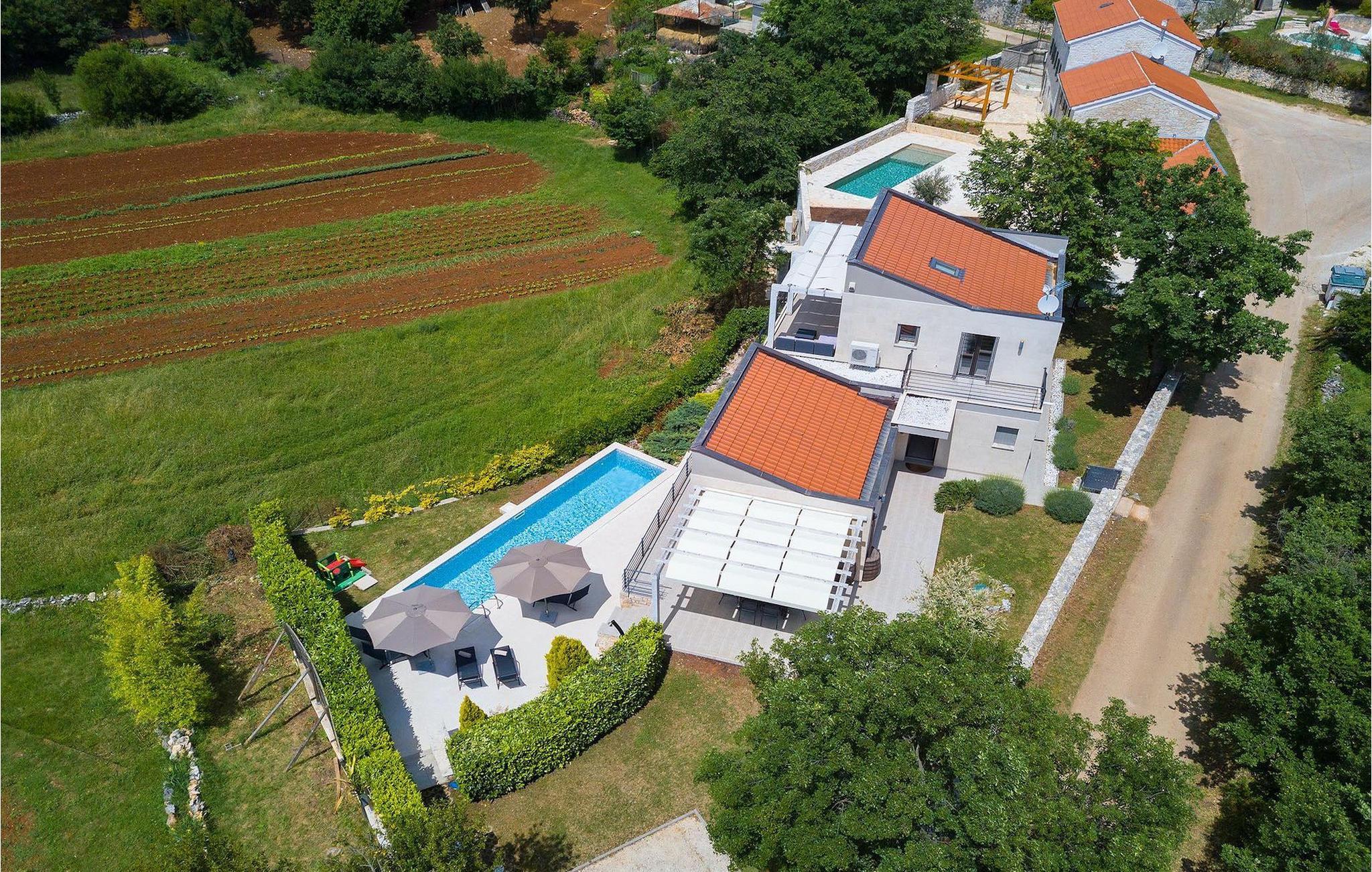 Die Villa Casa Enro befindet sich im Herzen Istriens. Es ist der perfekte Ort wo Sie Ihren nächsten Urlaub genießen können. Die Villa bietet Platz für bis zu 7 Personen auf einem 146 m2 großen Wohnraum. Das offene Interieur besteht aus einer voll ausgestatteten Küche mit Essbereich und einem schicken Wohnzimmer, in dem Sie sich beim Lesen Ihres Lieblingsbuchs entspannen können. Das Erdgeschoss verfügt über ein komfortables Schlafzimmer und ein Badezimmer. Im Obergeschoß befinden sich zwei weitere Schlafzimmer und ein Badezimmer. Ein Schlafzimmer hat zwei Einzelbetten und das andere Schlafzimmer hat ein Doppelbett und einen kleinen Wohnbereich mit TV. Im ersten Stock der Villa befindet sich ebenso eine schöne Terrasse, auf der Sie mit Ihrer Familie und Freunden bei einem Glas der besten istrischen Malvazija entspannen können. Das Erdgeschoss hat einen direkter Zugang zum schönen Garten und Poolbereich. Der Pool ist 24m2 groß und ist die ideale Erfrischung an heißen Sommertagen. Der Außenbereich verfügt über einen Essbereich, in dem Sie Ihre Mahlzeiten mit einer schönen Aussicht genießen können.