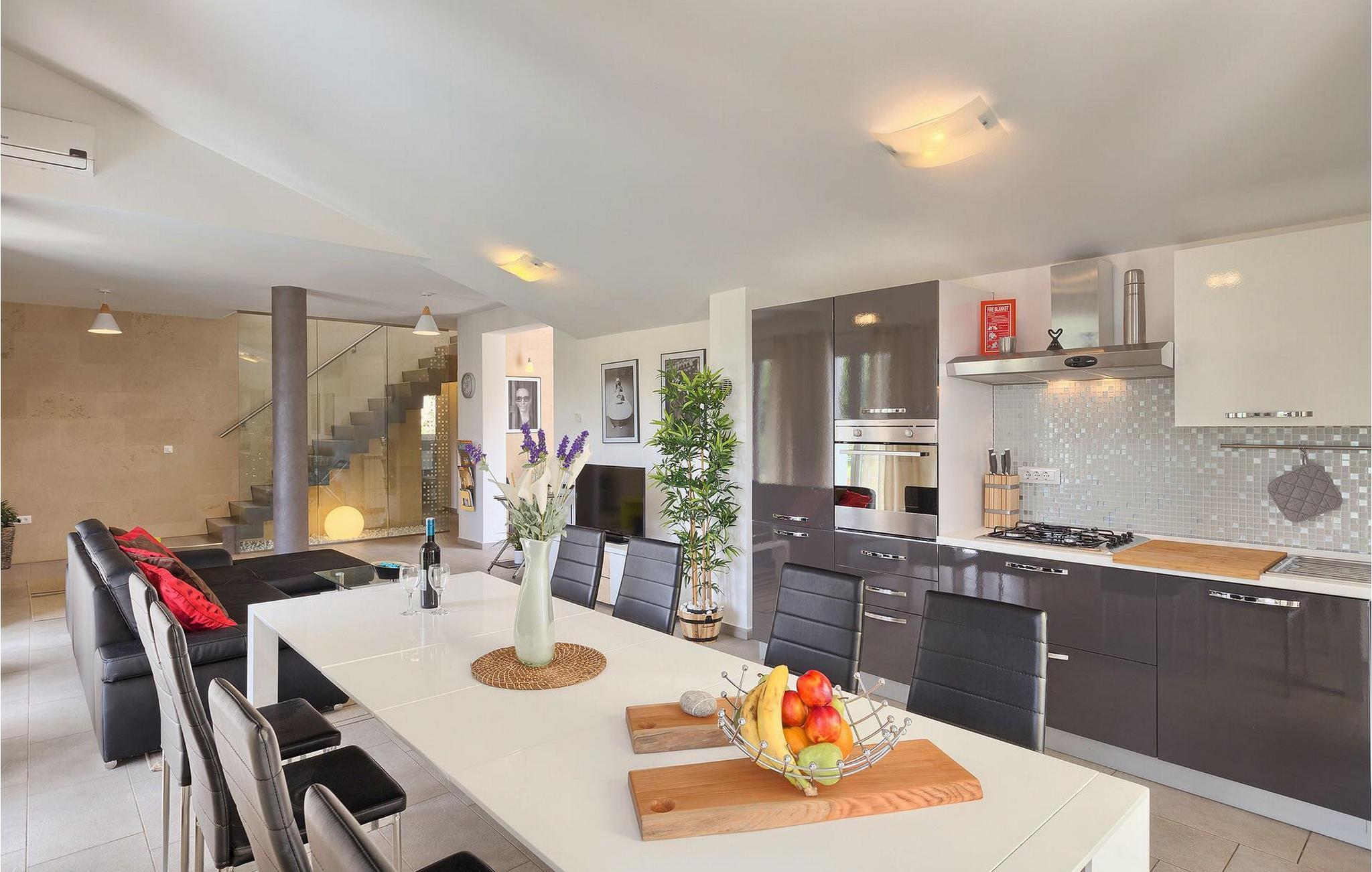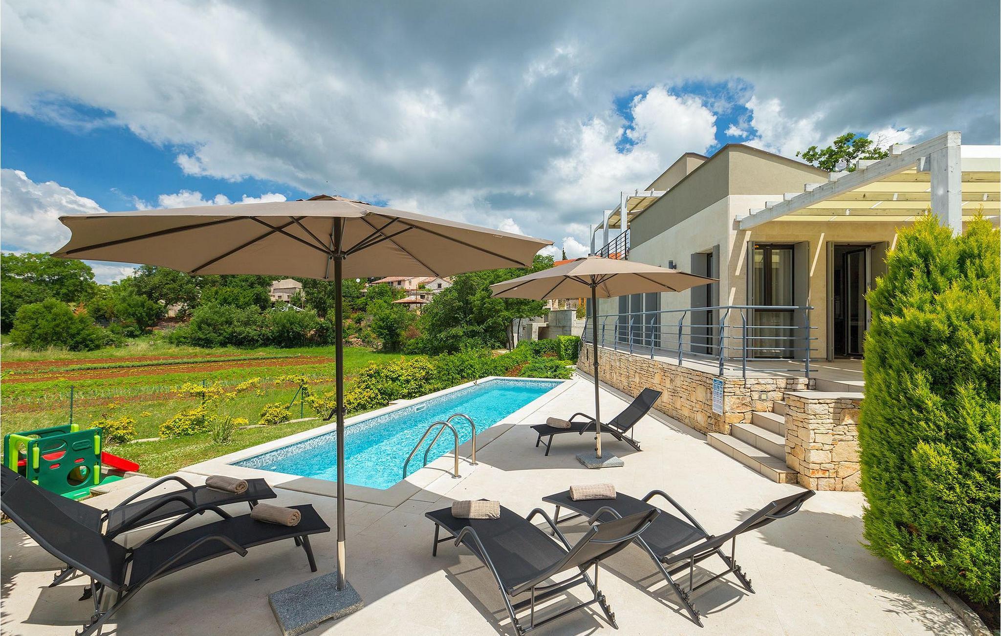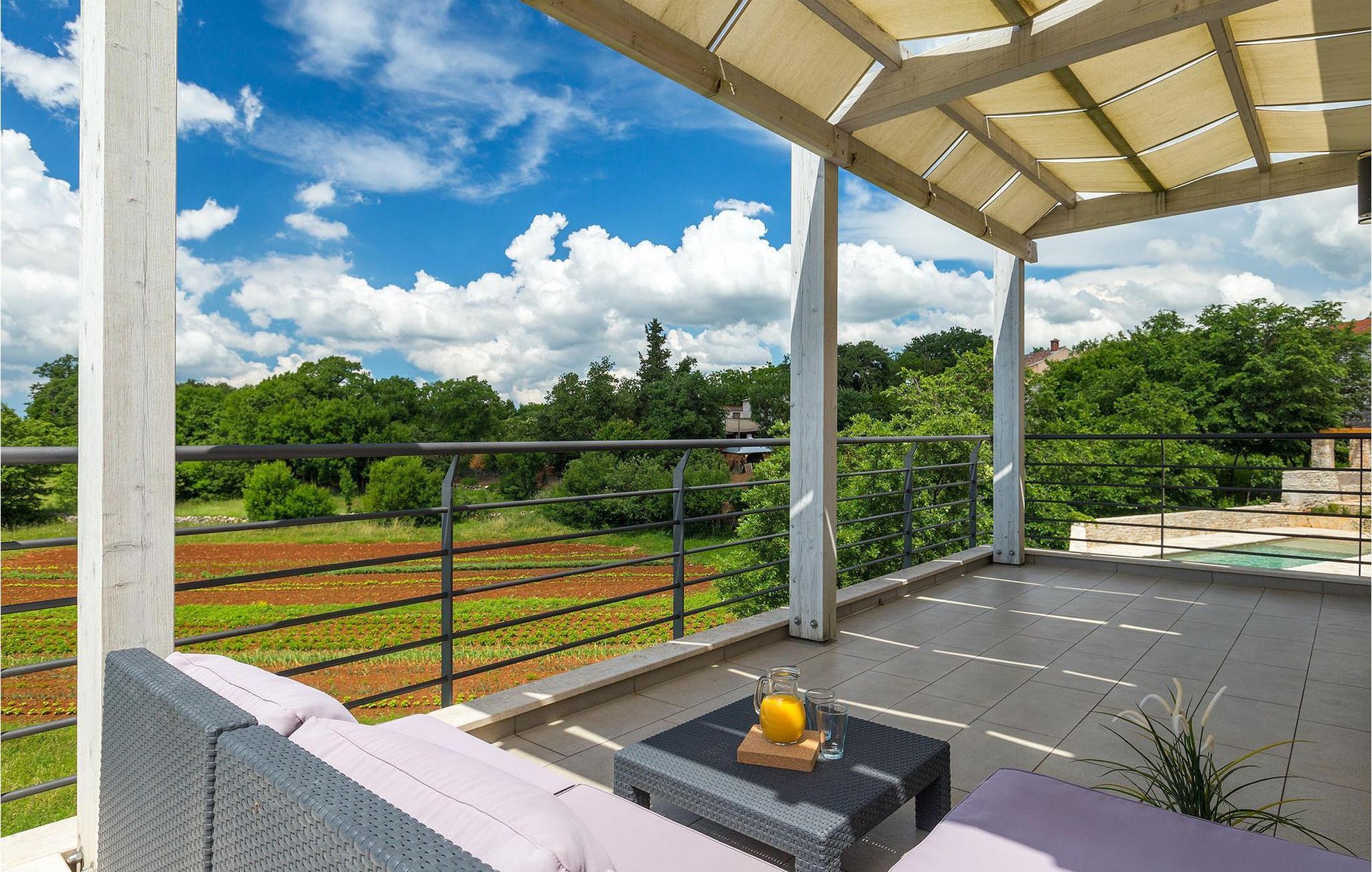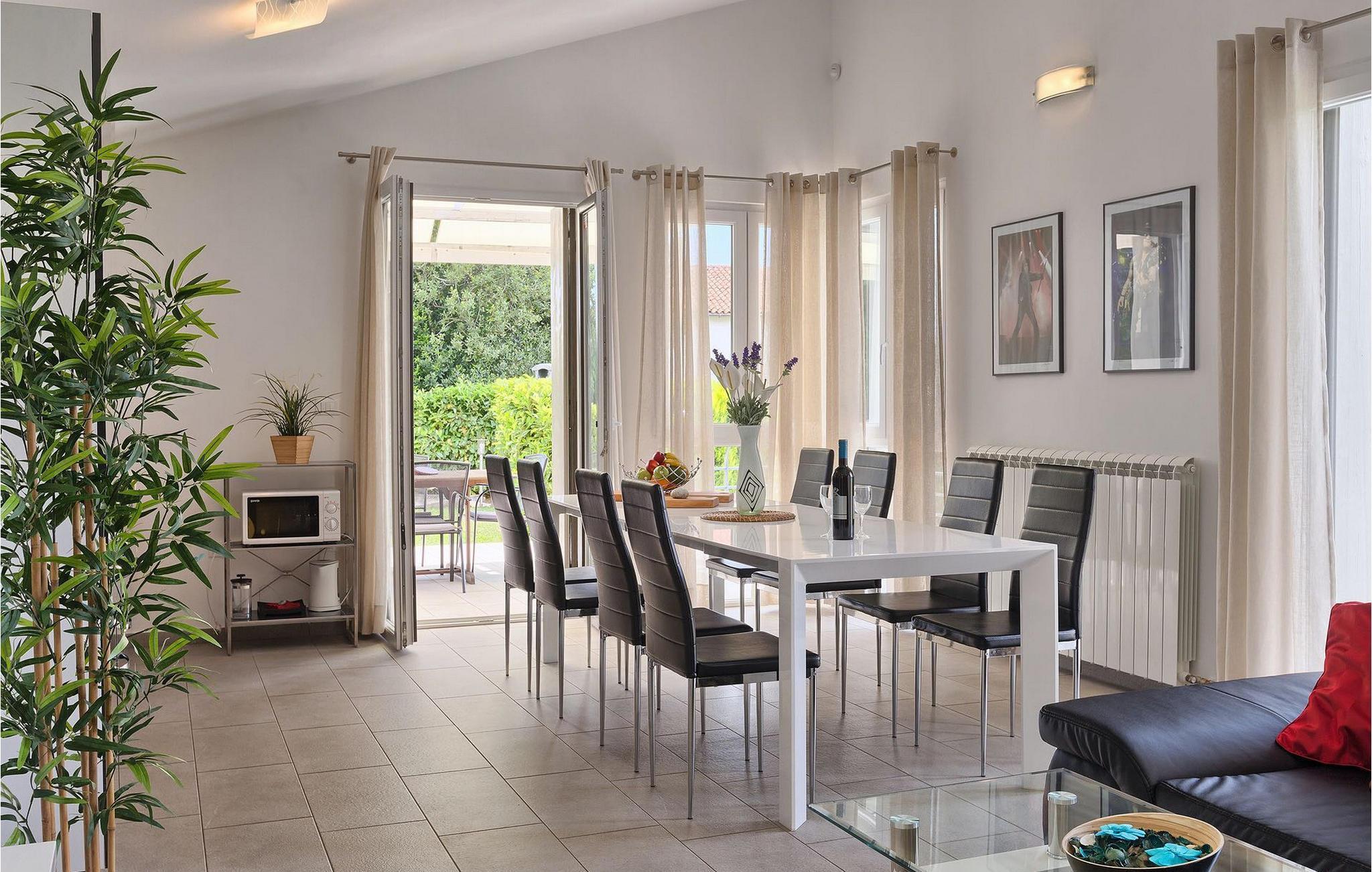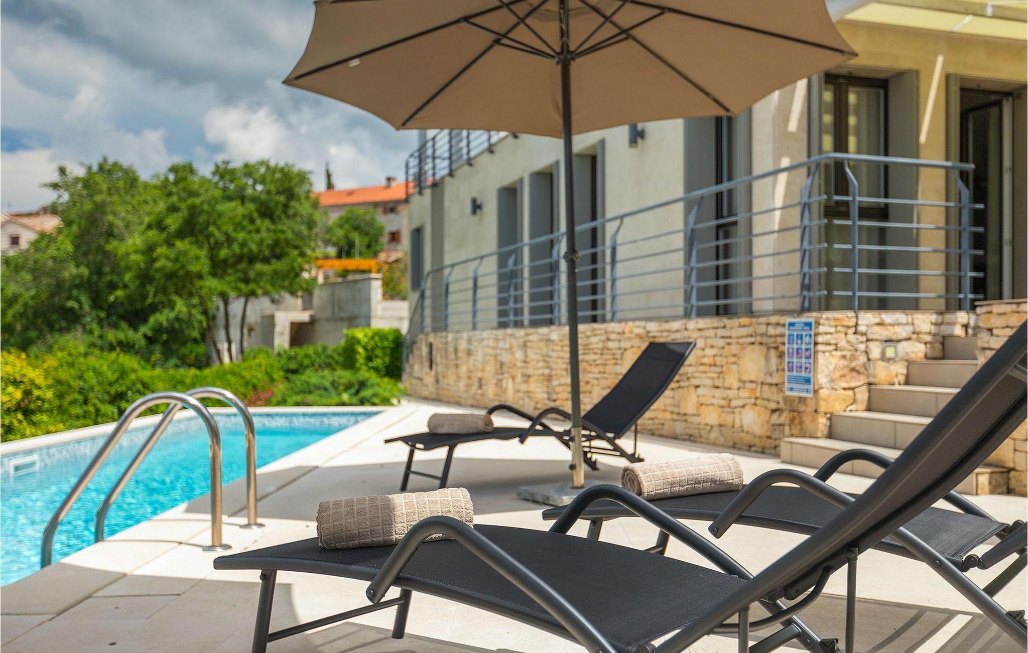 Die Villa Casa Enro befindet sich im Herzen Istriens. Es ist der perfekte Ort wo Sie Ihren nächsten Urlaub genießen können. Die Villa bietet Platz für bis zu 7 Personen auf einem 146 m2 großen Wohnraum. Das offene Interieur besteht aus einer voll ausgestatteten Küche mit Essbereich und einem schicken Wohnzimmer, in dem Sie sich beim Lesen Ihres Lieblingsbuchs entspannen können. Das Erdgeschoss verfügt über ein komfortables Schlafzimmer und ein Badezimmer. Im Obergeschoß befinden sich zwei weitere Schlafzimmer und ein Badezimmer. Ein Schlafzimmer hat zwei Einzelbetten und das andere Schlafzimmer hat ein Doppelbett und einen kleinen Wohnbereich mit TV. Im ersten Stock der Villa befindet sich ebenso eine schöne Terrasse, auf der Sie mit Ihrer Familie und Freunden bei einem Glas der besten istrischen Malvazija entspannen können. Das Erdgeschoss hat einen direkter Zugang zum schönen Garten und Poolbereich. Der Pool ist 24m2 groß und ist die ideale Erfrischung an heißen Sommertagen. Der Außenbereich verfügt über einen Essbereich, in dem Sie Ihre Mahlzeiten mit einer schönen Aussicht genießen können.