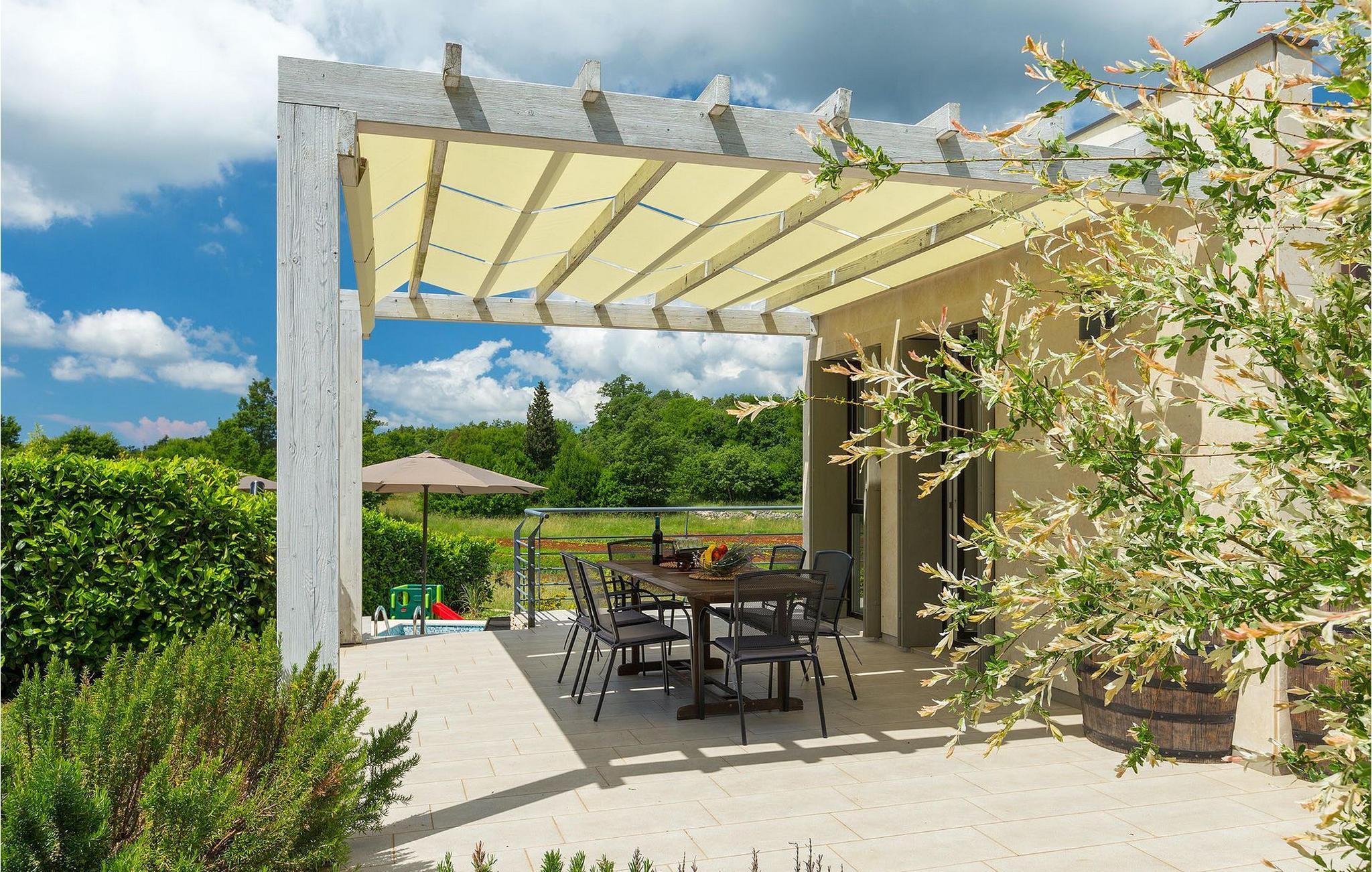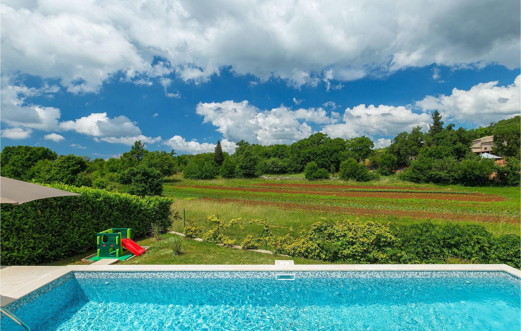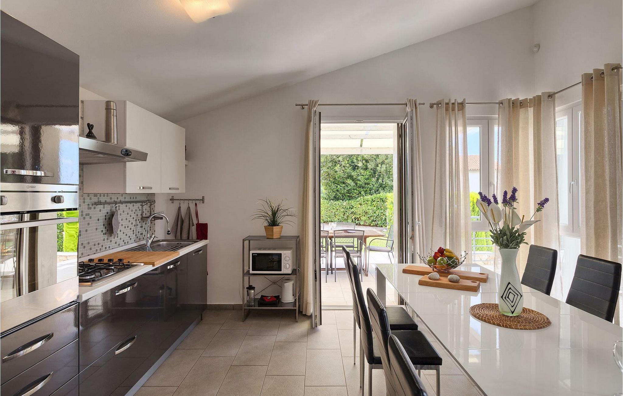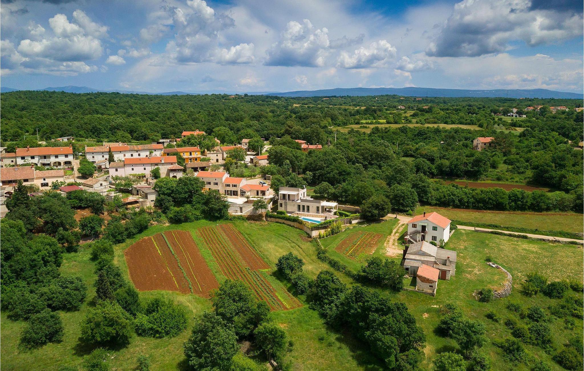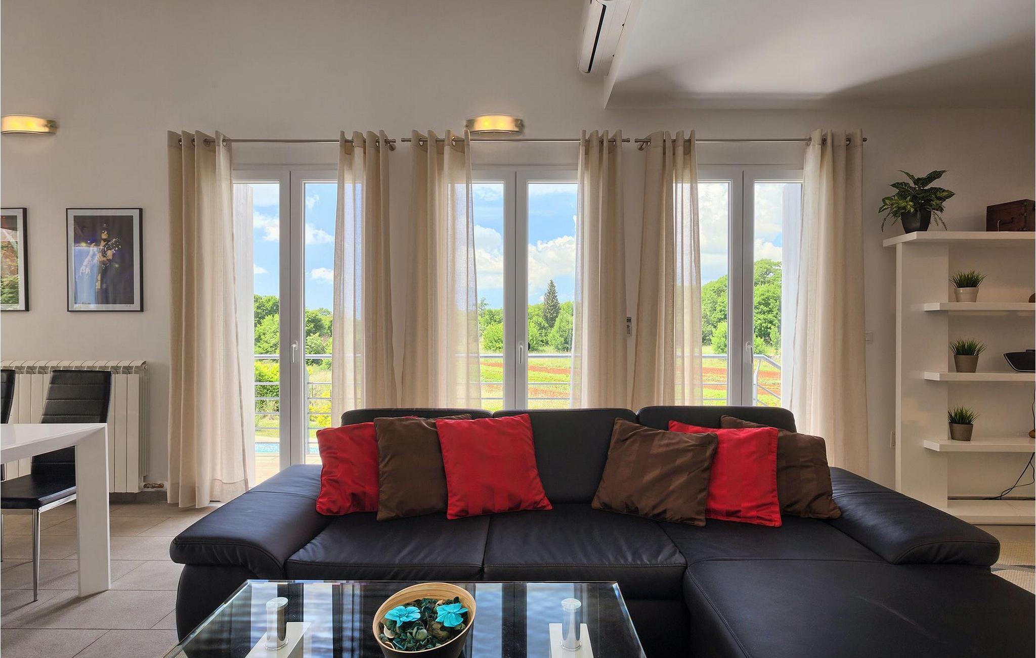 Die Villa Casa Enro befindet sich im Herzen Istriens. Es ist der perfekte Ort wo Sie Ihren nächsten Urlaub genießen können. Die Villa bietet Platz für bis zu 7 Personen auf einem 146 m2 großen Wohnraum. Das offene Interieur besteht aus einer voll ausgestatteten Küche mit Essbereich und einem schicken Wohnzimmer, in dem Sie sich beim Lesen Ihres Lieblingsbuchs entspannen können. Das Erdgeschoss verfügt über ein komfortables Schlafzimmer und ein Badezimmer. Im Obergeschoß befinden sich zwei weitere Schlafzimmer und ein Badezimmer. Ein Schlafzimmer hat zwei Einzelbetten und das andere Schlafzimmer hat ein Doppelbett und einen kleinen Wohnbereich mit TV. Im ersten Stock der Villa befindet sich ebenso eine schöne Terrasse, auf der Sie mit Ihrer Familie und Freunden bei einem Glas der besten istrischen Malvazija entspannen können. Das Erdgeschoss hat einen direkter Zugang zum schönen Garten und Poolbereich. Der Pool ist 24m2 groß und ist die ideale Erfrischung an heißen Sommertagen. Der Außenbereich verfügt über einen Essbereich, in dem Sie Ihre Mahlzeiten mit einer schönen Aussicht genießen können.