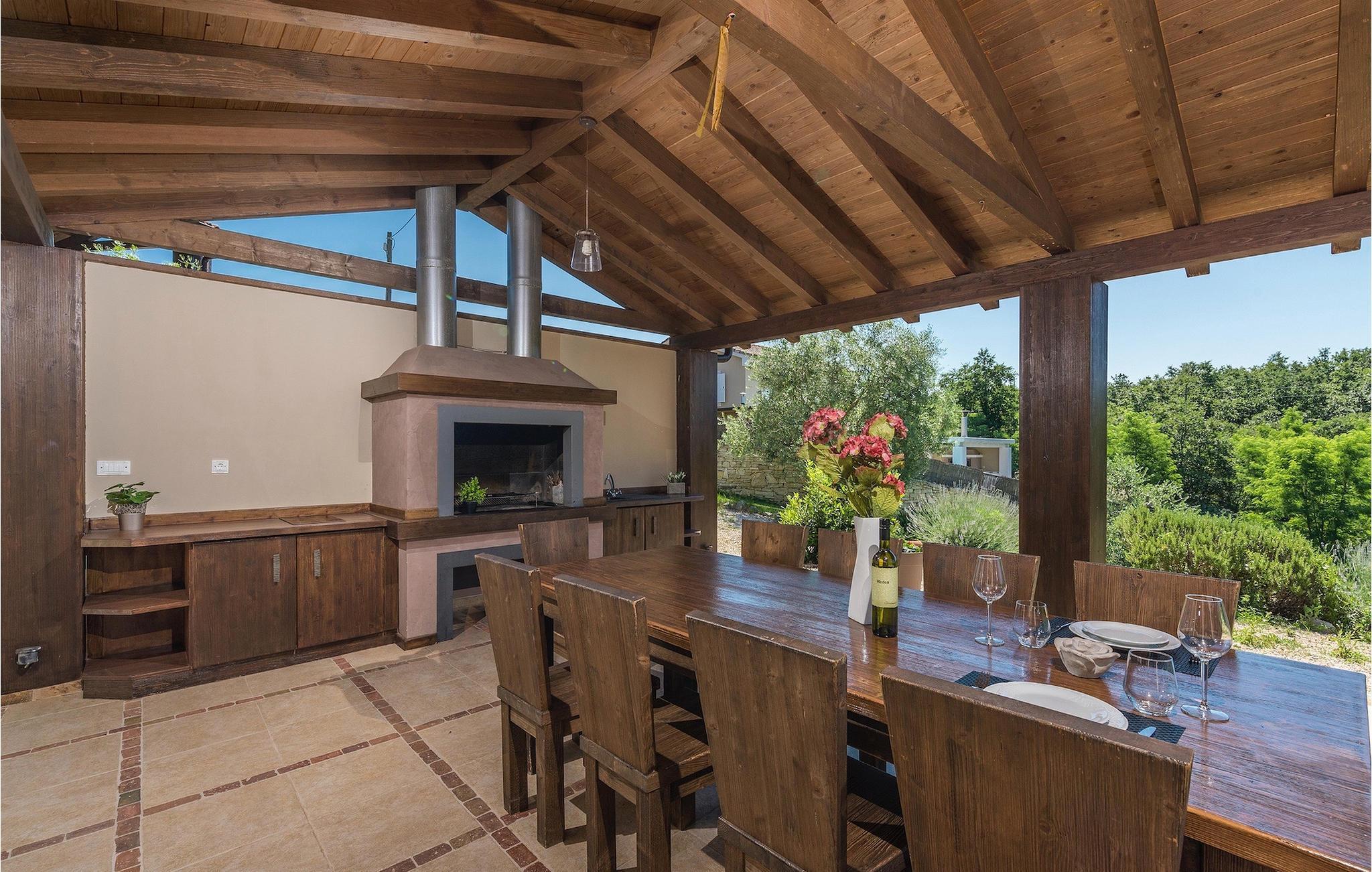 Zusätzlich gibt es in der Nähe eine Gemeinschaftssportanlage mit Volleyballplatz, Tischtennis und Badmintonplatz.Flughafen Pula ist nur 20 km entfernt. Pula (15km) ist die regionale Hauptstadt Istriens mit einer exzellenten Auswahl an Restaurants und attraktiven Einkaufsgebieten. Machen Sie einen Spaziergang durch Pula und erleben Sie die Straßen und Plätze der alten Stadt, von denen manche schon seit der römischen Zeit bestehen. Das atemberaubende Amphitheater stammt aus dem 1. Jahrhundert n.Chr. und ist das 6. größte in der Welt. Das Stadtzentrum ist ca. 10 Fahrminuten vom Flughafen entfernt. Fazana ist ein kleiner Küstenort, 11 km von Bonasini entfernt, mit einem Hafen von wo aus Sie Touristenboote (15min) zu einem der schönsten Nationalparks in Kroatien bringen- Brioni. Fazana bietet einen großen Kiesstrand mit Möglichkeiten für zahlreiche Wassersportarten und Aktivitäten. Vodnjan ist eine typische mittelalterliche Stadt mit interessantem architektonischen Muster: Die Häuser der Stadt bilden zugleich die Stadtmauer und dienten früher als Verteidigung. Auf dem Hauptplatz steht eine atemberaubende Barock Kirche, einige Restaurants und einen neuen Sportpark mit Tennisplätzen. St. Vincenat (5km) auch bekannt als Savicenta, ein kleiner charmanter Ort im zentralen Istrien. Dieser Ort ist rund um zahlreiche, wunderschön restaurierte Kirchen aus dem 14ten und 16ten Jahrhundert und einem verstärkten Herrenhaus zentriert. Es gibt einige exzellente Restaurants und Cafés und seit kurzem ist Vodnjan schnell zu einer der Top kulturellen Städte Istriens geworden, mit Veranstaltungen die jedes Wochenende statt finden. Rovinj, (23 km) ist mit einer 1700 Jahre alten Geschichte der schönste und luxuriöseste Touristenort in Istrien,mit einer wunderschönen Altstadt, einer Perle der Architektur. Die prächtigen Gebäude und charmanten Straßen gefüllt mit kleinen Kunstgalerien, kreieren eine großartige Stadt von Malern mit zahlreichen Restaurants und Cafés.