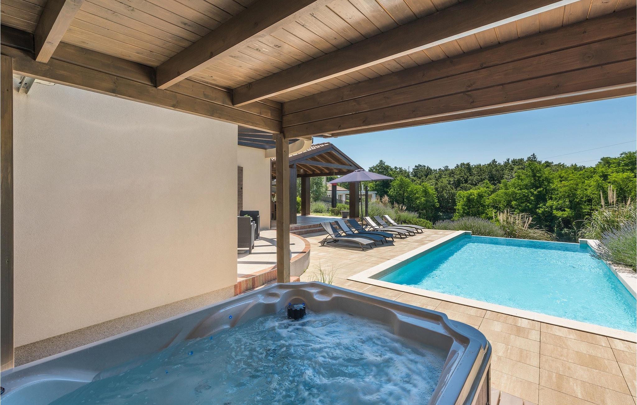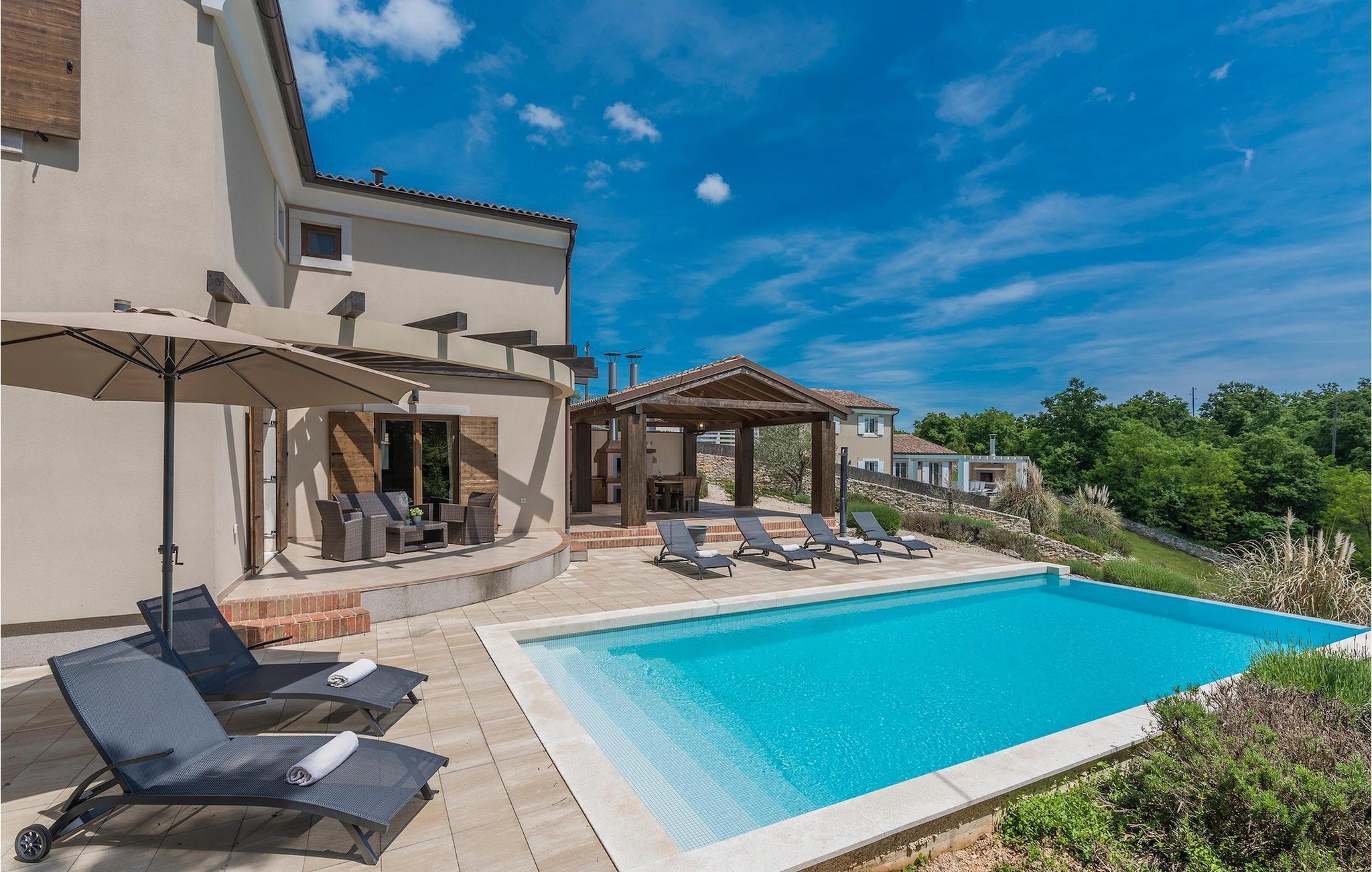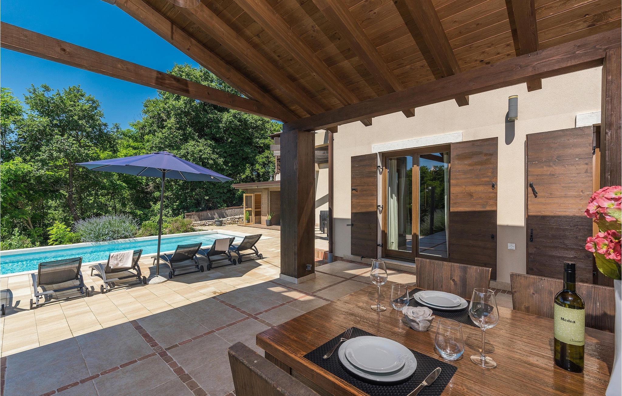 Diese wunderschöne 5 Schlafzimmer Villa liegt in Bonasini, einem kleinen charmanten Dorf, aus Stein erbaut und mit 10 Einwohnern- eine sehr friedliche Lage für entspannende Ferien. Es liegt auf einem sonnigen Hügel, umgeben von Wald in unberührter Natur, somit ist die Lage perfekt für Aktivitäten im Freien. der Innenbereich der Villa beläuft sich auf 260m2 und der Außenbereich auf 1200m 2 Fläche. Mit eigenem Garten, privater Swimmingpool, überdachter Grill und Essbereich mit einer Sommerküche und entspannenden Gartenmöbeln. Die Villa ist gut ausgestattet und geschmackvoll, mit Liebe zum Detail dekoriert. Alle Schlafzimmer mit Ensuite und Klimaanlage. Neben dem Haupthaus gibt es ein kleines privates Wellnesszentrum (Finnische Sauna, Whirlpool, Dusche,) für Ihr Vergnügen.