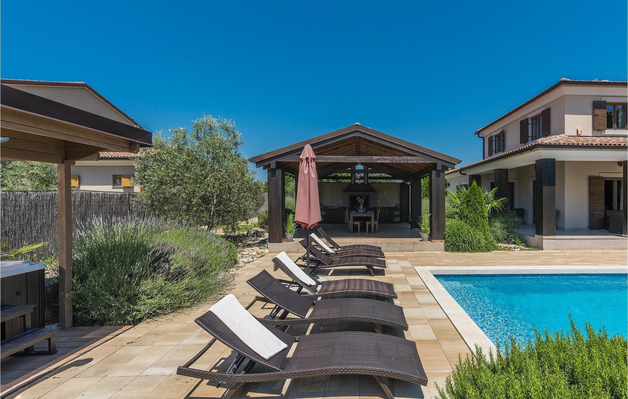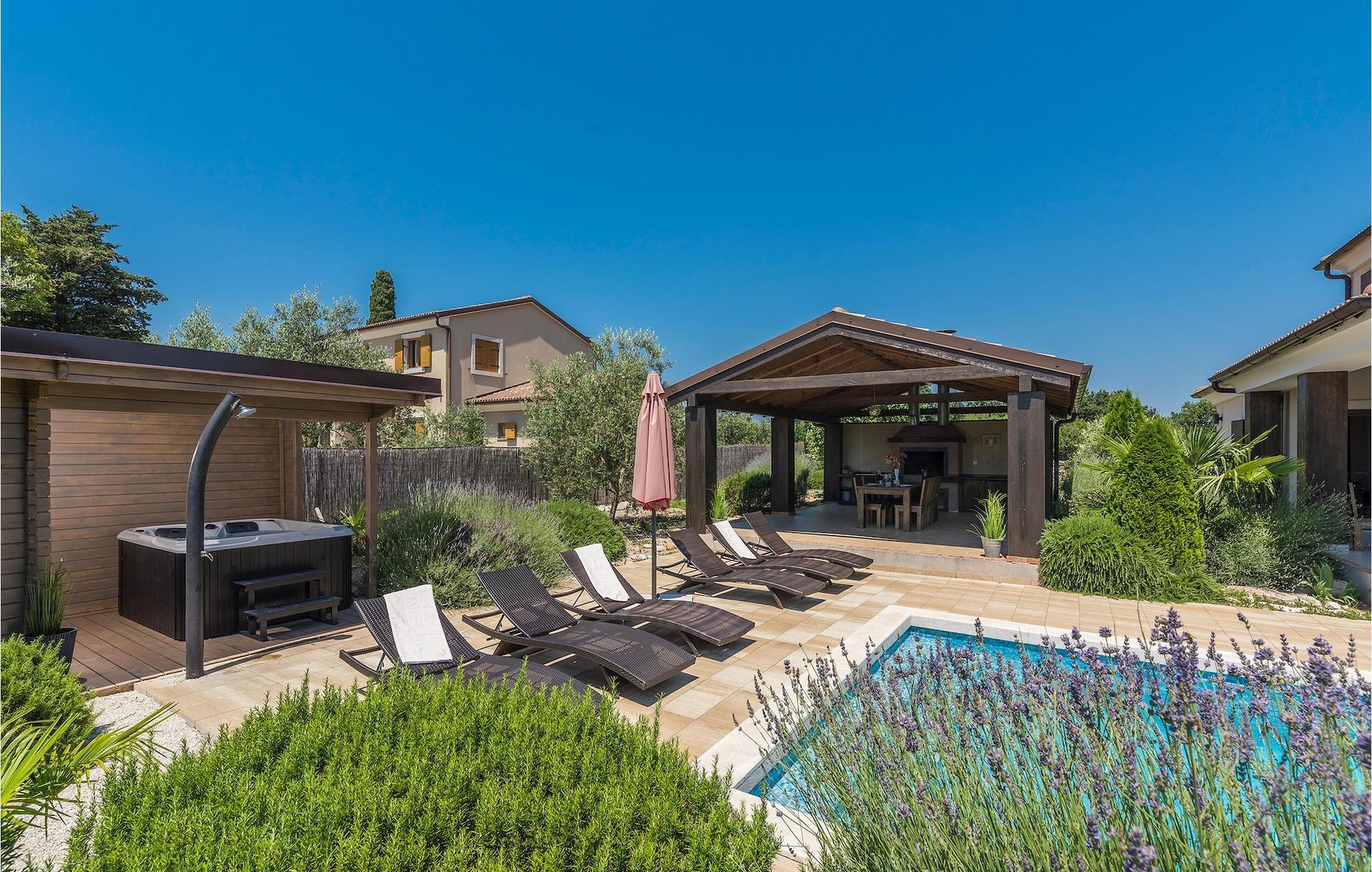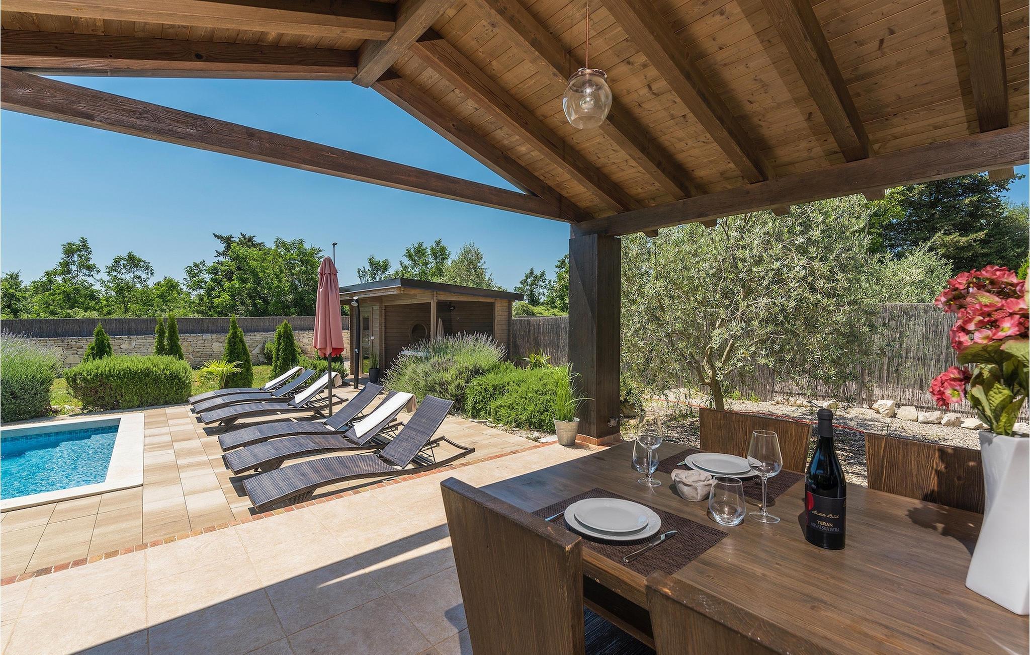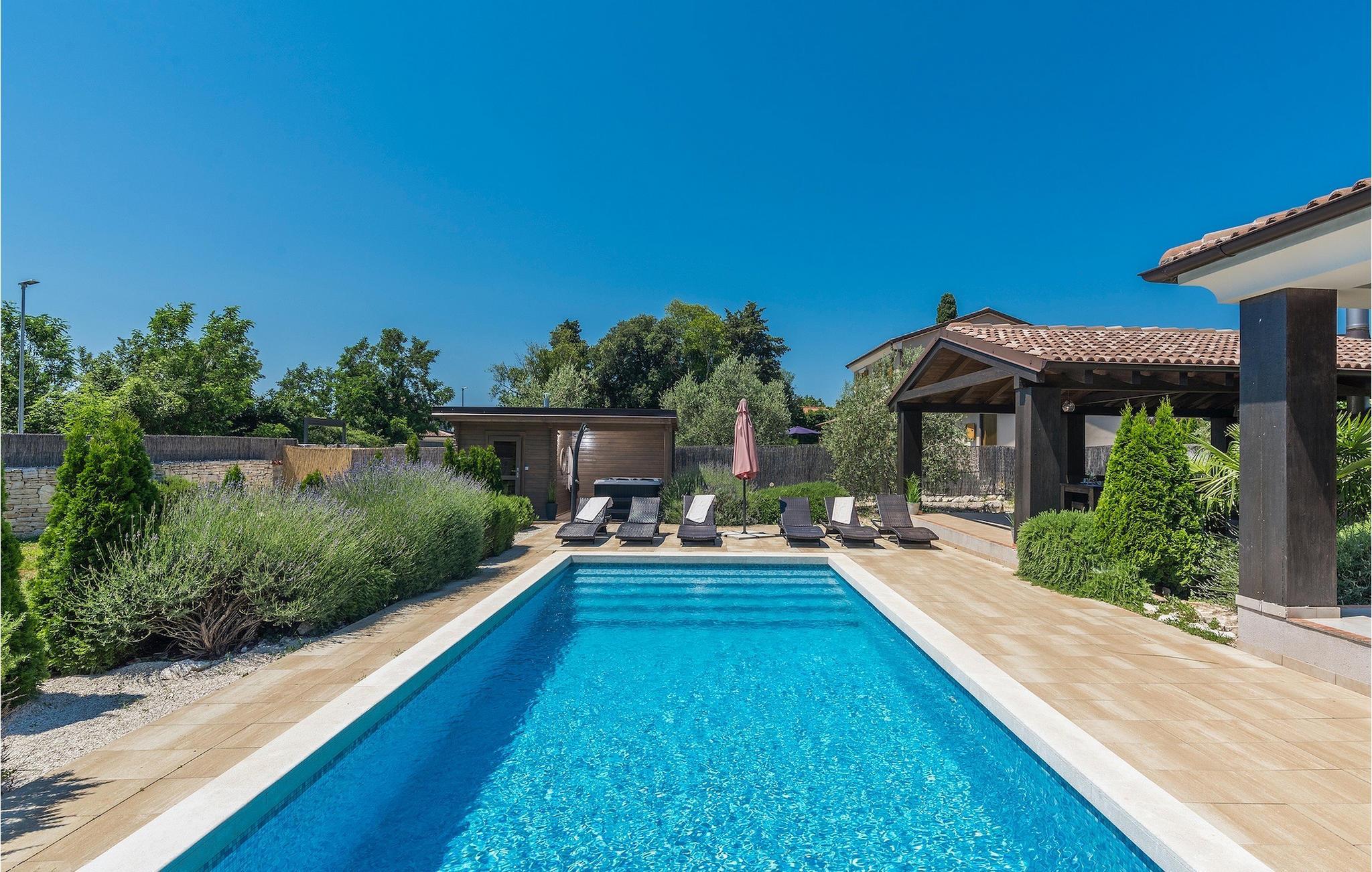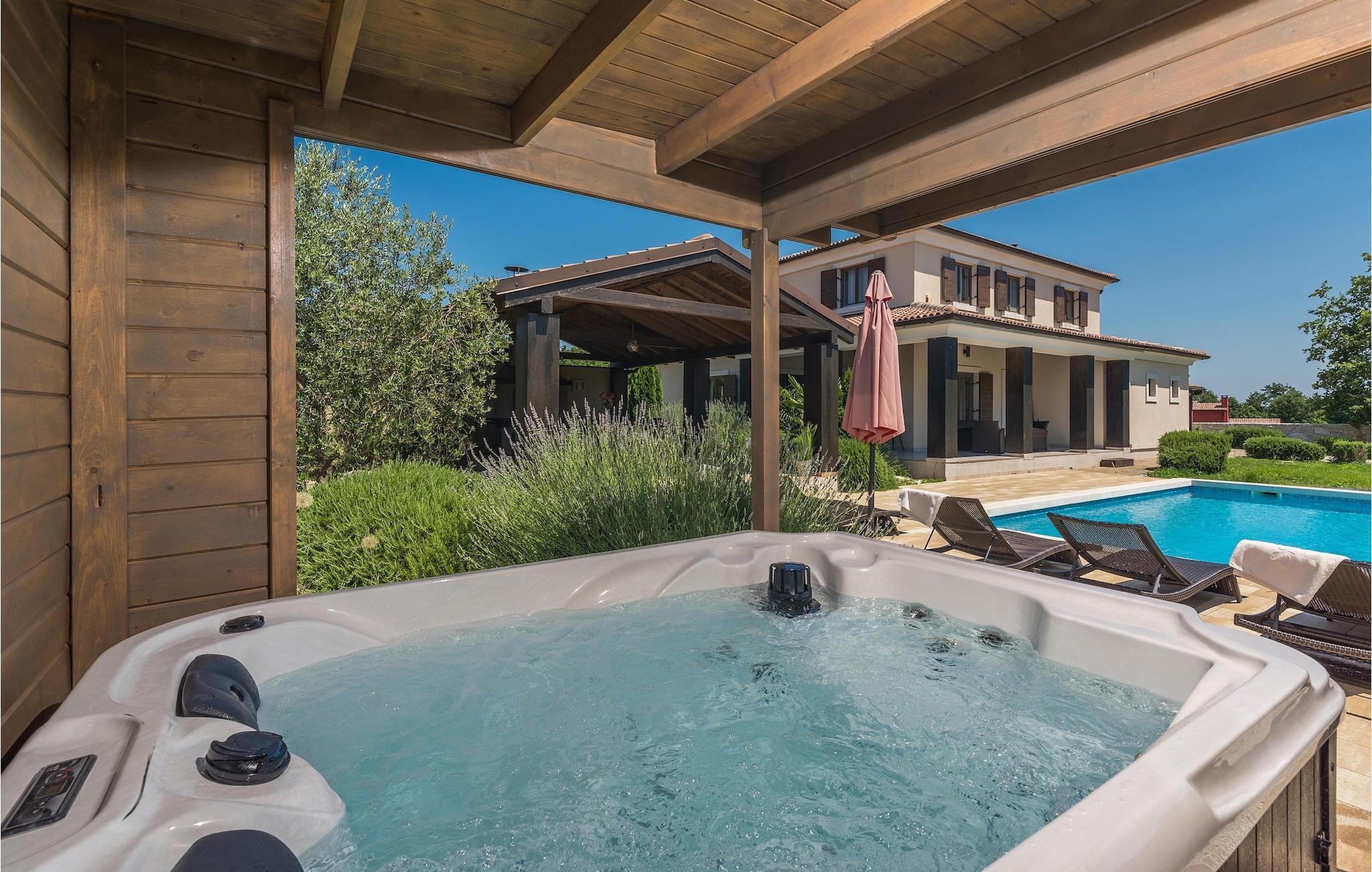 Denne smukke 5-værelses villa ligger i Bonasini, som er en charmerende lille landsby, bygget af sten med 10 indbyggere - et meget fredeligt sted for en afslappende ferie. Det er placeret på en solrig bakke, omgivet af skov i uberørt natur, så beliggenheden er perfekt til udendørs aktiviteter. Villaen har et samlet indendørs areal på 275 kvm og udendørs på 1345 kvm. Det har også sin egen have, privat swimmingpool, en overdækket grill og spiseplads med et udendørs sommerkøkken og afslappende havemøbler. Villaen er veludstyret og smagfuldt indrettet med sans for detaljer. Alle soveværelser har ensuite badeværelser og A/C enheder. Alle soveværelser har ensuite badeværelser og A/C enheder. Ved siden af villaens hovedbygning er der et lille privat wellness-center (finsk sauna, jacuzzi, bruser) til din fornøjelse. Ud over dette finder du et fælles sportsområde i nærheden, med volleyballbane, bordtennis og badmintonbane. Hvis fuldstændig afslapning, total komfort og smukke landlige omgivelser er dit mål, er Villa Leonardo næsten umulig at slå. Skulle du dog beslutte dig for at forlade den overbærende luksus i din ferievilla, er der masser af fantastiske steder i nærheden at opdage. De nærmeste strande er i den idylliske fiskerby Fazana (20 km) med en smuk havn, hvorfra turistbåde tager dig til en af de smukkeste nationalparker i Kroatien - Brioni. En bred vifte af turistfaciliteter kan findes i den betagende historiske by Rovinj (30 km), og sørg for at besøge regionens hovedstad, Pula, hvor et storslået romersk amfiteater er vært for regelmæssige filmvisninger, kulturelle begivenheder og livekoncerter af verdens- kendte kunstnere. Ikke at gå glip af er de maleriske middelalderlandsbyer Svetvincenat (8 km), Vodnjan (8 km) og Bale (15 km) fyldt med maleriske pladser, smalle stengader og hyggelige taverner, butikker og barer. Udover kulturelle og historiske skønheder byder denne region på en enestående gastronomisk oplevelse, som kan nydes i de mange restauranter, agriturisme og lokale kældre kun en kort køretur væk.