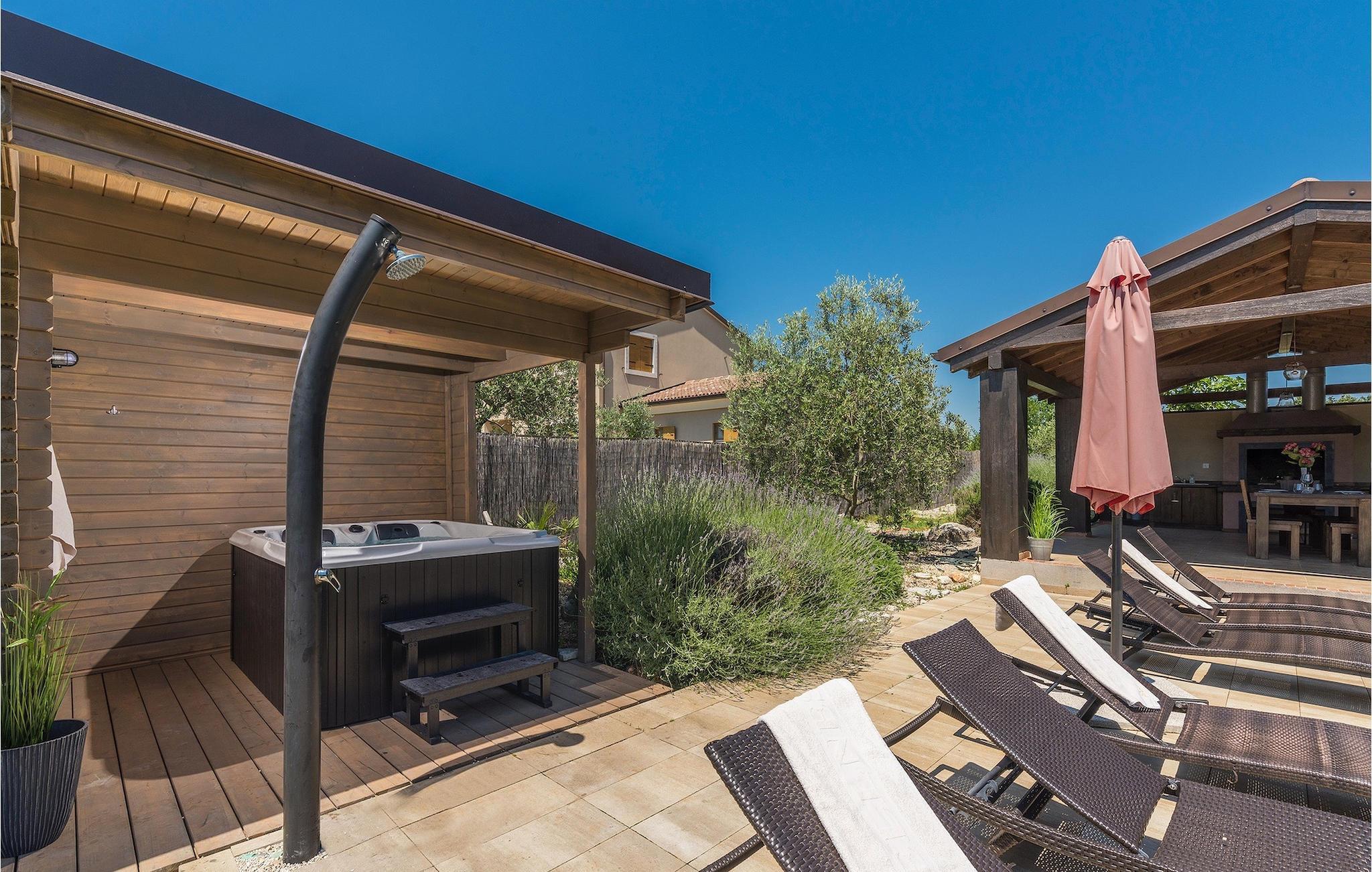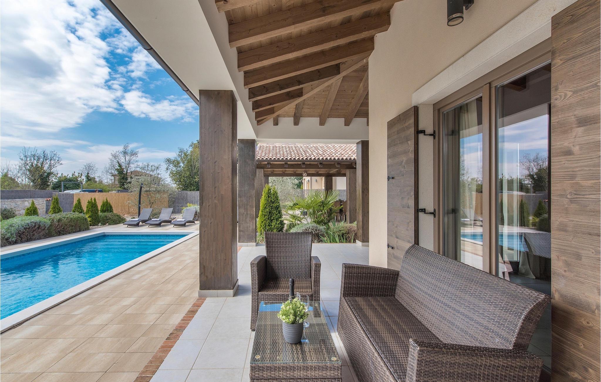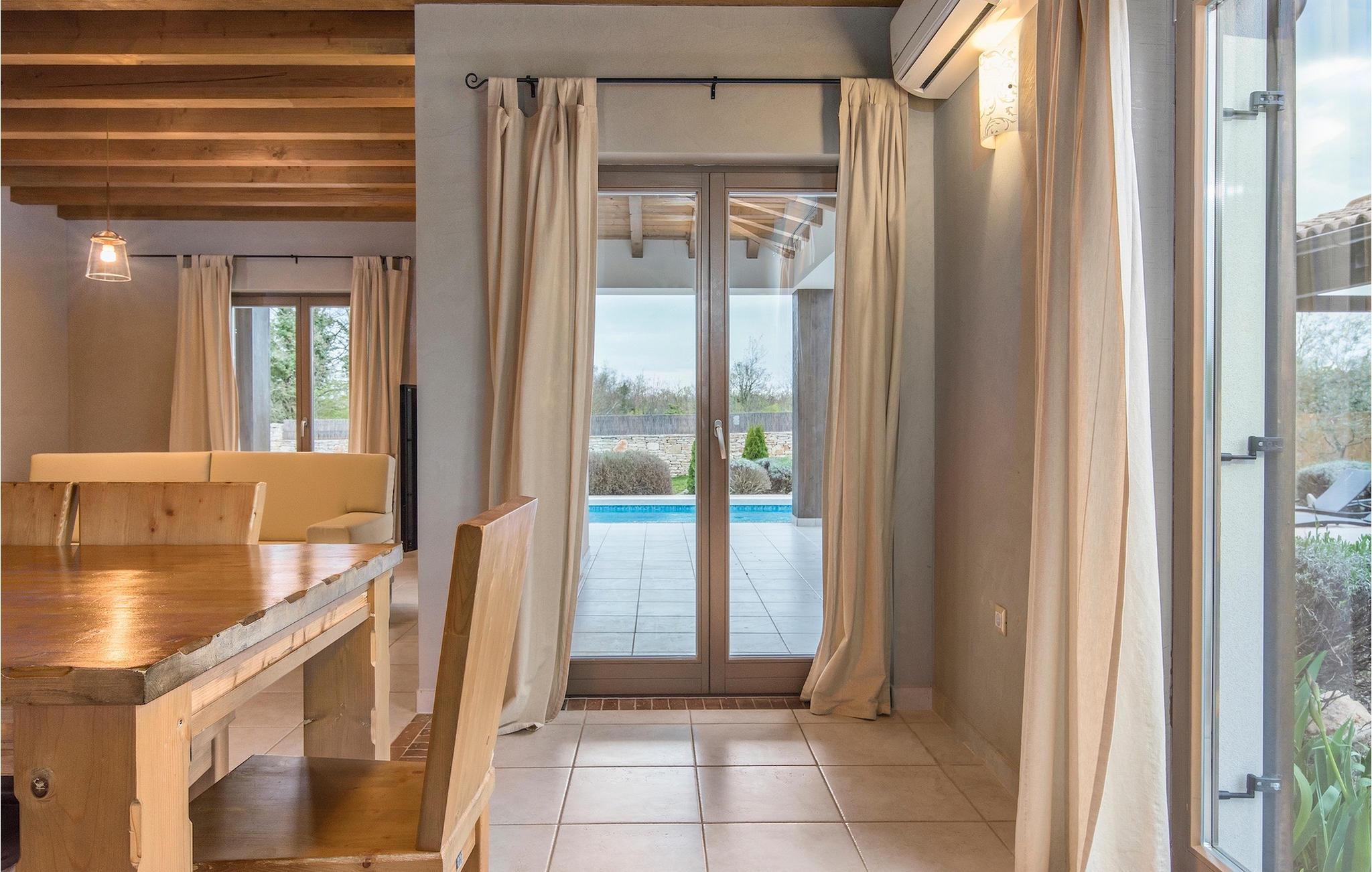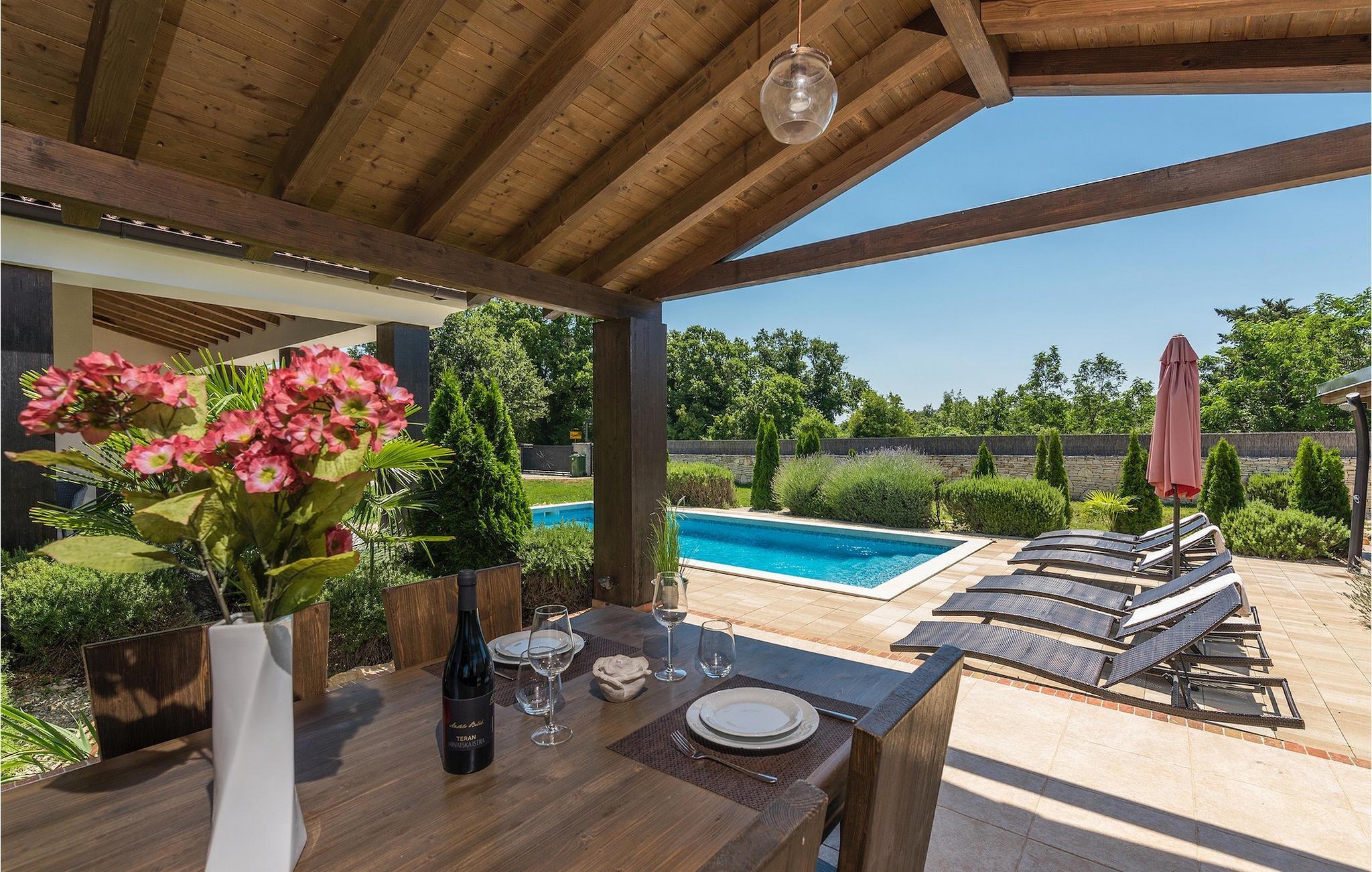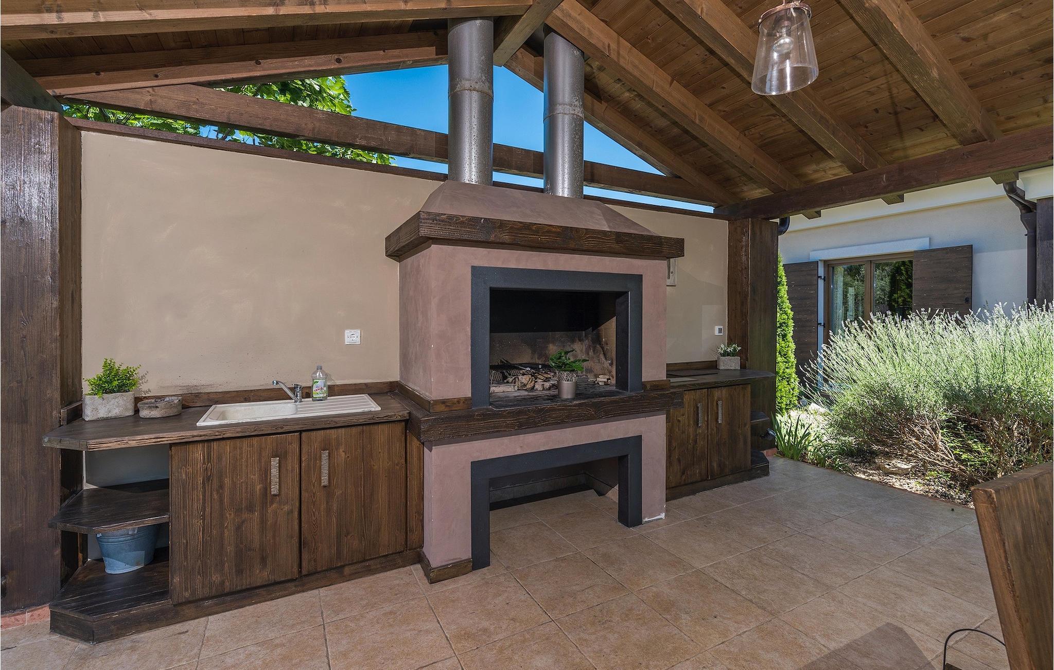 Denne smukke 5-værelses villa ligger i Bonasini, som er en charmerende lille landsby, bygget af sten med 10 indbyggere - et meget fredeligt sted for en afslappende ferie. Det er placeret på en solrig bakke, omgivet af skov i uberørt natur, så beliggenheden er perfekt til udendørs aktiviteter. Villaen har et samlet indendørs areal på 275 kvm og udendørs på 1345 kvm. Det har også sin egen have, privat swimmingpool, en overdækket grill og spiseplads med et udendørs sommerkøkken og afslappende havemøbler. Villaen er veludstyret og smagfuldt indrettet med sans for detaljer. Alle soveværelser har ensuite badeværelser og A/C enheder. Alle soveværelser har ensuite badeværelser og A/C enheder. Ved siden af villaens hovedbygning er der et lille privat wellness-center (finsk sauna, jacuzzi, bruser) til din fornøjelse. Ud over dette finder du et fælles sportsområde i nærheden, med volleyballbane, bordtennis og badmintonbane. Hvis fuldstændig afslapning, total komfort og smukke landlige omgivelser er dit mål, er Villa Leonardo næsten umulig at slå. Skulle du dog beslutte dig for at forlade den overbærende luksus i din ferievilla, er der masser af fantastiske steder i nærheden at opdage. De nærmeste strande er i den idylliske fiskerby Fazana (20 km) med en smuk havn, hvorfra turistbåde tager dig til en af de smukkeste nationalparker i Kroatien - Brioni. En bred vifte af turistfaciliteter kan findes i den betagende historiske by Rovinj (30 km), og sørg for at besøge regionens hovedstad, Pula, hvor et storslået romersk amfiteater er vært for regelmæssige filmvisninger, kulturelle begivenheder og livekoncerter af verdens- kendte kunstnere. Ikke at gå glip af er de maleriske middelalderlandsbyer Svetvincenat (8 km), Vodnjan (8 km) og Bale (15 km) fyldt med maleriske pladser, smalle stengader og hyggelige taverner, butikker og barer. Udover kulturelle og historiske skønheder byder denne region på en enestående gastronomisk oplevelse, som kan nydes i de mange restauranter, agriturisme og lokale kældre kun en kort køretur væk.