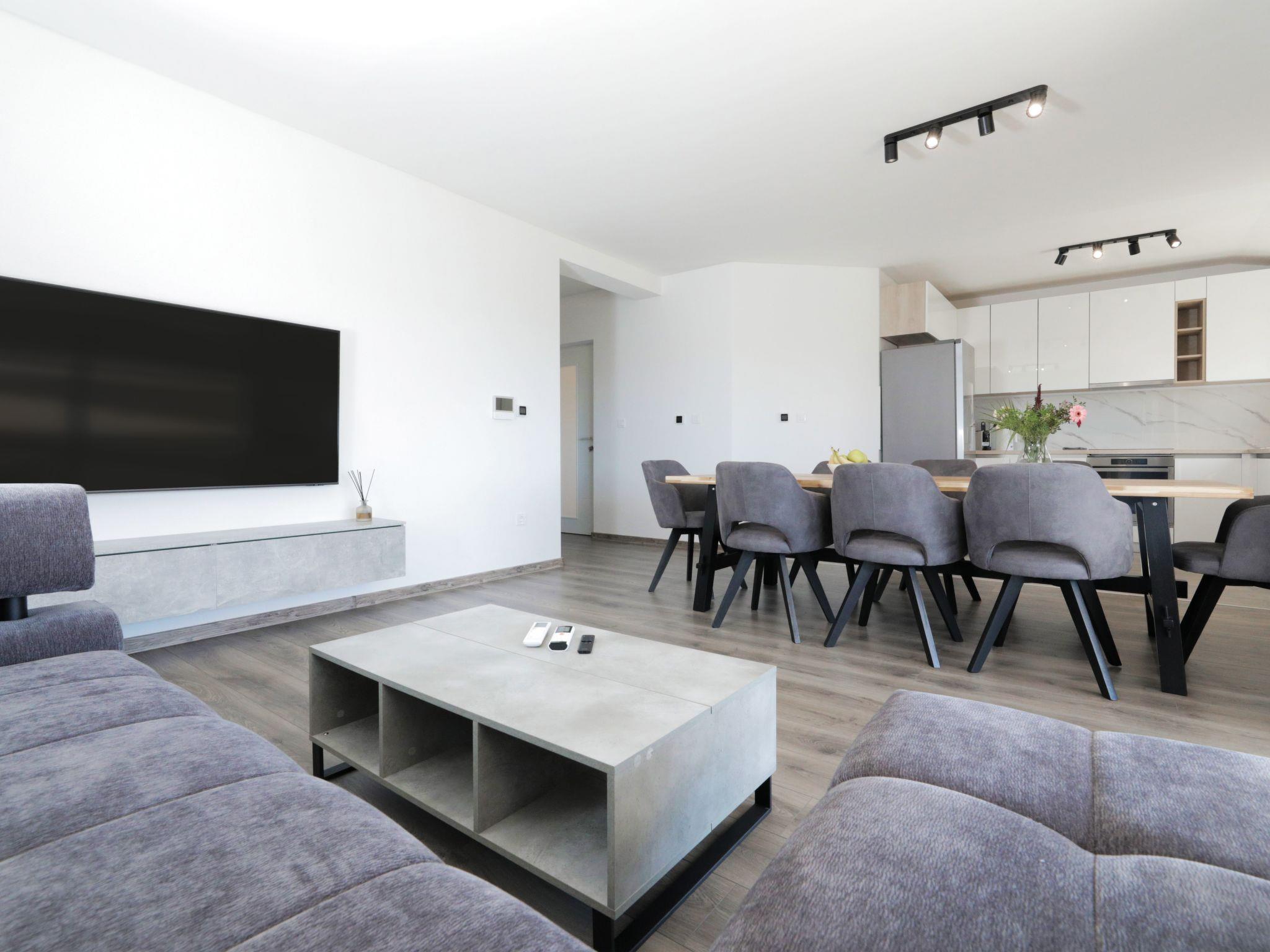 Our spacious luxury "Matic apartment" is the perfect getaway place for families and friends. Fully equipt kitchen with all the aparature (microwave, toaster, fridge, dish washer, stove...), a dining room table with 8 chairs, spacious and comfortable living room with a big Flat screen plasma TV. In front of the house is a nice terrase with available barbacue space with a traditional dalmatian grill. There are 3 bedrooms with 3 king size bed and also 2 bathroom with toilet, shower and a laundry washing/drying machine. There are 2 air conditioning.
