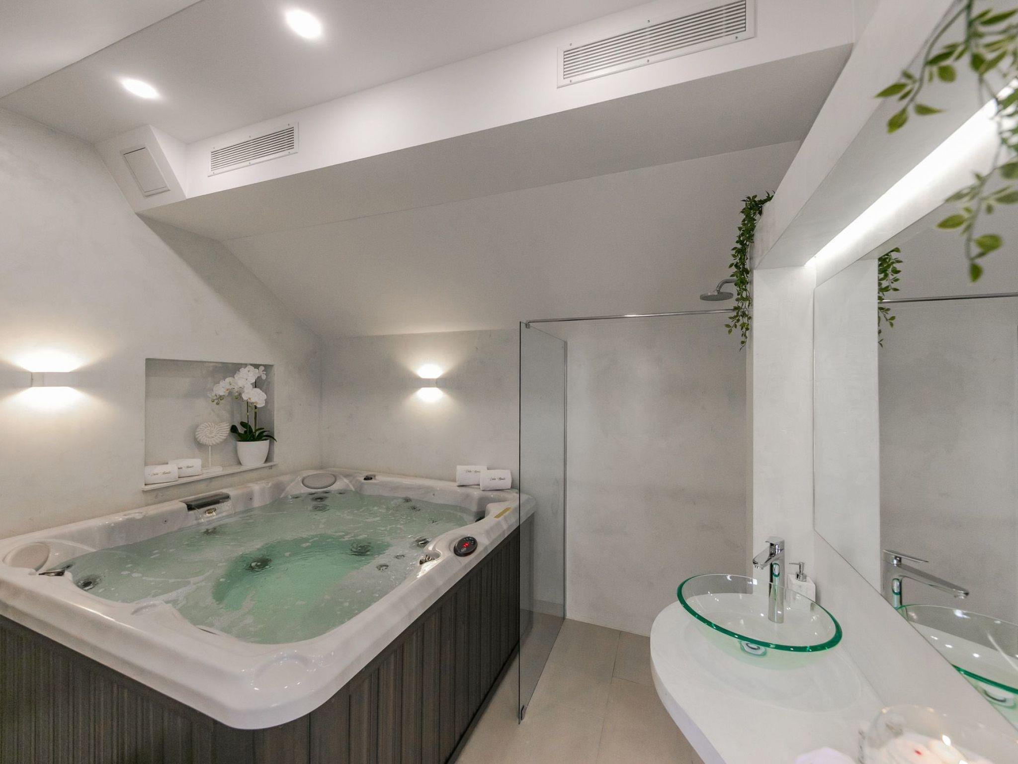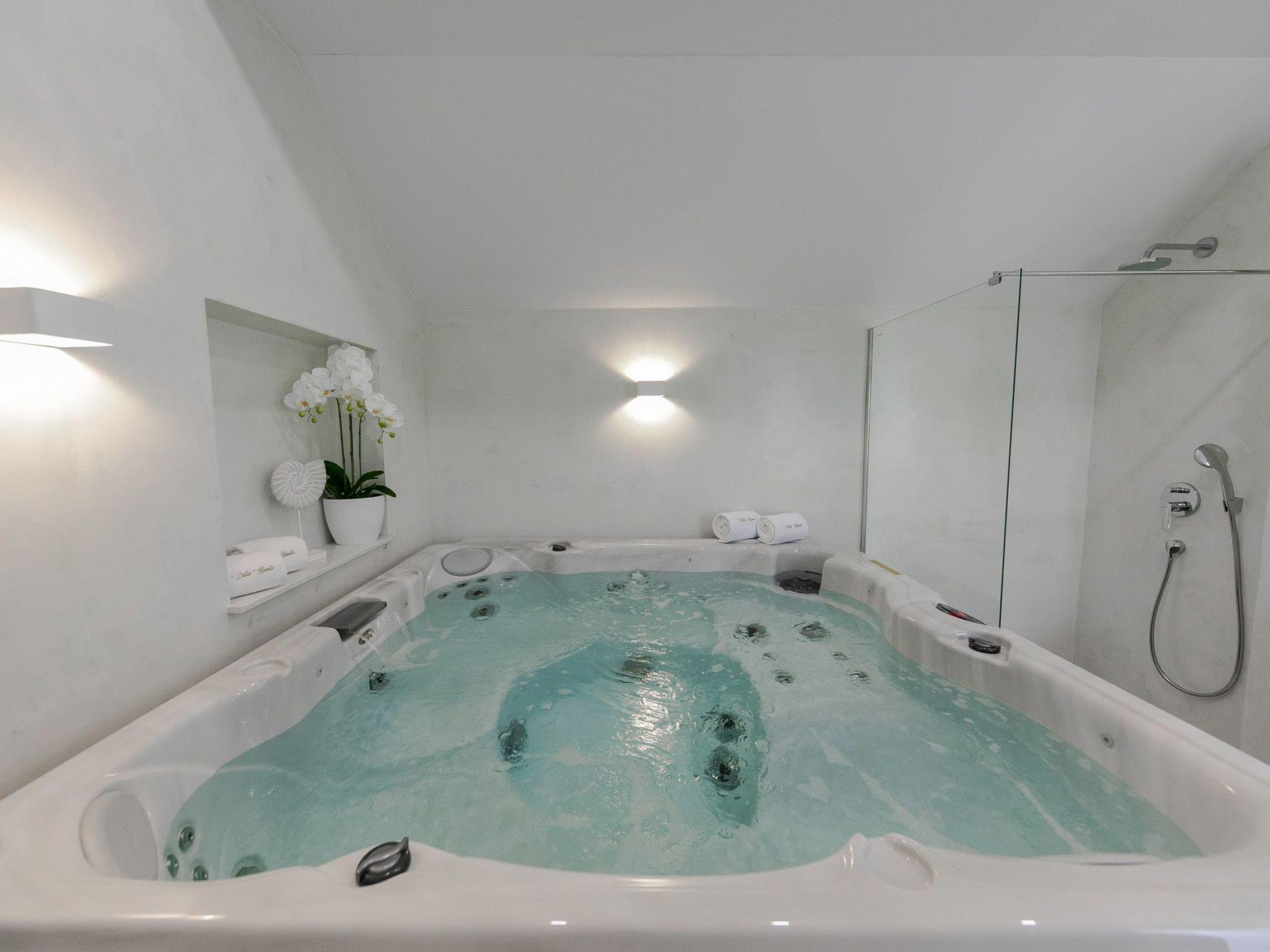 The access to all the facilities is private including spa room, outdoor area, bedrooms, kitchen, bathrooms and parking.