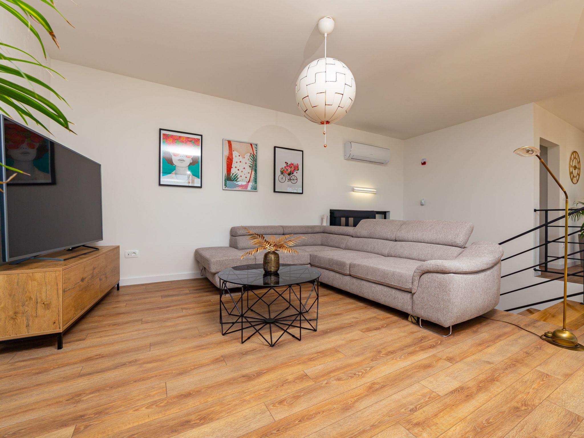 The external features of this villa are just as impressive. The private pool invites guests to take a refreshing dip or relax by the water's edge on the spacious terrace. The surrounding garden, for sole use, is a lush, green sanctuary ideal for relaxation or playful gatherings. This outdoor oasis is designed with leisure and entertainment in mind, making every moment spent outside as comfortable and enjoyable as within.