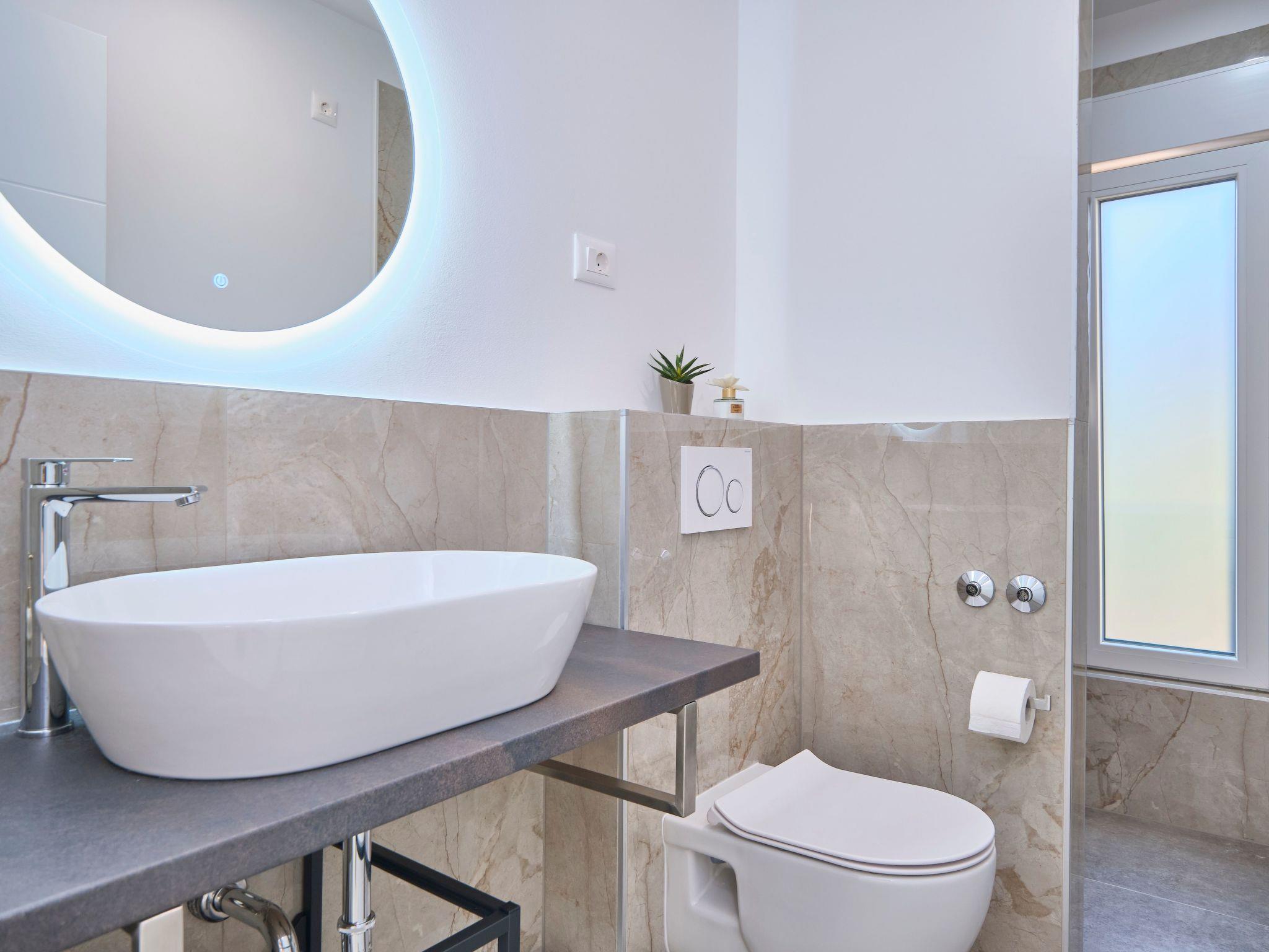 Villa Adria Dream is a newly furnished 5-bedroom villa offering both comfort and style. Spanning two levels, the villa features a ground floor and an upper floor, with each bedroom equipped with its own bathroom, shower, and air conditioning. A fully equipped kitchen and spacious living room offer the possibility of preparing meals and relaxation for the whole group/family.