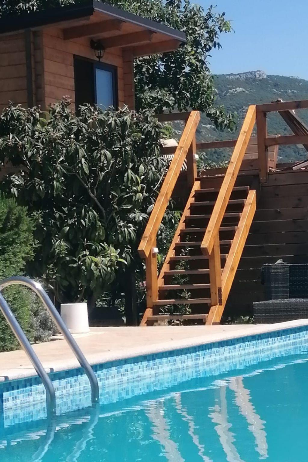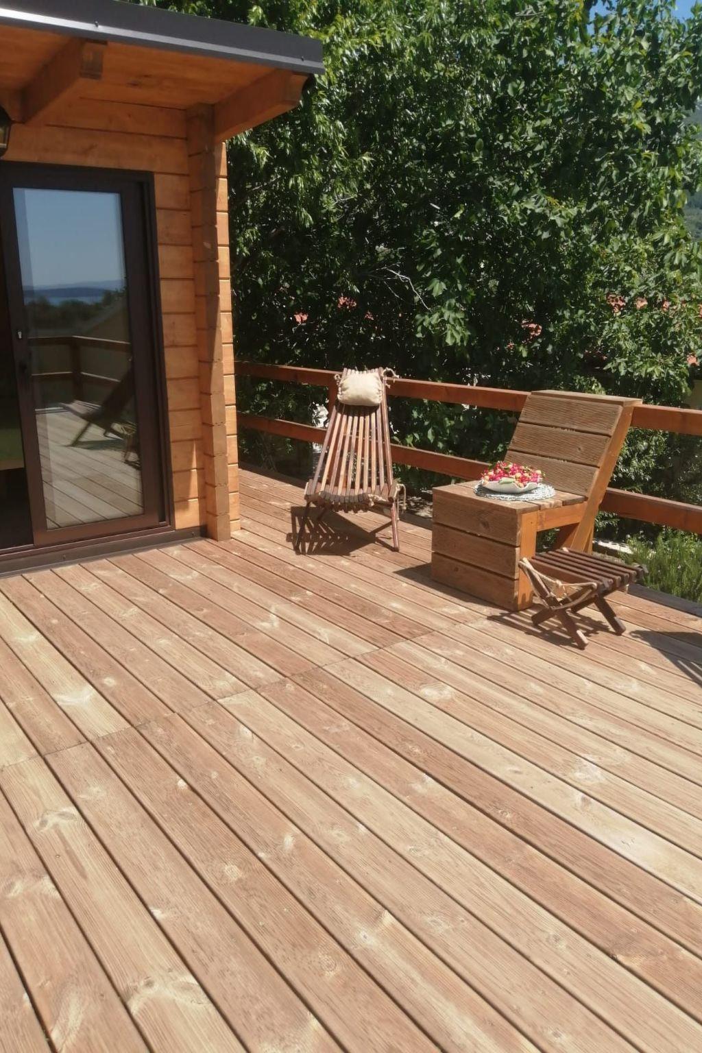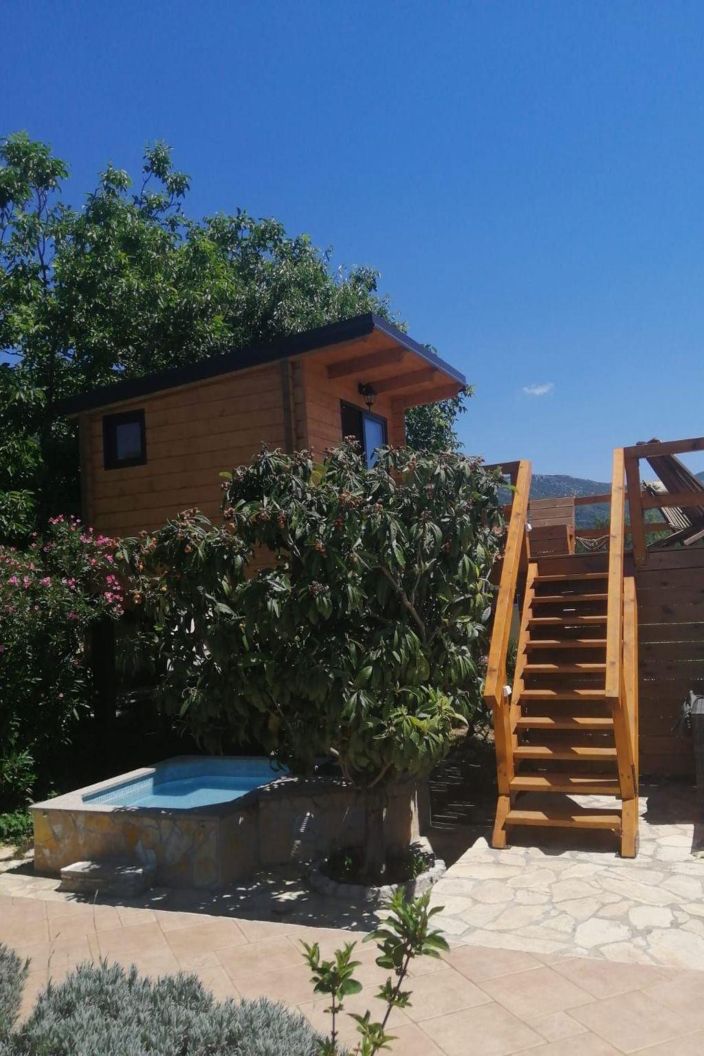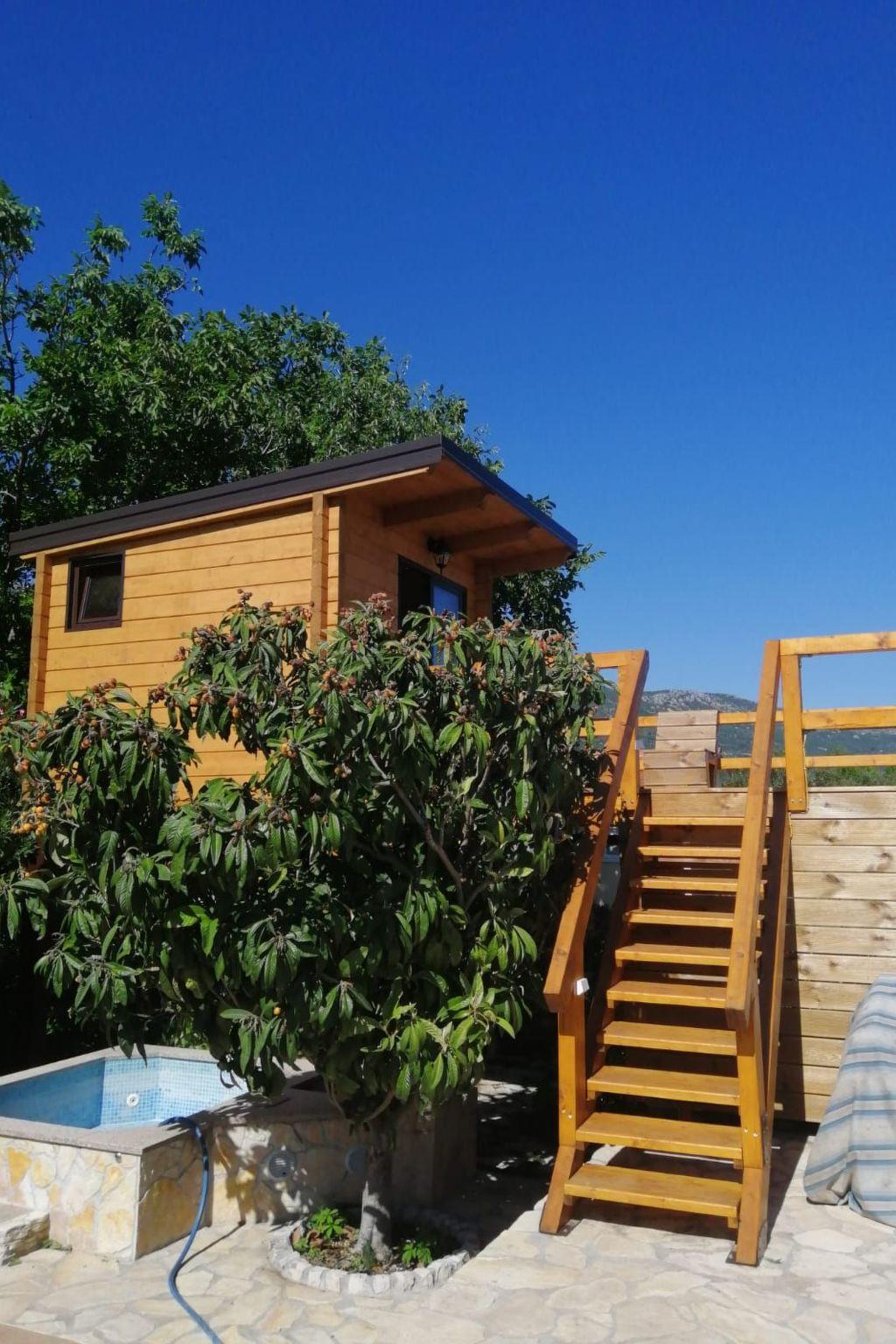 Main house consists of ground floor and first floor, covering the total living area of 116 m2. The ground floor consists of open concept well equipped kitchen and living room with access to the spacious terrace with outdoor furniture overlooking the garden and pool area, modern bathroom with bathtub and 1 bedroom with bunk beds, ideal for children. Indoor staircase leads to the first floor which consists of 1 bedroom with double bed and one bedroom with twin beds.