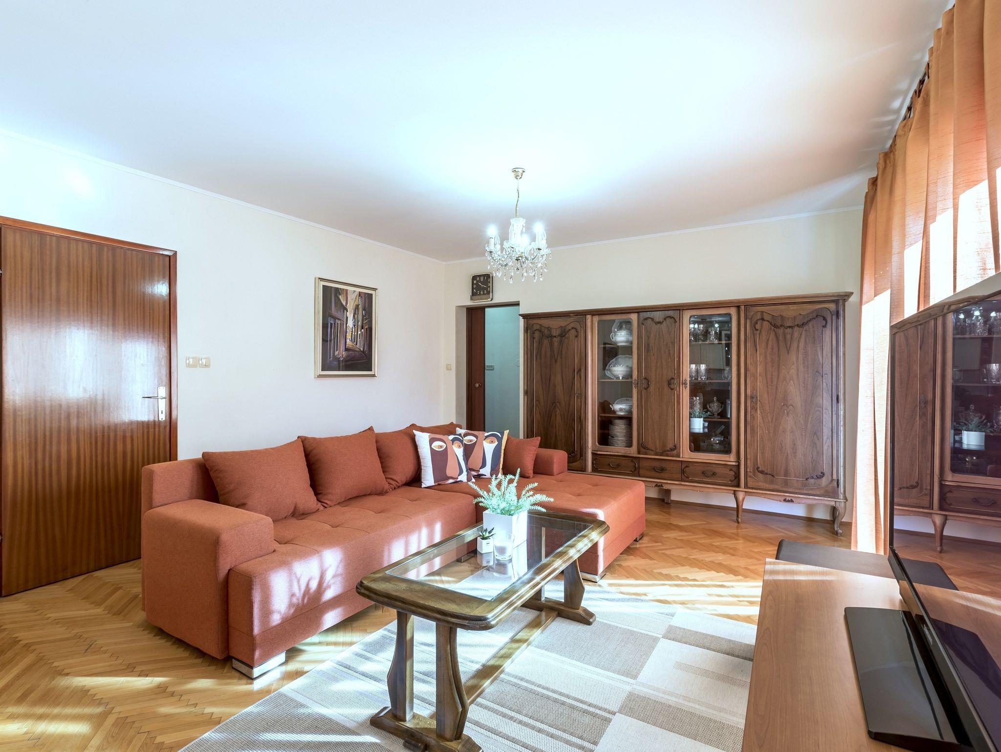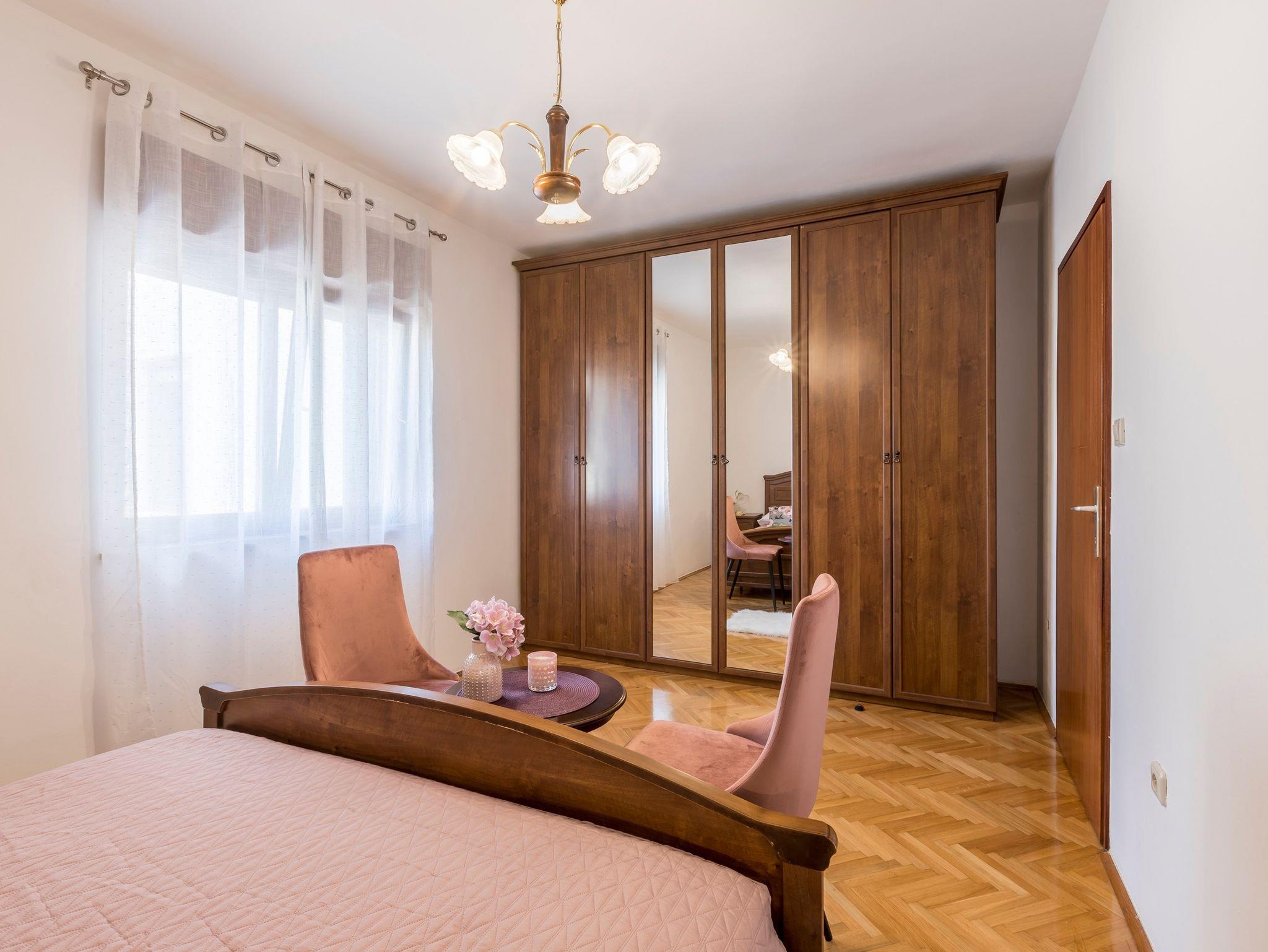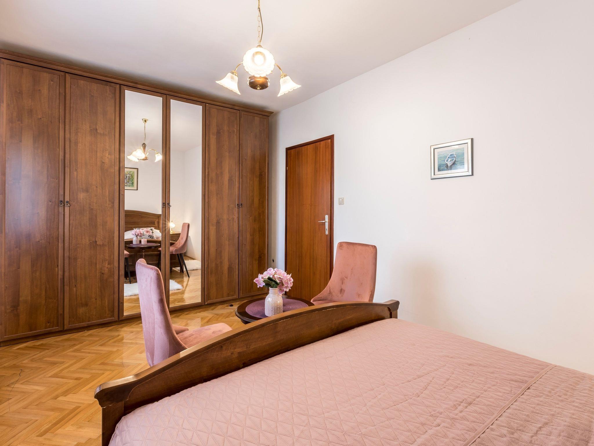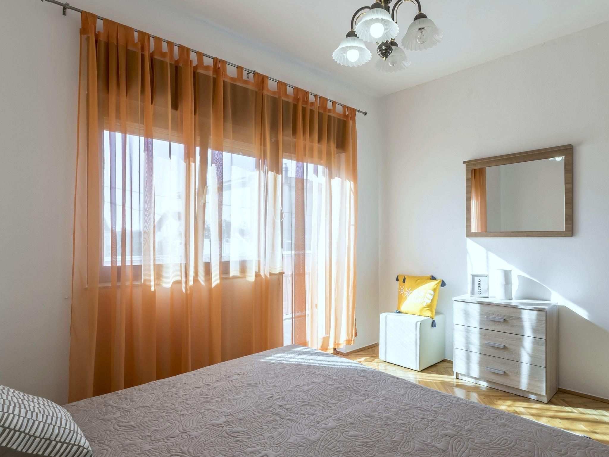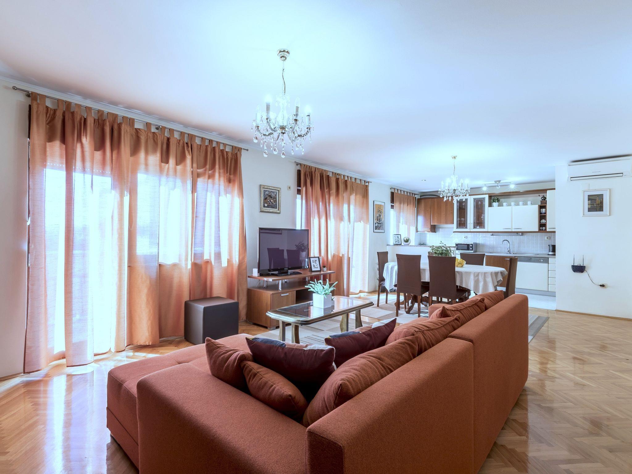 Ferienwohnung bietet Platz für 6 Gäste. Die Betten sind in Schlafzimmern, die es 3 gibt, innerhalb einer Gesamtfläche von 99m2, angeordnet. Die Gäste haben einen eigenen Balkon zur Verfügung, auf der sie in warmen Sommernächten genießen können. Es ist erlaubt, Speisen auf dem Gemeinschafts-Grill vorzubereiten. In der Unterkunftseinheit besteht die Möglichkeit des Mitbringens von Haustieren, und die Dienstleistung ist im Preis der Unterkunft enthalten. IM PREIS INBEGRIFFEN: Kurtaxe, Endreinigung, Klimatisierung, Parkplatz, Internet, Haustiere, Kinderbett, Zusatzbett, Bügeleisen, Bügelbrett, Föhn, tragbarer Grill. Die Verfügbarkeit zusätzlicher Dienstleistungen in Ihrem reservierten Termin und die Preise derselben (falls nicht aufgeführt) müssen im Voraus überprüft werden. Zusätzliche Dienstleistungen die in der Zahlungsaufforderung nicht aufgeführt sind werden direkt beim Vermieter bezahlt, angenommen der Gast nutzt auch diese.