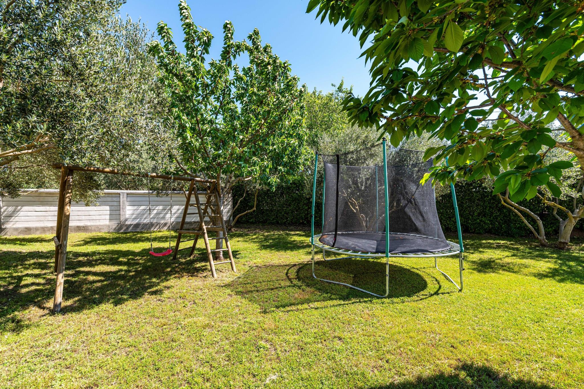Åbent køkken(kogeplade(gas, elektrisk), elkedel, brødrister, kaffemaskine, ovn, mikrobølgeovn, opvaskemaskine , køleskab, fryser, ), stue / spisestue(Fjernsyn(parabol), spisebord, sofahjørne), soveværelse(enkeltseng, enkeltseng, dobbeltseng), soveværelse(enkeltsovesofa, dobbeltseng), badeværelse(bruser, håndvask, toilet), badeværelse(bruser, håndvask, toilet), toilet(toilet), Havemøbler, spisebord, grill, vaskemaskine, klimaanlæg, terrasse, have, solstole, grill, parkering, swimmingpool(privat), barnestol, strygebræt, strygejern, føntørrer, havepejs, crib(free), , Wine glasses