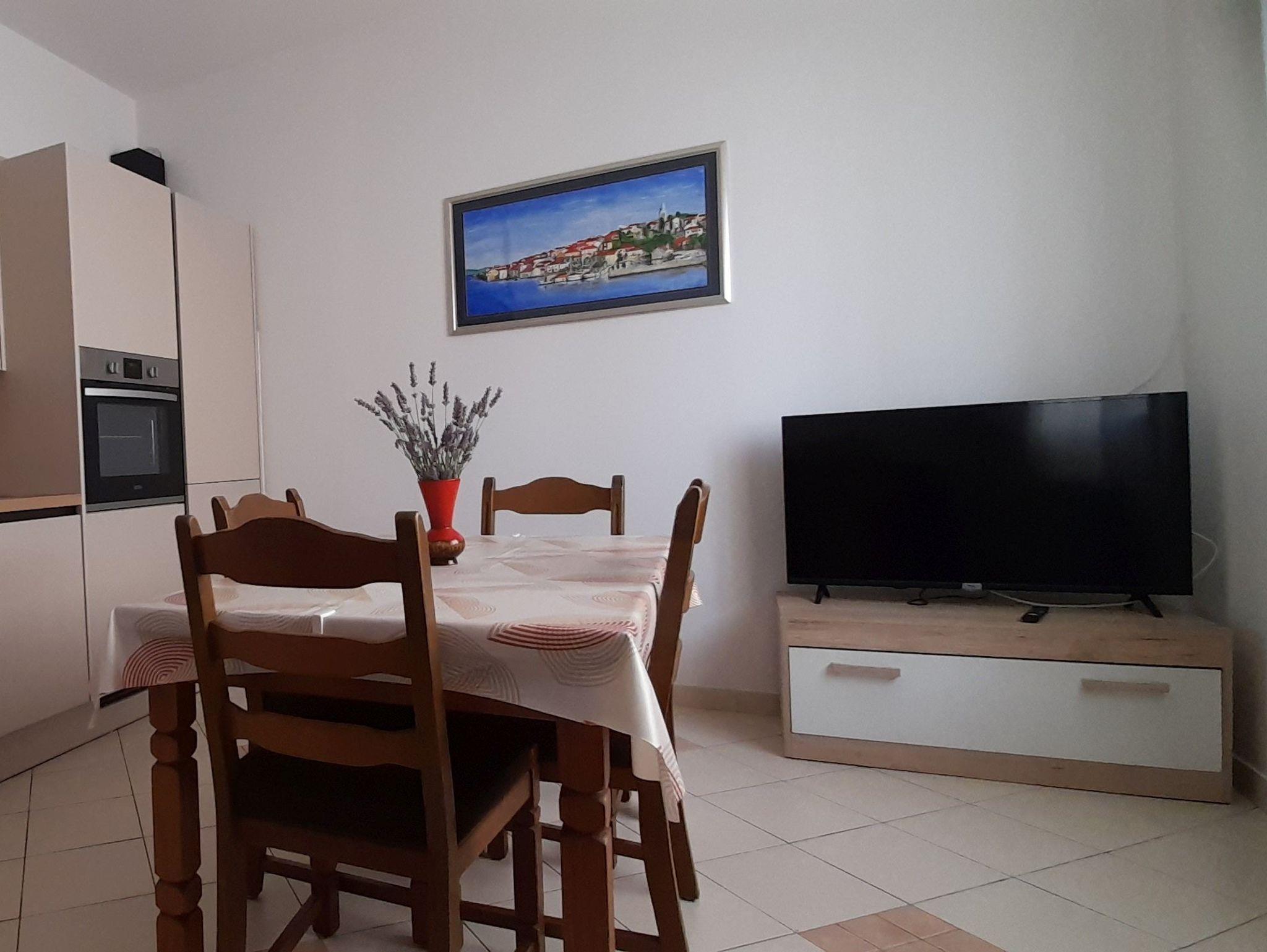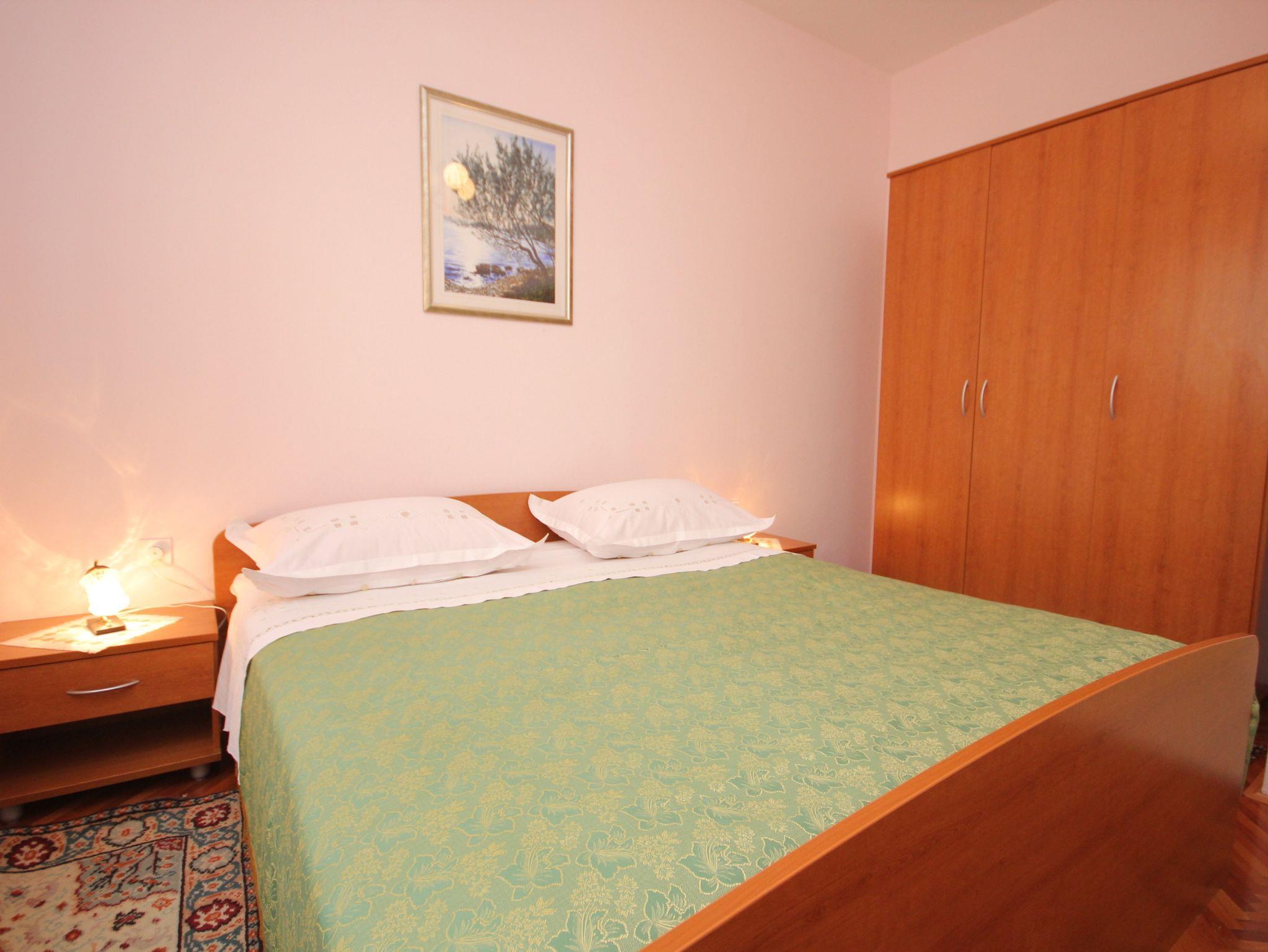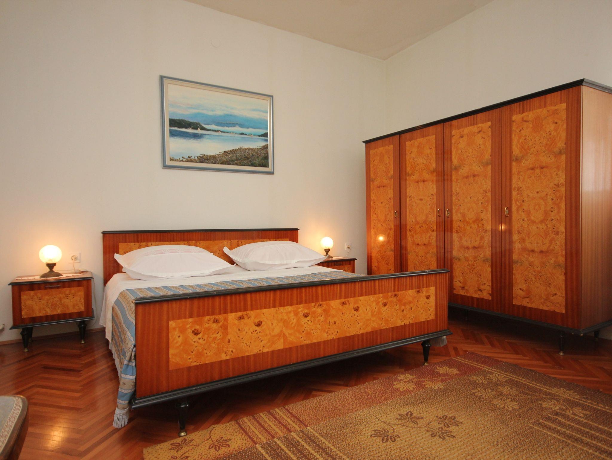 Ferienwohnung bietet Platz für 5 Gäste. Die Betten sind in Schlafzimmern, die es 2 gibt, und in Wohnzimmer, innerhalb einer Gesamtfläche von 59m2, angeordnet. Die Gäste haben eine eigene Terrasse zur Verfügung, auf der sie in warmen Sommernächten genießen können. Das Apartment bietet Meerblick. Es ist erlaubt, Speisen auf dem Gemeinschafts-Grill vorzubereiten. In der Unterkunftseinheit besteht die Möglichkeit des Mitbringens von Haustieren gegen Aufpreis. IM PREIS INBEGRIFFEN: Kurtaxe, Endreinigung, Klimatisierung, Parkplatz, Internet, Kinderbett, Bügeleisen, Bügelbrett, Föhn, tragbarer Grill, Sonnenschirm, Liegestühle. UNVERBINDLICHE ZUSÄTZLICHE KOSTEN: Zentralheizung (10,00 € pro Nacht), Wäschewaschen (10,00 € Waschen), Bootsanlegeplatz (5,00 € pro Nacht), Haustiere (5,00 € pro Nacht). Die Verfügbarkeit zusätzlicher Dienstleistungen in Ihrem reservierten Termin und die Preise derselben (falls nicht aufgeführt) müssen im Voraus überprüft werden. Zusätzliche Dienstleistungen die in der Zahlungsaufforderung nicht aufgeführt sind werden direkt beim Vermieter bezahlt, angenommen der Gast nutzt auch diese.