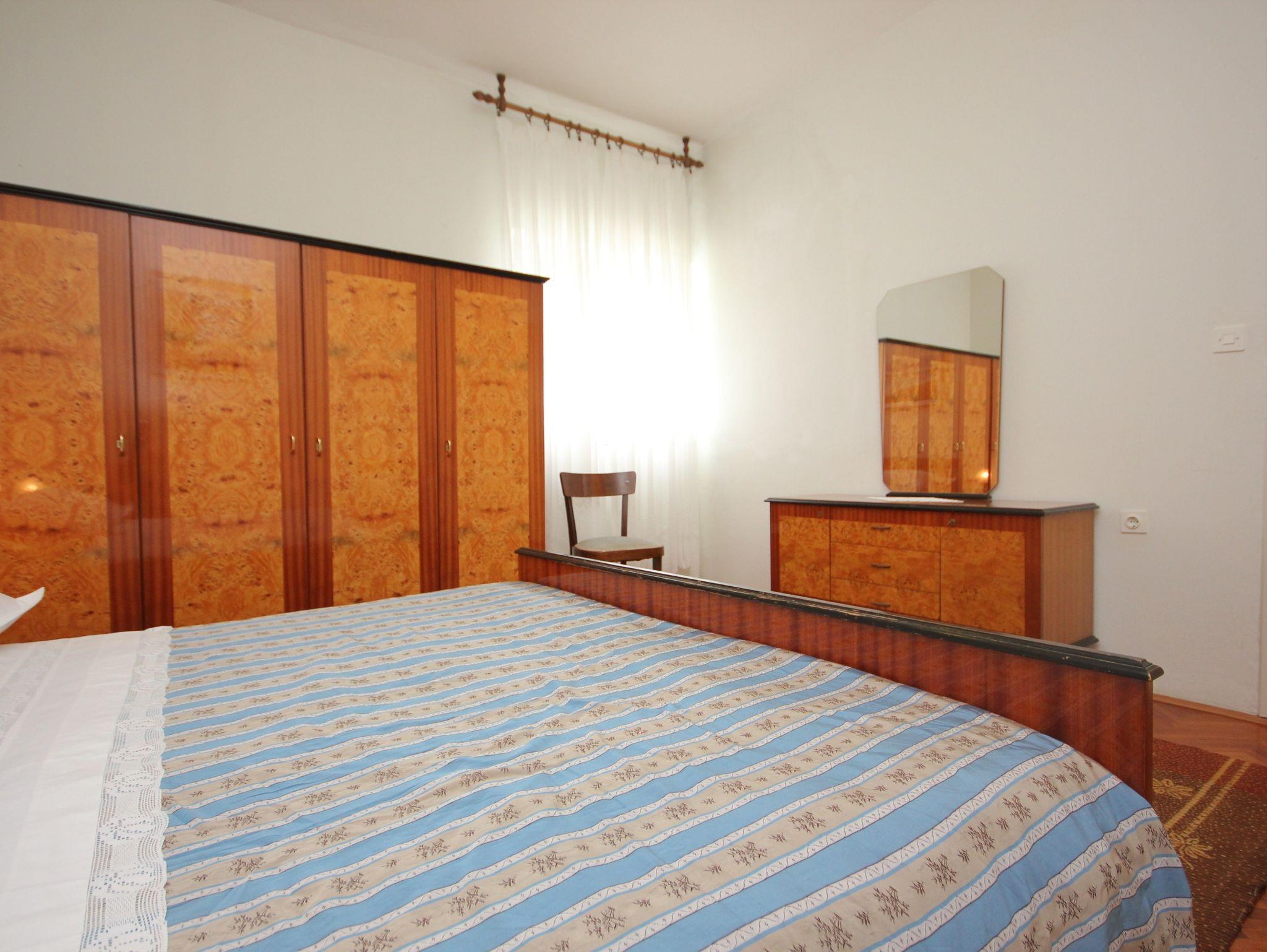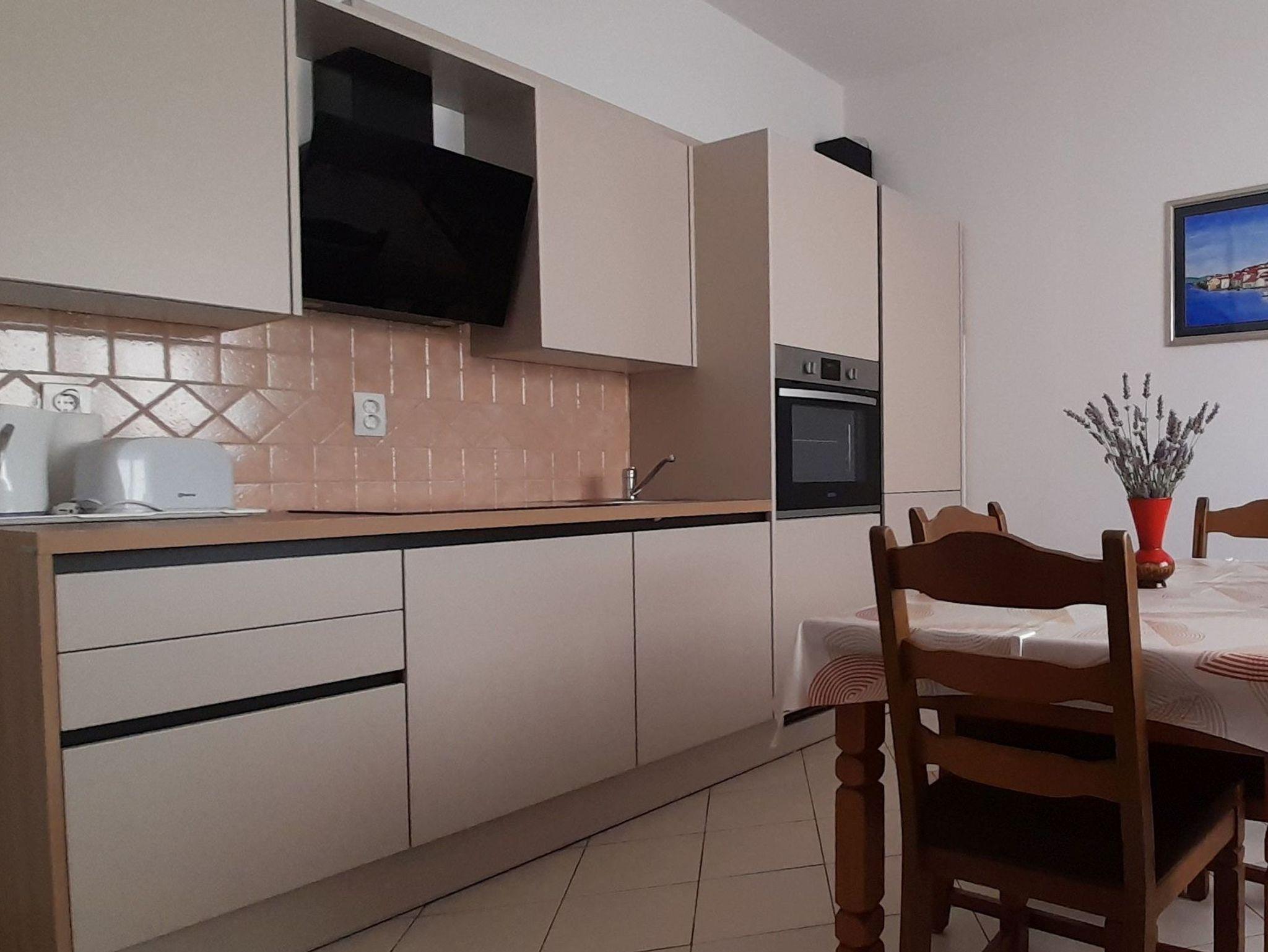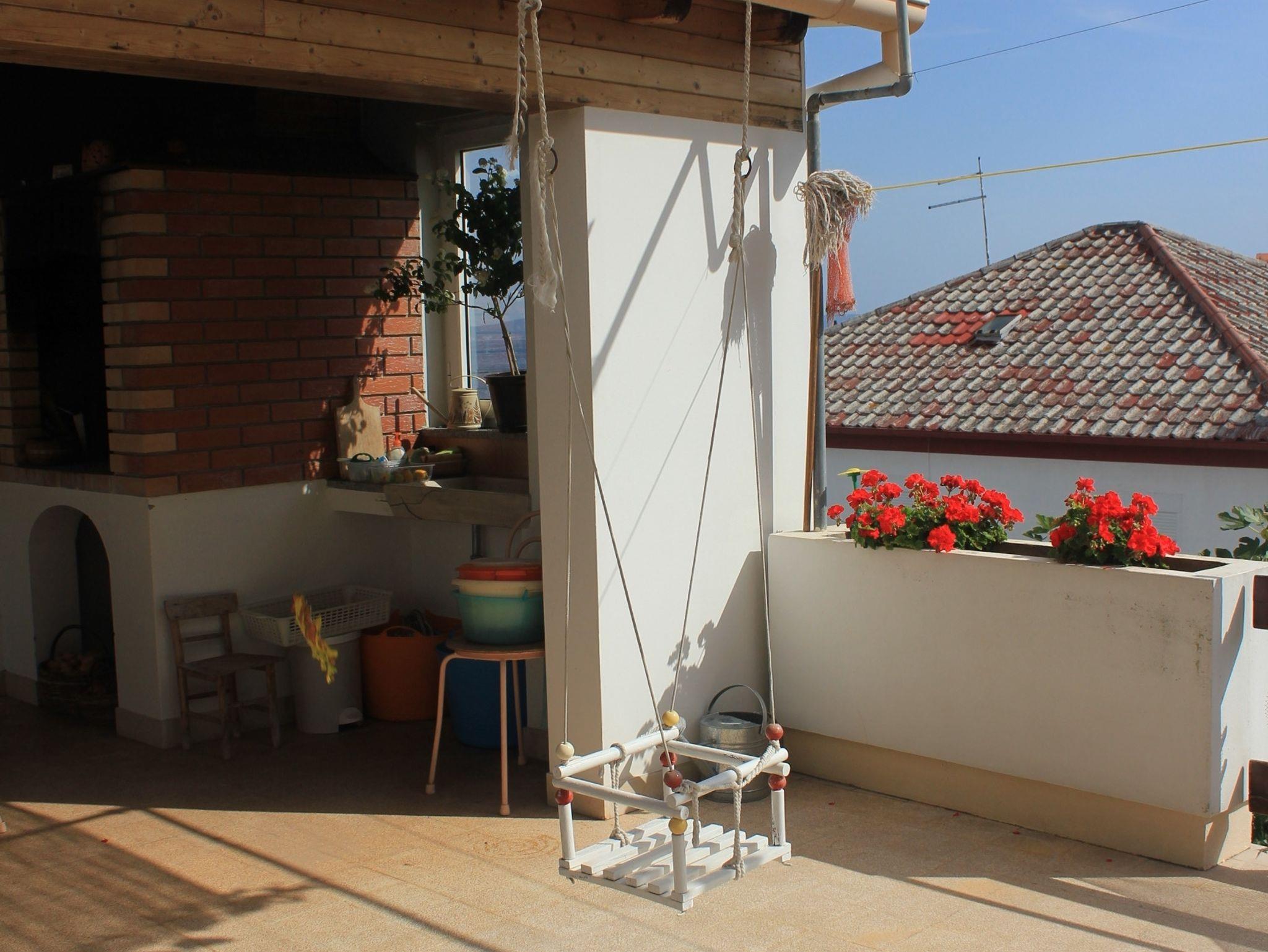 Ferienwohnung bietet Platz für 5 Gäste. Die Betten sind in Schlafzimmern, die es 2 gibt, und in Wohnzimmer, innerhalb einer Gesamtfläche von 59m2, angeordnet. Die Gäste haben eine eigene Terrasse zur Verfügung, auf der sie in warmen Sommernächten genießen können. Das Apartment bietet Meerblick. Es ist erlaubt, Speisen auf dem Gemeinschafts-Grill vorzubereiten. In der Unterkunftseinheit besteht die Möglichkeit des Mitbringens von Haustieren gegen Aufpreis. IM PREIS INBEGRIFFEN: Kurtaxe, Endreinigung, Klimatisierung, Parkplatz, Internet, Kinderbett, Bügeleisen, Bügelbrett, Föhn, tragbarer Grill, Sonnenschirm, Liegestühle. UNVERBINDLICHE ZUSÄTZLICHE KOSTEN: Zentralheizung (10,00 € pro Nacht), Wäschewaschen (10,00 € Waschen), Bootsanlegeplatz (5,00 € pro Nacht), Haustiere (5,00 € pro Nacht). Die Verfügbarkeit zusätzlicher Dienstleistungen in Ihrem reservierten Termin und die Preise derselben (falls nicht aufgeführt) müssen im Voraus überprüft werden. Zusätzliche Dienstleistungen die in der Zahlungsaufforderung nicht aufgeführt sind werden direkt beim Vermieter bezahlt, angenommen der Gast nutzt auch diese.