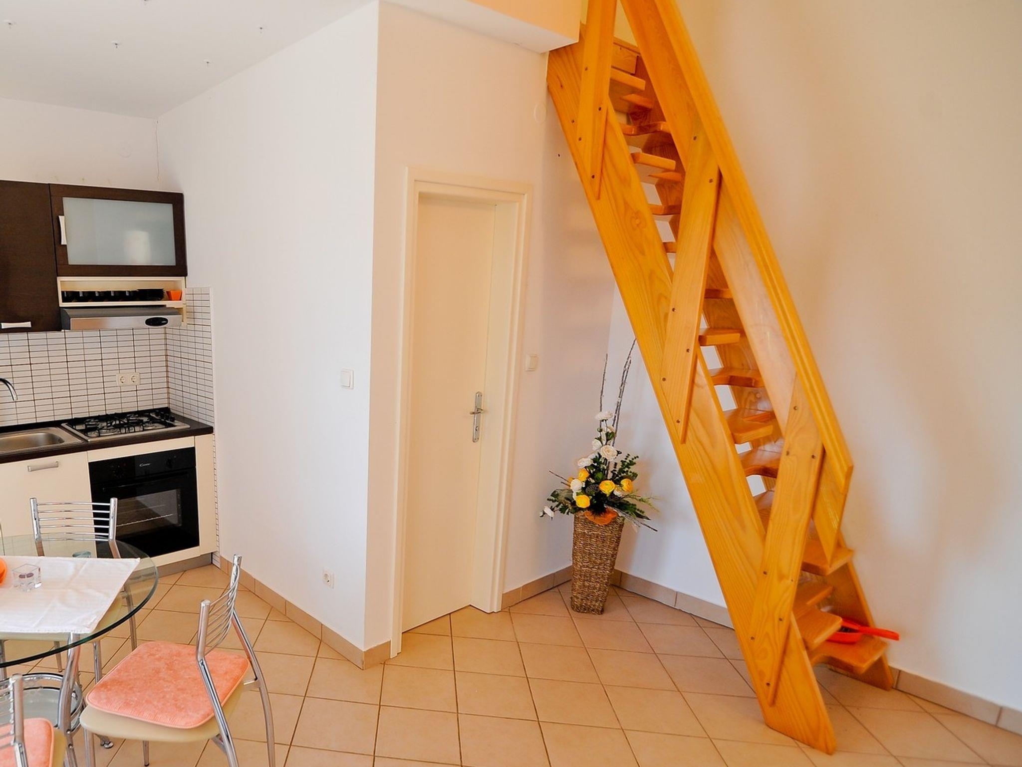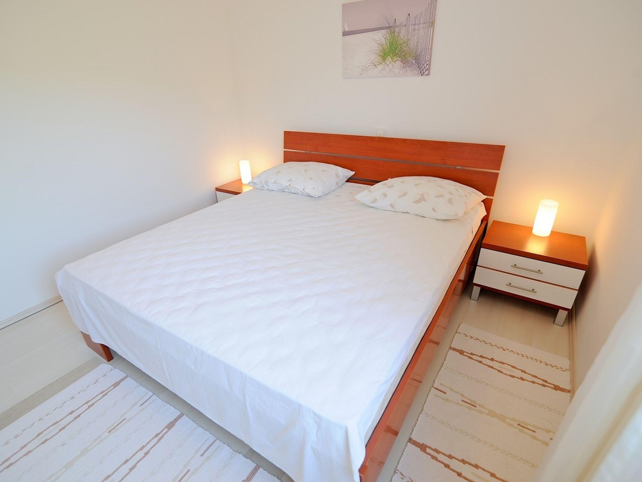 Ferienwohnung bietet Platz für 4 Gäste. Die Betten sind in Schlafzimmern, die es 1 gibt, und in Wohnzimmer, innerhalb einer Gesamtfläche von 34m2, angeordnet. Die Gäste haben eine eigene Terrasse zur Verfügung, auf der sie in warmen Sommernächten genießen können. Das Apartment bietet Meerblick. Es ist erlaubt, Speisen auf dem Gemeinschafts-Grill vorzubereiten. In der Unterkunftseinheit besteht die Möglichkeit des Mitbringens von Haustieren, und die Dienstleistung ist im Preis der Unterkunft enthalten. IM PREIS INBEGRIFFEN: Kurtaxe, Endreinigung, Klimatisierung, Zentralheizung, Parkplatz, Internet, Wäschewaschen, Haustiere, Kinderbett, Bügeleisen, Bügelbrett, Föhn. Die Verfügbarkeit zusätzlicher Dienstleistungen in Ihrem reservierten Termin und die Preise derselben (falls nicht aufgeführt) müssen im Voraus überprüft werden. Zusätzliche Dienstleistungen die in der Zahlungsaufforderung nicht aufgeführt sind werden direkt beim Vermieter bezahlt, angenommen der Gast nutzt auch diese. Ermäßigung auf den Grundpreis: Gratistag 14=13 (bei einem Aufenthalt von 14 Tagen oder mehr erhalten Sie einen Gratistag für den Aufenthalt bis 31.12.26).