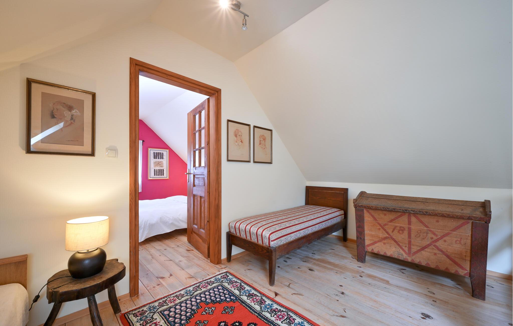 Velkommen til huset, ideelt beliggende til en afslappende ferie nær skoven og med en smuk udsigt over landskabet. Med sine hyggelige møbler og varme farver er det det perfekte sted at slappe af. Efter jeres aktiviteter inviterer stuen jer til at sidde sammen i lang tid og lægge planer for den næste dag. Skab en særlig hyggelig atmosfære med en ild i pejsen.