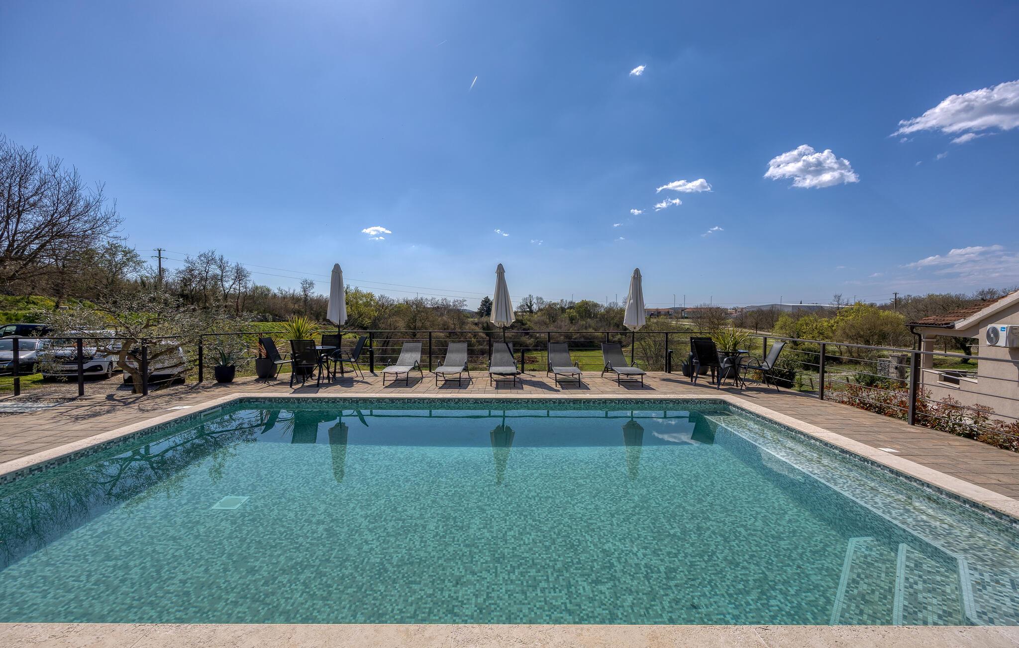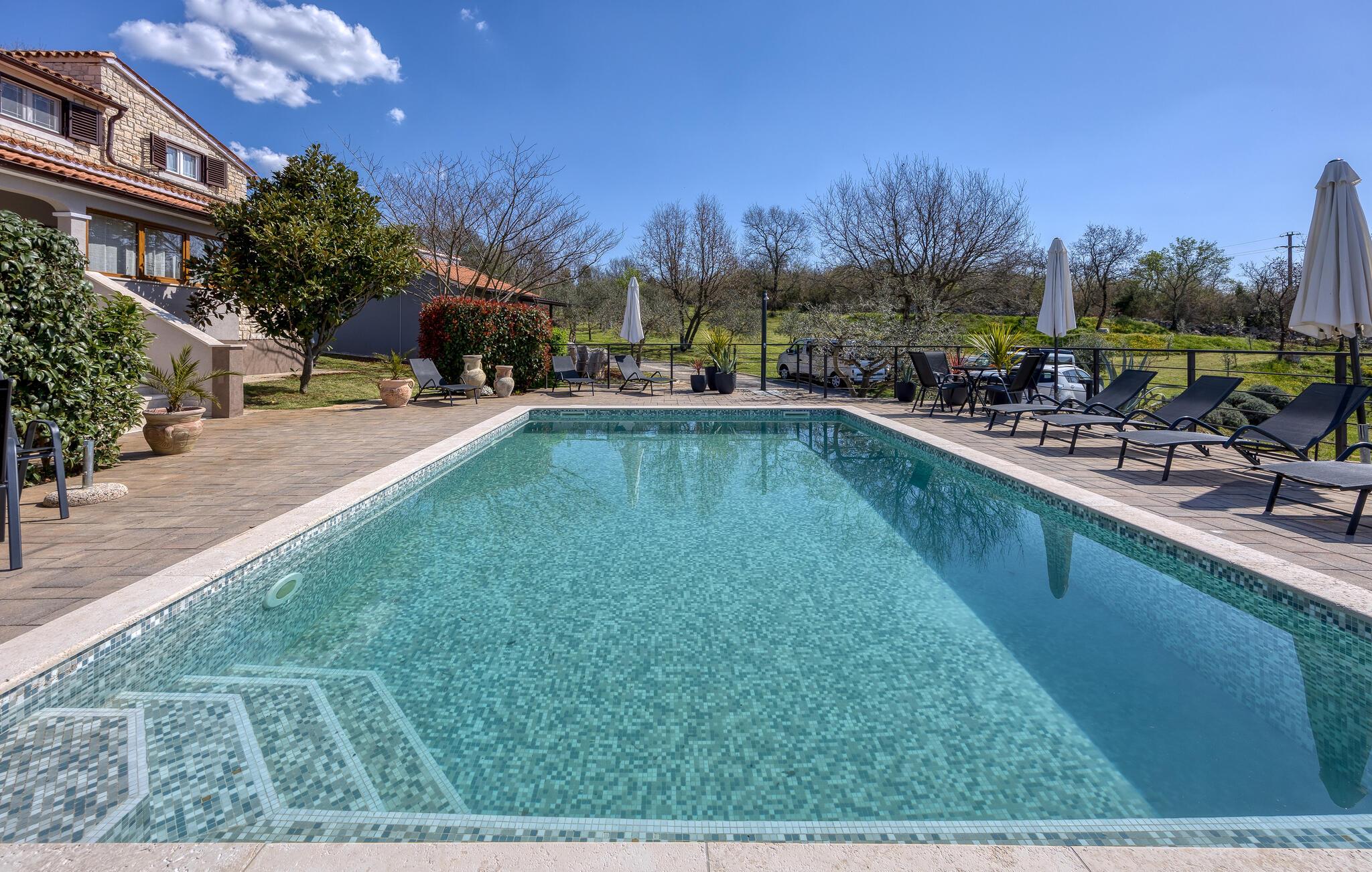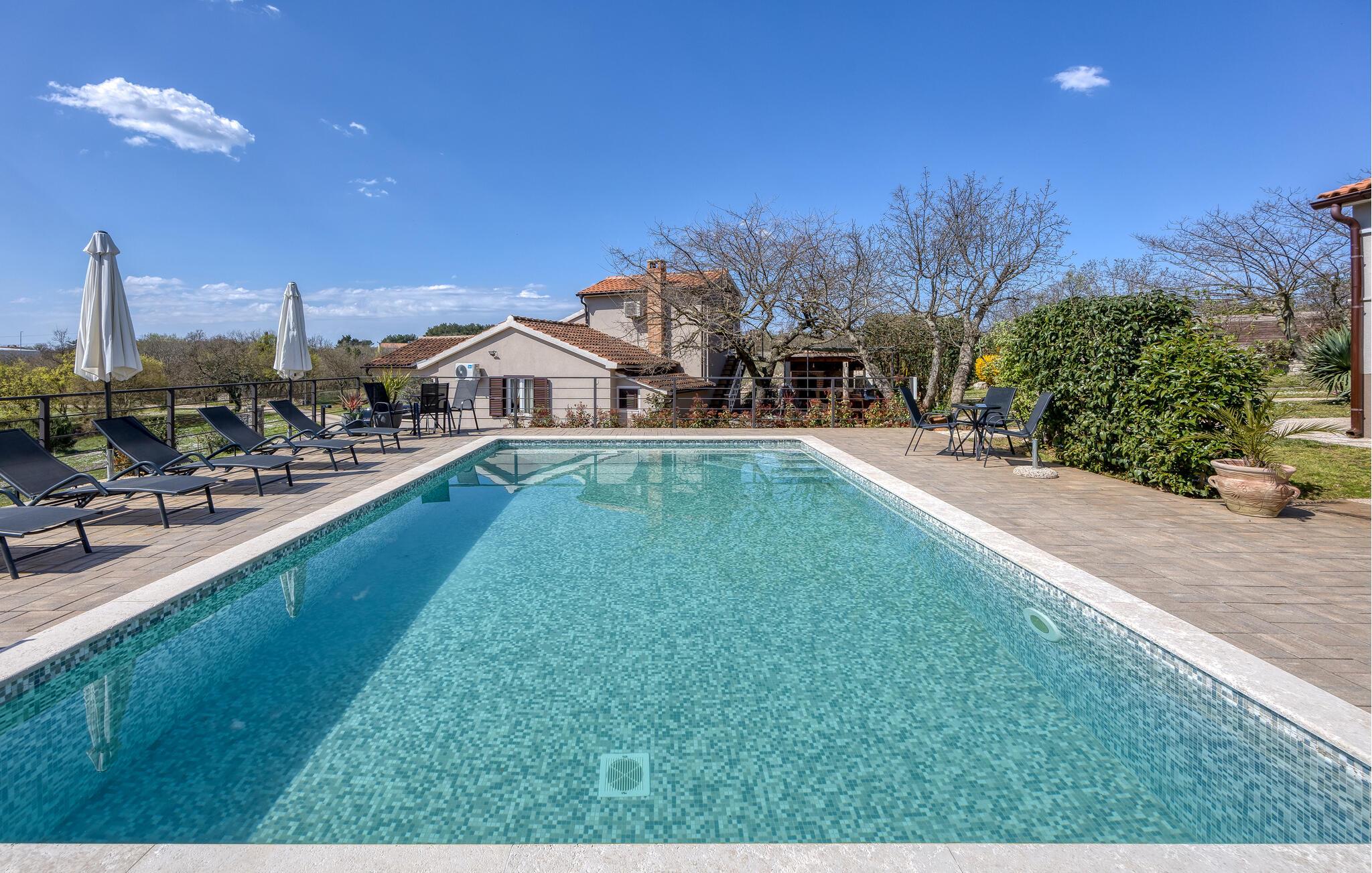 Huset har en swimmingpool, sauna og spa, hvor du kan slappe af med en omgang wellness.