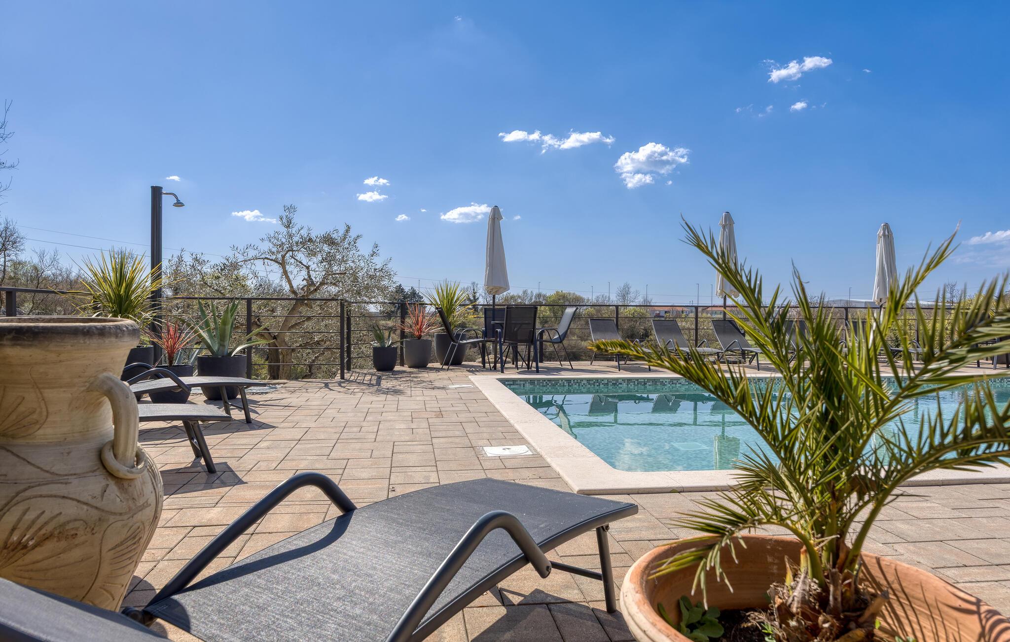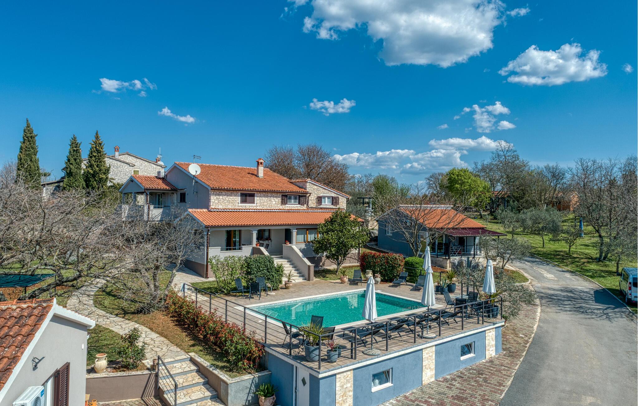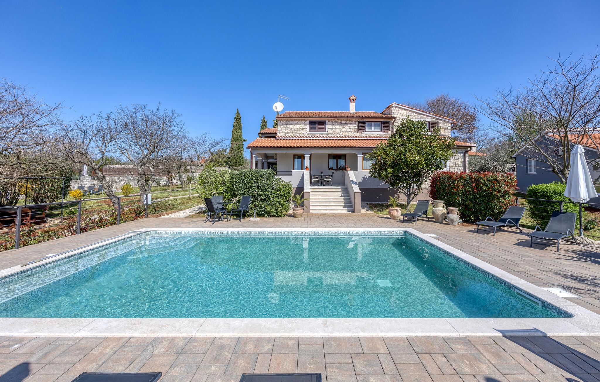 Huset har en swimmingpool, sauna og spa, hvor du kan slappe af med en omgang wellness.