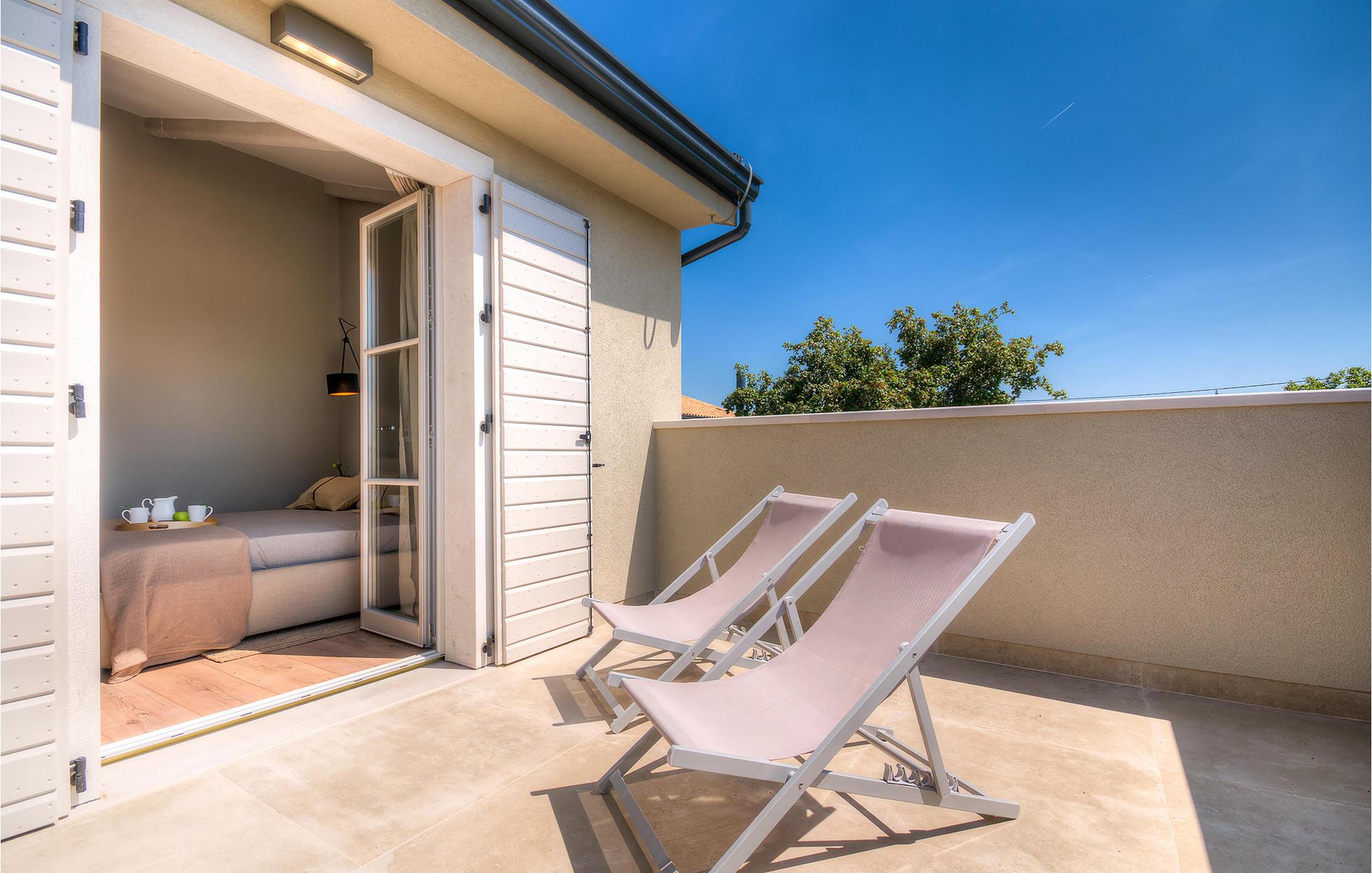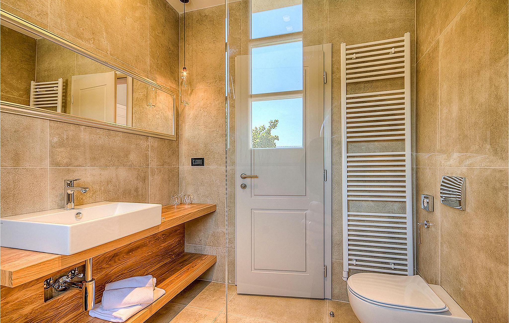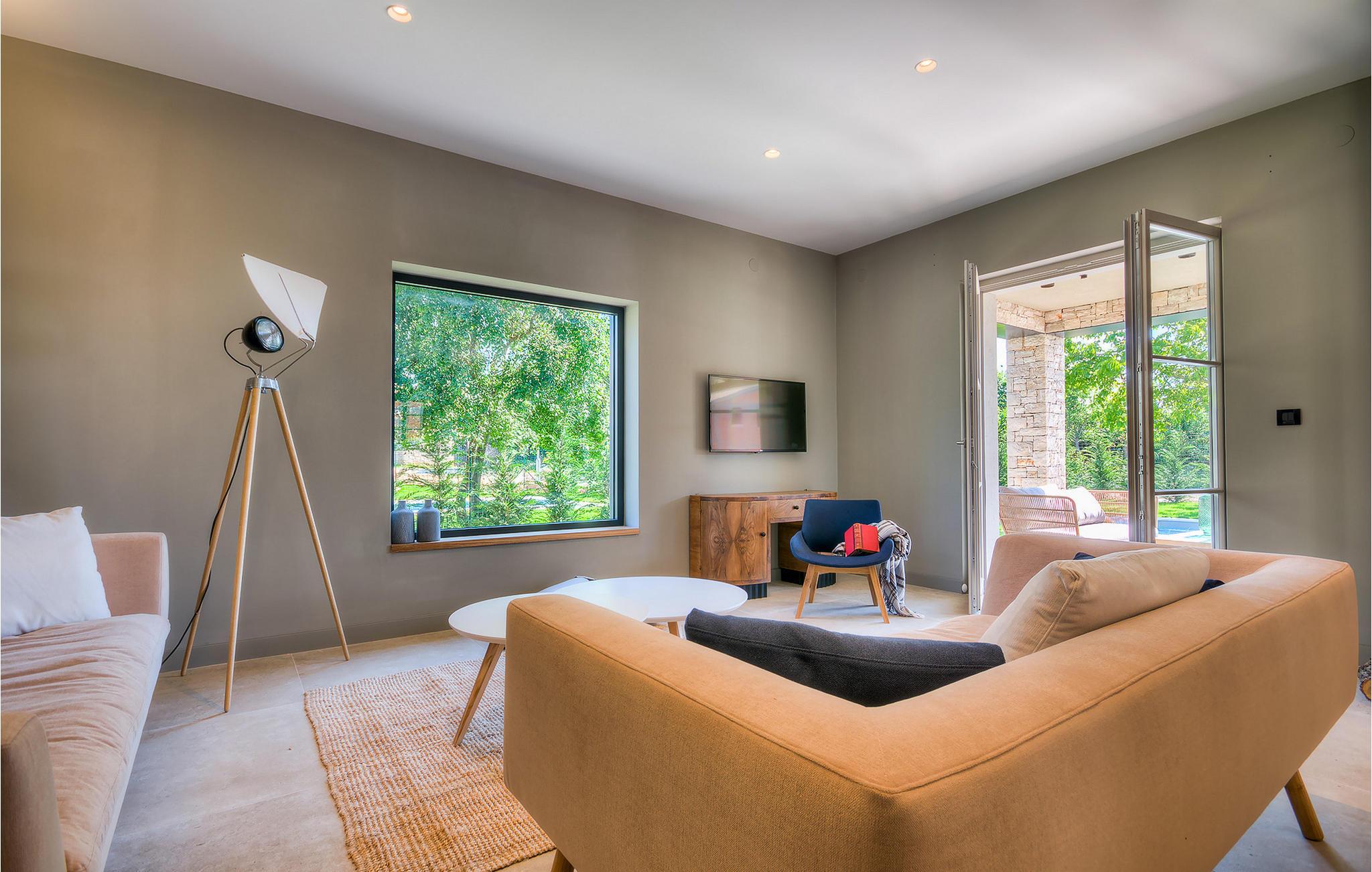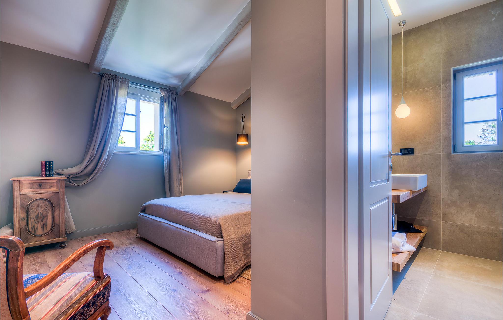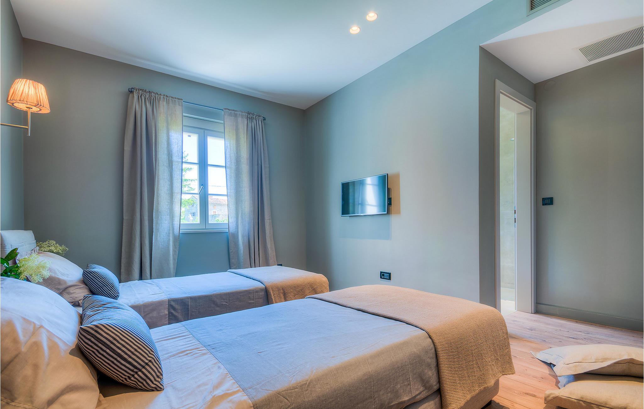 Hvis du ønsker at opleve noget særligt, nedsænket dybt i det billedskønne Istriske landskab i komfort og stil, kunne den dejlige Villa Mia ikke være et bedre valg. Beliggende i en smukt velholdt rummelig have med velplejede græsplæner med cypresser og en indbydende swimmingpool med solterrasse, kan denne pragtfulde ejendom ikke undgå at imponere. De fritlagte stenvægge, smukke skodder og en hyggelig veranda med indbygget grill, al fresco spisestue og loungeområde giver et dejligt førstehåndsindtryk, mens interiøret mere end lever op til dets regning. Udsøgt designet overalt med en blanding af højkvalitets moderne og vintage møbler, iøjnefaldende belysning og store franske vinduer, der holder rummene særligt lyse og luftige, huset har en varm, afslappende følelse, der omfatter både traditionel og moderne smag. I stueetagen dominerer et smukt, aflangt rum opdelt i opholds-, spise- og køkkenområder med en elegant designet pejs og en behagelig sofa til at synke ned i og udveksle historier om dagens aktiviteter. Et af de fire udsøgt møblerede soveværelser ligger i stueetagen, mens de tre andre er fordelt på øverste etage, og alle nyder godt af at have et fladskærms-tv og et smukt indrettet badeværelse. Der er også en smuk balkon på første sal, hvorfra du kan nyde den fantastiske udsigt over landskabet. Villa Mia kan varmt anbefales, ikke kun som en base for at opdage Istriens indiskutable charme, men også for familier, der ønsker at have det sjovt og slappe af i luksuriøse omgivelser. Beliggende lige mellem de tre charmerende små middelalderbyer Žminj, Svetvincenat og Kanfanar, kunne denne ejendom ikke være bedre designet og placeret til en ferie, der kombinerer dovne dage med dolce far niente med sightseeing i nogle af de smukkeste områder i Istrien. De maleriske middelalderbyer på en bakketop, traditionelle landlige landsbyer, hvor tiden har stået stille, og landskaber af uovertruffen skønhed er ideelle til naturskønne køreture, cykling og gåture. Lækkert traditionelt køkken og vin i verdensklasse, som denne region er kendt for, tilføjer de sidste ingredienser til en mindeværdig ferie. Uanset hvor du går, vil lokalbefolkningen tilbyde en vidunderlig varm velkomst i denne fascinerende region. Du kan også købe dagligvarer direkte fra de lokale producenter. Og hvis du er i humør til en anderledes slags action, er det krystalklare Adriaterhav med sine smukke strande, samt de travle turist-hot spots kun en kort køretur væk.