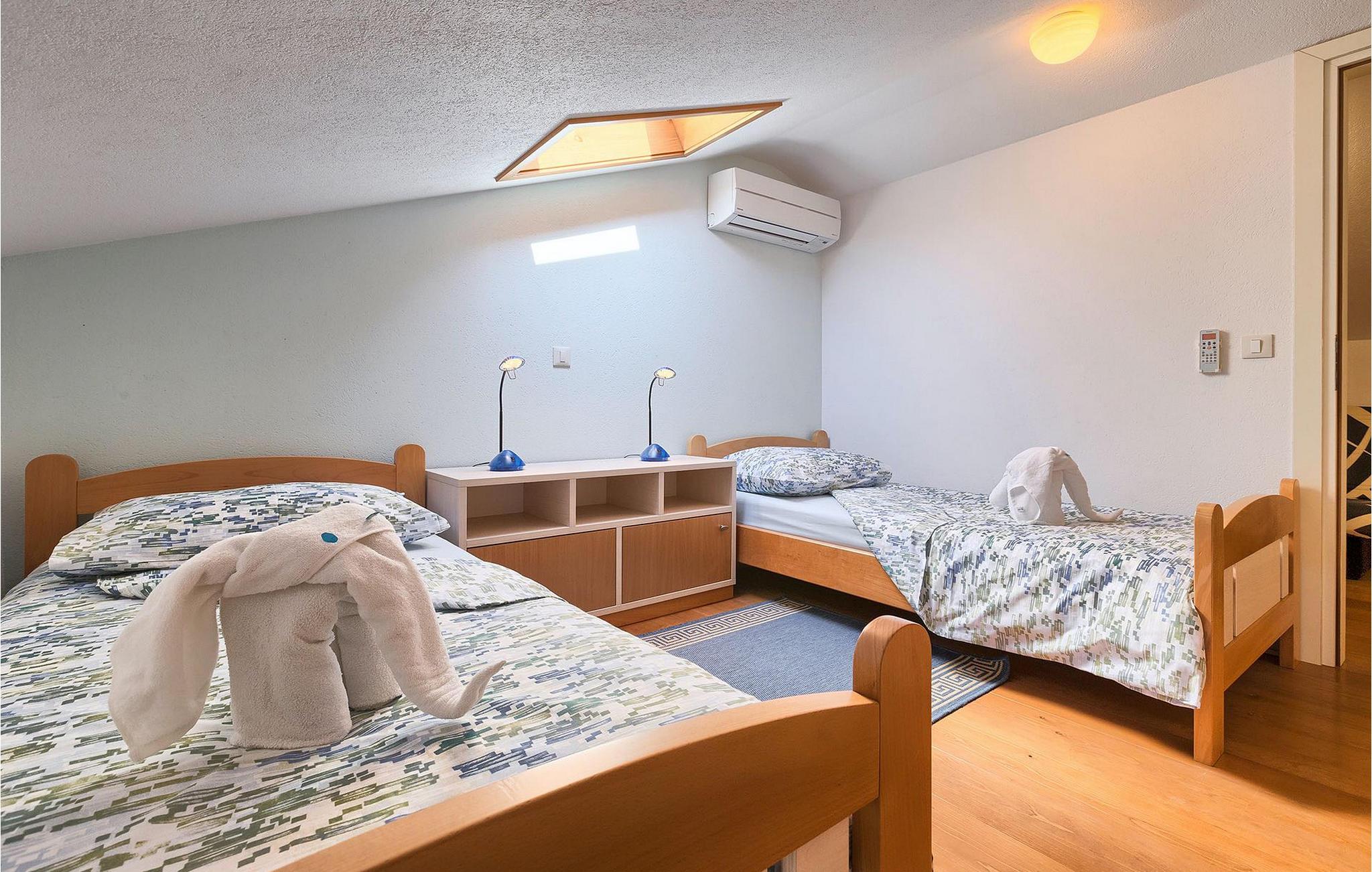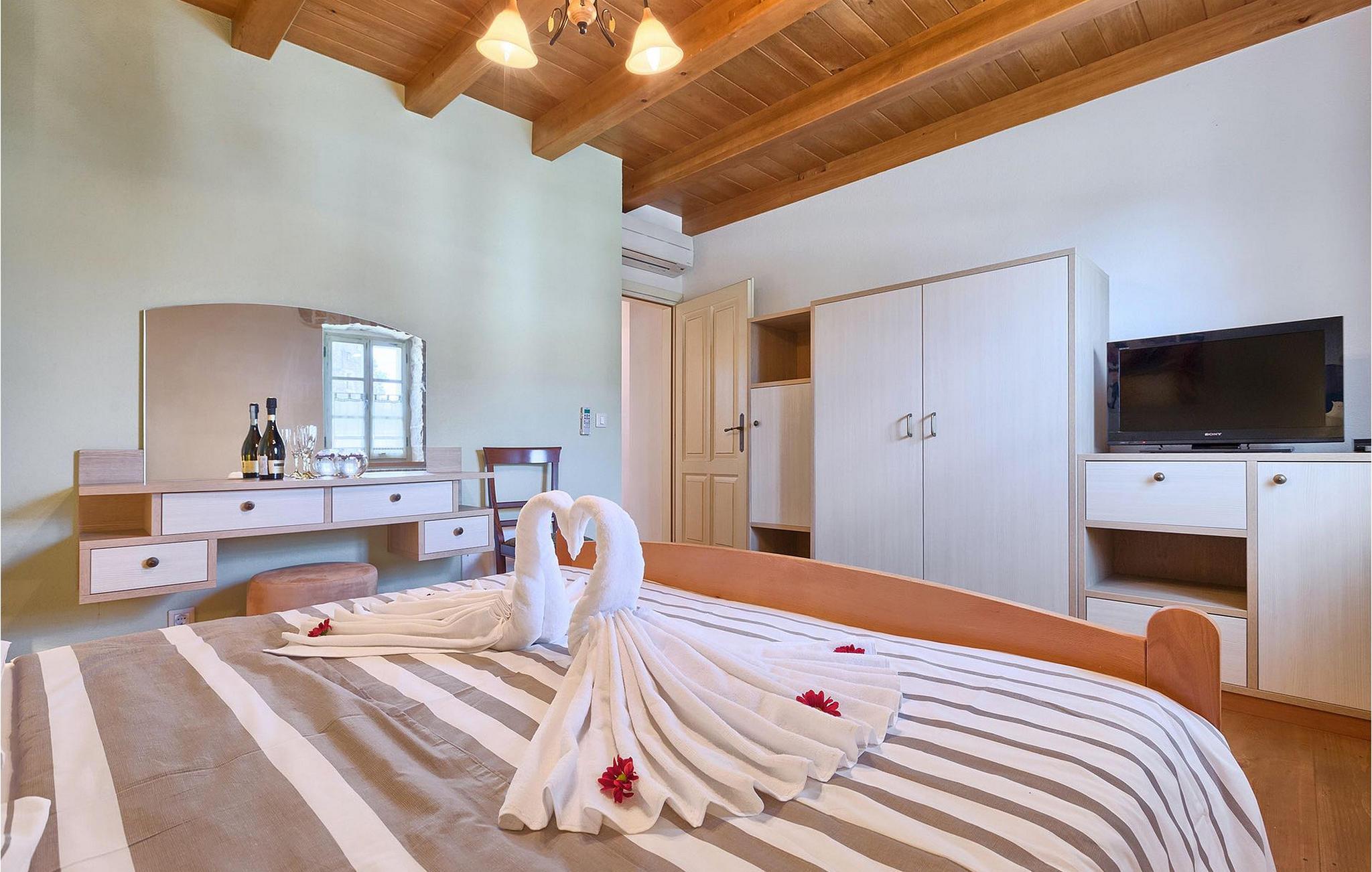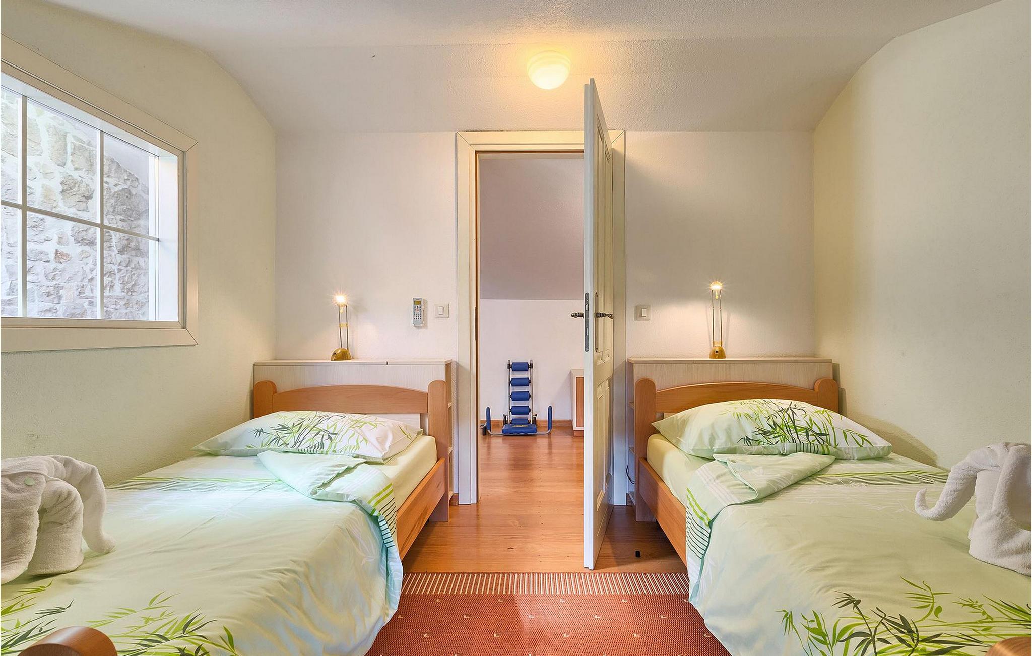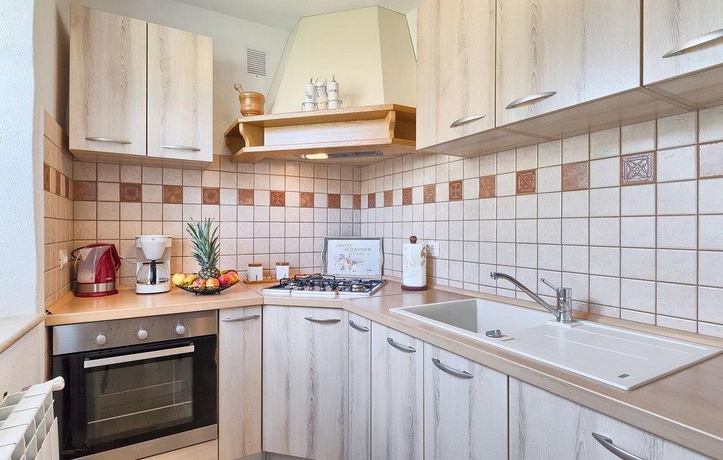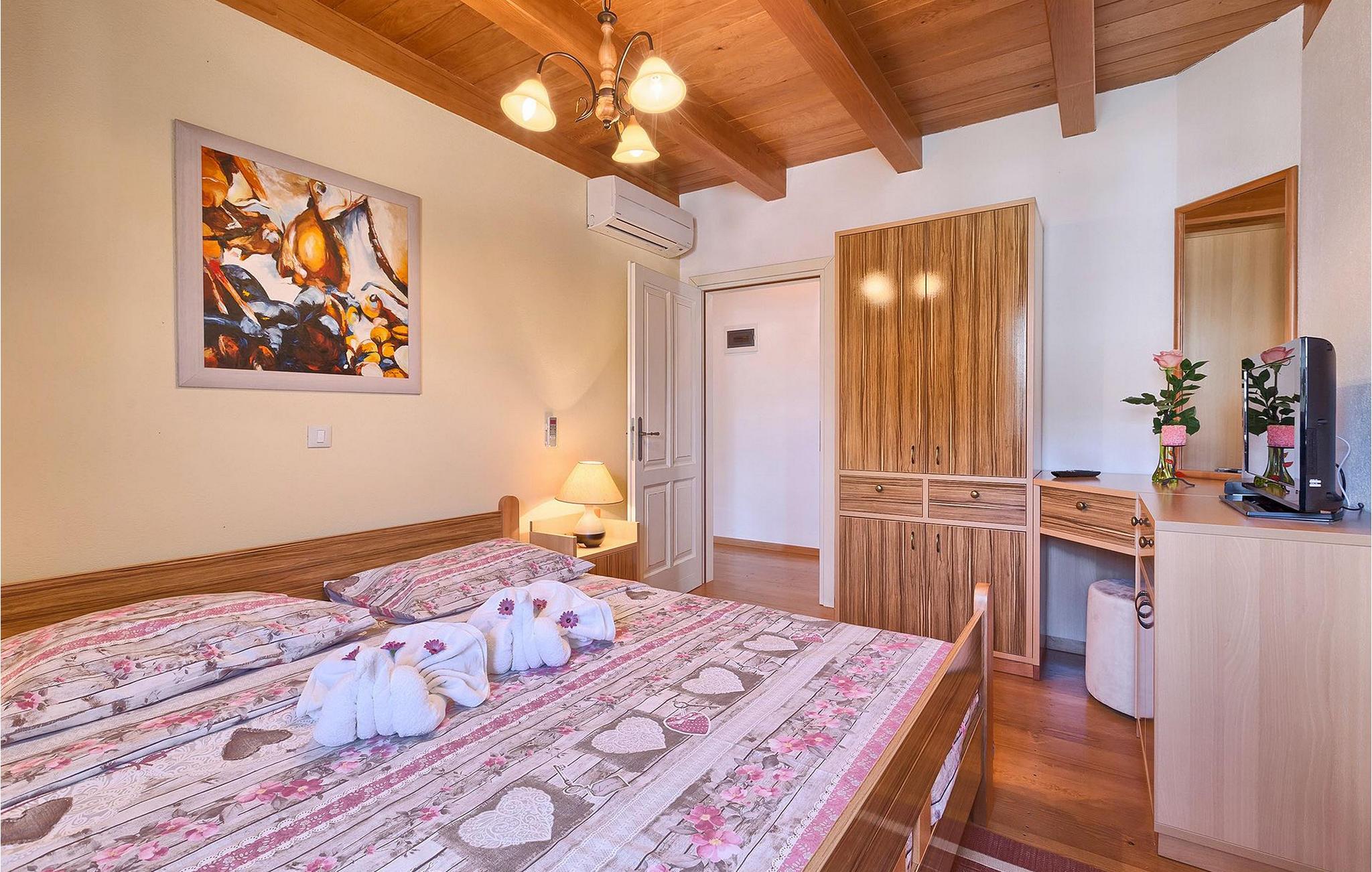 Denne charmerende ejendom kan rumme op til 8 personer i 4 dejligt indrettede soveværelser (2 med dobbeltsenge og 2 med 2 enkeltsenge) og en ekstra sovesofa på øverste etage. Alle værelser har aircondition og nyudstyrede med LCD-tv. Stuen er rummelig og hyggelig og byder på komfort og afslapning. Opholdsstuen består af en komfortabel stue med sofa, spiseplads og et veludstyret køkken. Foran villaen er der en skøn overdækket terrasse, hvor du finder et stort spisebord til spisning under åben himmel. På den anden side af gaden, flere skridt væk, er en adskilt muret og indhegnet gårdhave med en swimmingpool, hvor du kan forfriske dig på varme sommerdage. Her finder du et fuldt udstyret sommerkøkken med stort spisebord samt grill. På ejendommen er der en børnegynge og bordtennis til din og dit barns underholdning. Denne ejendom er beliggende i den centrale del af halvøen Istrien, nær den lille by Kanfanar, mere præcist landsbyen Bubani. Den gamle arkitektur i Kanfanar og de omkringliggende landsbyer er velbevaret, og oliven dominerer dette område med et varmt middelhavsklima. Kanfanar og dets omkringliggende landskab er velkendt, ikke kun for sin historiske og kulturelle arv, men for fremragende ægte istriske køkken. Istrien er et unikt og fortryllet sted, der har budt velkommen til besøgende og bosættere fra alle dele af verden, så længe vi har nedtegnet historie. Byen Pula med dets romerske amfiteater og Brijuni nationalpark med en 18-hullers golfbane ligger kun 20 minutters kørsel derfra. Gode restauranter og taverner kan findes på kun en kort køretur i alle retninger. Det er et fantastisk sted at nyde maden, historien og trods alt at slappe af. Bil anbefales.
