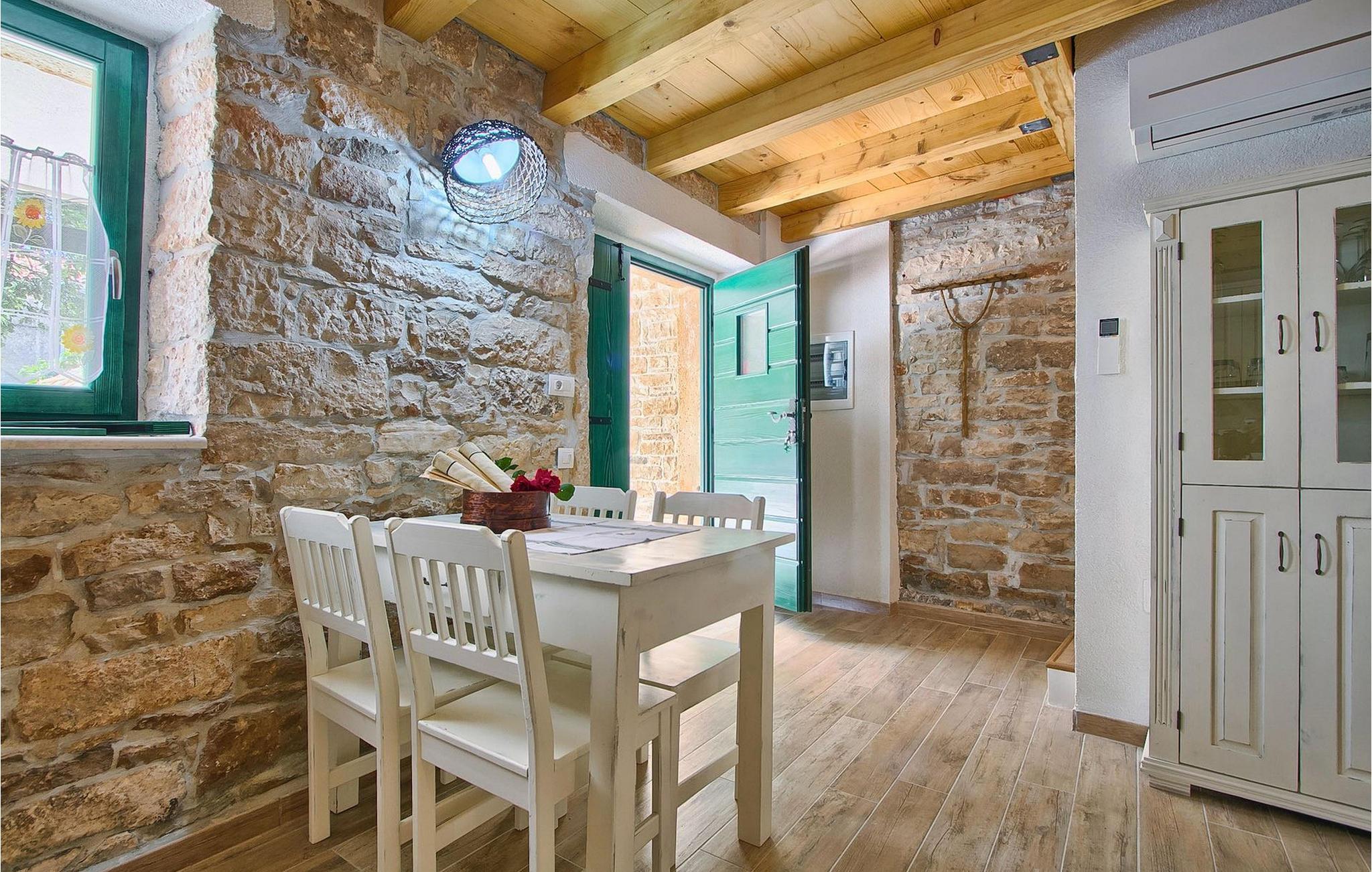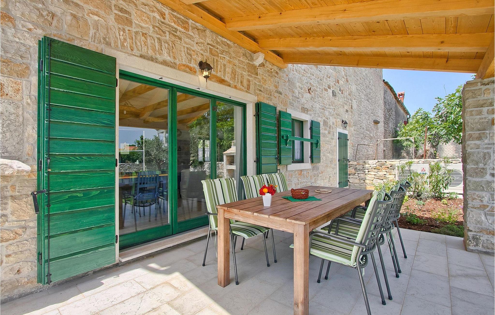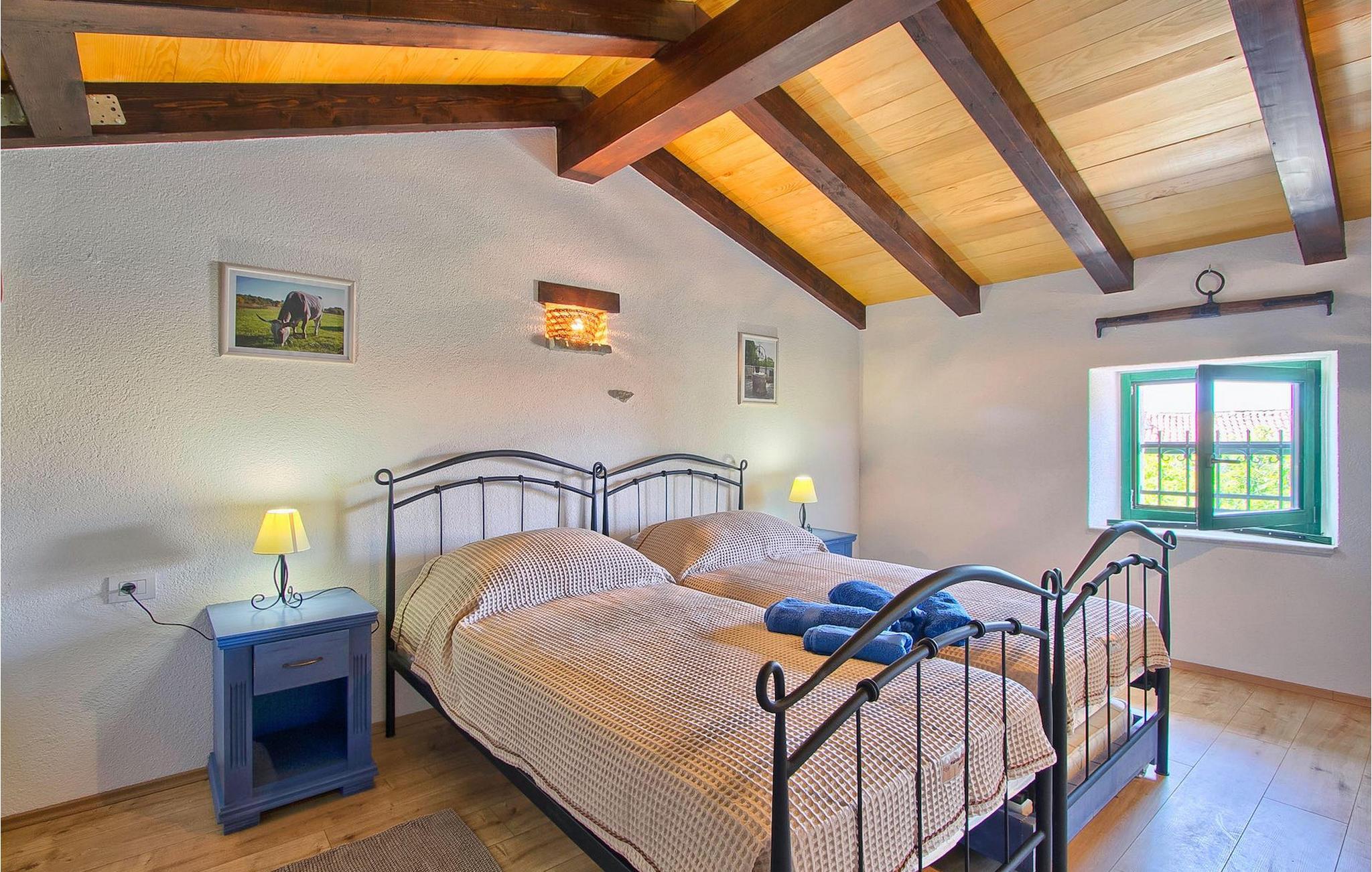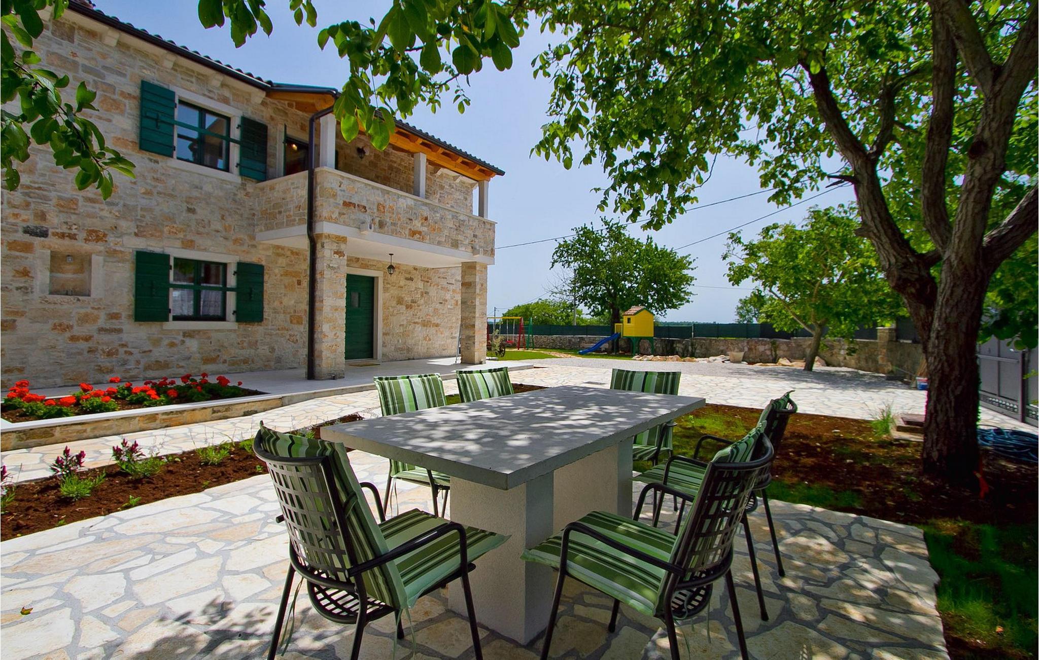 Die Villa Soricevi Dvori besteht aus zwei Doppelhaushälften, die zusammen vermietet werden. Das Haus befindet sich auf einem 1000 m2 großen Grundstück und bietet Platz für bis zu 12 Personen (4+2 pro Haus). Die Villa verfügt über einen großen Garten mit zwei Tischen für 6 Personen, die zum Essen im Freien zusammengestellt werden können, sowie zwei Außenkaminen. Das Highlight des Gartens ist der große private Pool mit Sonnenschirmen und Sonnenliegen - perfekt zum Entspannen! Wenn Sie sportlich aktiv sein möchten, gibt es im Garten ein Volleyball- und Badmintonfeld. Kinder haben ihren eigenen Bereich auf dem Spielplatz mit Schaukeln und Rutsche. Wenn Sie die Umgebung auf zwei Rädern erkunden möchten, stehen Ihnen 8 Fahrräder zur Verfügung. Es gibt auch ein separates Gebäude im Garten, wo sich der Wellnessbereich befindet. Es besteht aus einem schönen Innenjacuzzi, einer Dusche, Liegestühlen und einer Finnischen Sauna. Was den Innenraum betrifft, so sind alle Zimmer klimatisiert, mit Möbeln im Shabby-Chic-Stil eingerichtet und mit allen Haushaltsgeräten ausgestattet. Im Erdgeschoss verfügt jedes der Doppelhaushälften über eine Küche, ein Esszimmer mit einem Tisch für 6 Personen und ein schönes Wohnzimmer mit Kamin. Es gibt auch eine separate Toilette in jedem Teil. Im ersten Haus führt die Innentreppe in den ersten und zweiten Stock, wo sich zwei Schlafzimmer befinden. Im ersten Stock finden Sie ein Schlafzimmer mit schöner privater Terrasse. Die Innentreppe im zweiten Haus führt in den ersten Stock, wo sich zwei Schlafzimmer befinden. Vom Korridor im ersten Stock haben Sie Zugang zur überdachten Terrasse. Alle 4 Schlafzimmer verfügen über ein eigenes Badezimmer mit Dusche, einen Komfort, den Gäste gerne genießen. Wenn Sie von einem idyllischen Familienurlaub in Istrien träumen, sind Sie hier genau richtig.Villa Soricevi Dvori befindet sich in Barat, einem Dorf an den Hängen des Lim-Tals und nahe Kanafanar. Umgeben von Feldern, Olivenhainen, Weinbergen auf der typischen roten Erde, und Eichenwäldern. Barat ist der ideale Ort für einen Urlaub. Auf einer Höhe von 290 m, fernab von geschäftigem Treiben, bietet es saubere Luft und Ruhe. Barat liegt auf der südwestlichen Seite der Halbinsel, in der Nähe der istrischen Y Autobahn, auf der Sie in weniger als einer halben Stunde alle wichtigen Ziele in Istrien erreichen- Pula, Rovinj, Porec und andere Städte. Nahe Barat liegt Dvigrad, die Ruine einer verlassenen mittelalterlichen Stadt.
