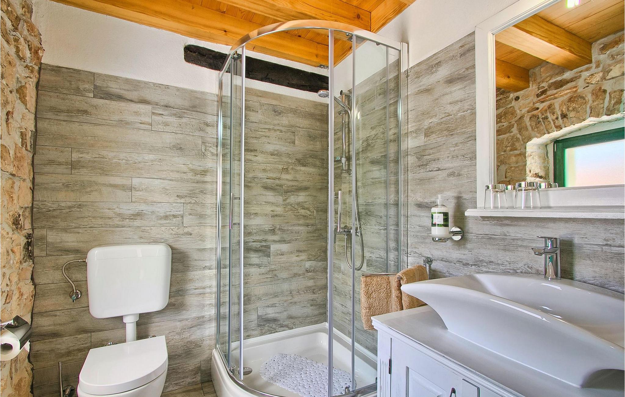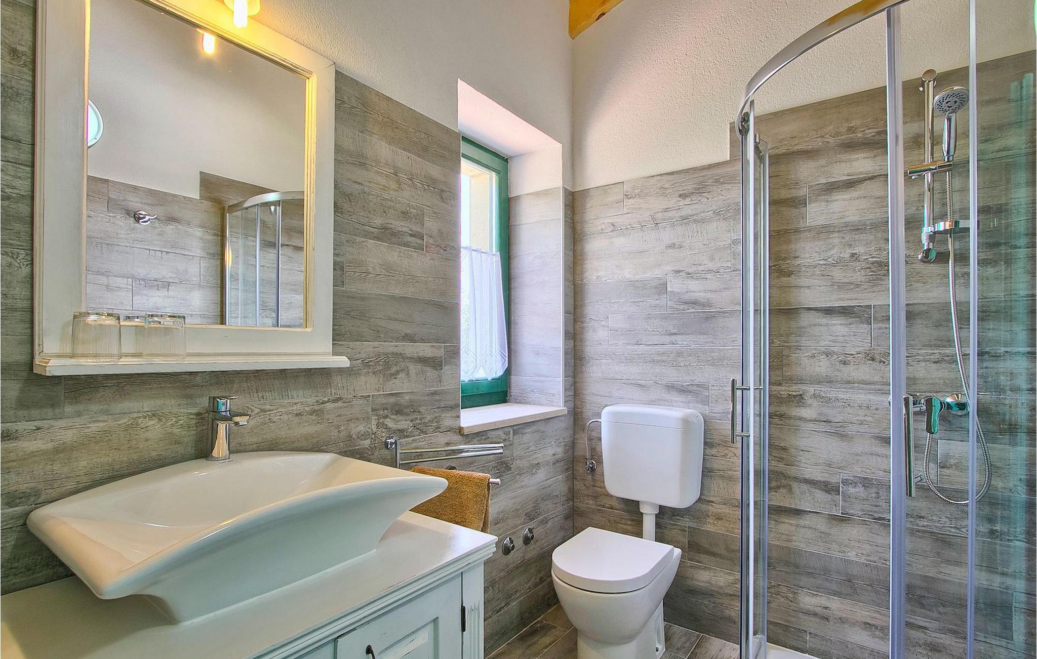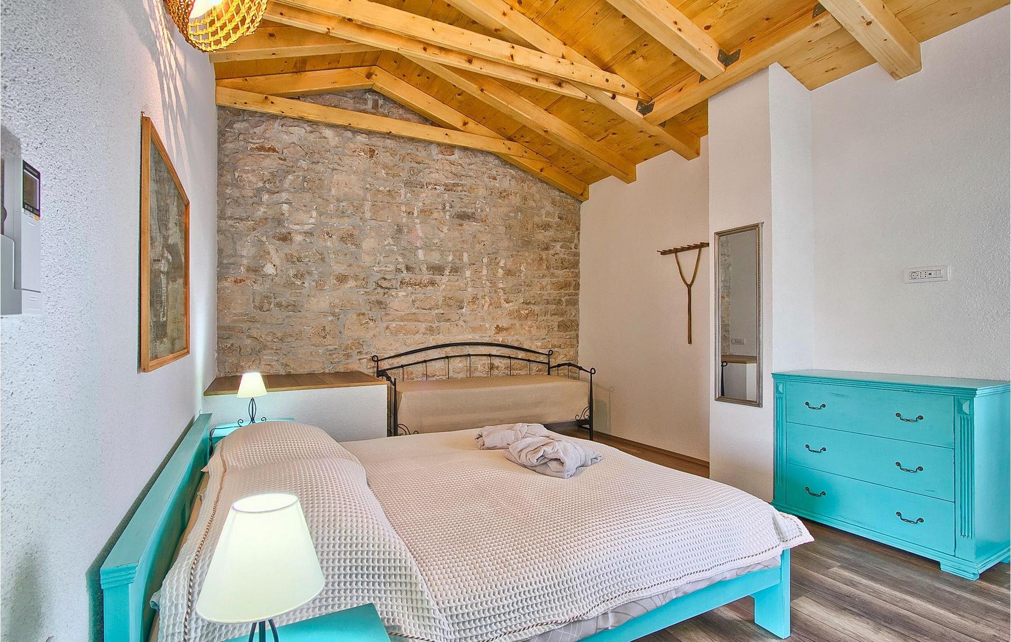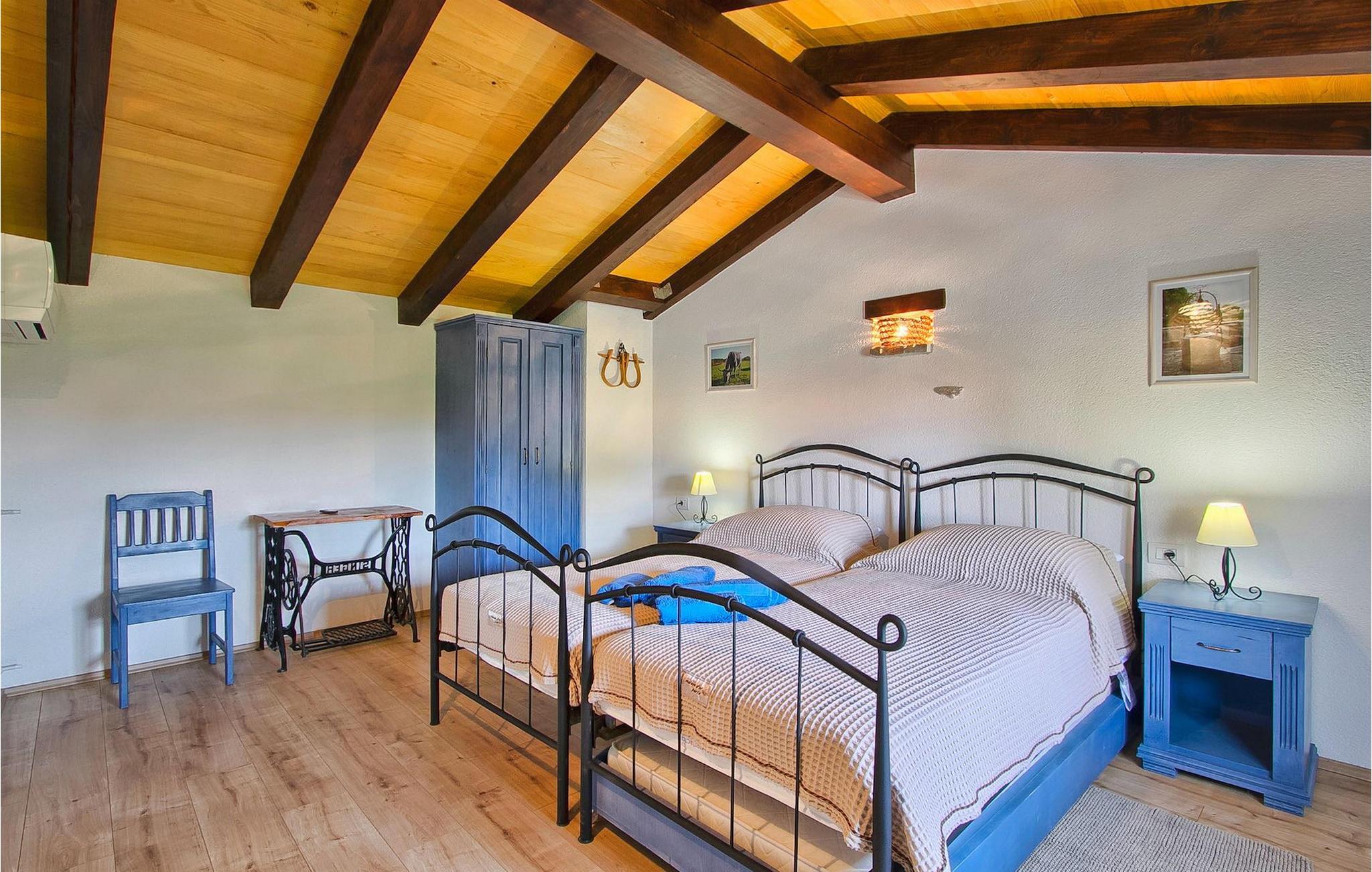 Die Villa Soricevi Dvori besteht aus zwei Doppelhaushälften, die zusammen vermietet werden. Das Haus befindet sich auf einem 1000 m2 großen Grundstück und bietet Platz für bis zu 12 Personen (4+2 pro Haus). Die Villa verfügt über einen großen Garten mit zwei Tischen für 6 Personen, die zum Essen im Freien zusammengestellt werden können, sowie zwei Außenkaminen. Das Highlight des Gartens ist der große private Pool mit Sonnenschirmen und Sonnenliegen - perfekt zum Entspannen! Wenn Sie sportlich aktiv sein möchten, gibt es im Garten ein Volleyball- und Badmintonfeld. Kinder haben ihren eigenen Bereich auf dem Spielplatz mit Schaukeln und Rutsche. Wenn Sie die Umgebung auf zwei Rädern erkunden möchten, stehen Ihnen 8 Fahrräder zur Verfügung. Es gibt auch ein separates Gebäude im Garten, wo sich der Wellnessbereich befindet. Es besteht aus einem schönen Innenjacuzzi, einer Dusche, Liegestühlen und einer Finnischen Sauna. Was den Innenraum betrifft, so sind alle Zimmer klimatisiert, mit Möbeln im Shabby-Chic-Stil eingerichtet und mit allen Haushaltsgeräten ausgestattet. Im Erdgeschoss verfügt jedes der Doppelhaushälften über eine Küche, ein Esszimmer mit einem Tisch für 6 Personen und ein schönes Wohnzimmer mit Kamin. Es gibt auch eine separate Toilette in jedem Teil. Im ersten Haus führt die Innentreppe in den ersten und zweiten Stock, wo sich zwei Schlafzimmer befinden. Im ersten Stock finden Sie ein Schlafzimmer mit schöner privater Terrasse. Die Innentreppe im zweiten Haus führt in den ersten Stock, wo sich zwei Schlafzimmer befinden. Vom Korridor im ersten Stock haben Sie Zugang zur überdachten Terrasse. Alle 4 Schlafzimmer verfügen über ein eigenes Badezimmer mit Dusche, einen Komfort, den Gäste gerne genießen. Wenn Sie von einem idyllischen Familienurlaub in Istrien träumen, sind Sie hier genau richtig.Villa Soricevi Dvori befindet sich in Barat, einem Dorf an den Hängen des Lim-Tals und nahe Kanafanar. Umgeben von Feldern, Olivenhainen, Weinbergen auf der typischen roten Erde, und Eichenwäldern. Barat ist der ideale Ort für einen Urlaub. Auf einer Höhe von 290 m, fernab von geschäftigem Treiben, bietet es saubere Luft und Ruhe. Barat liegt auf der südwestlichen Seite der Halbinsel, in der Nähe der istrischen Y Autobahn, auf der Sie in weniger als einer halben Stunde alle wichtigen Ziele in Istrien erreichen- Pula, Rovinj, Porec und andere Städte. Nahe Barat liegt Dvigrad, die Ruine einer verlassenen mittelalterlichen Stadt.