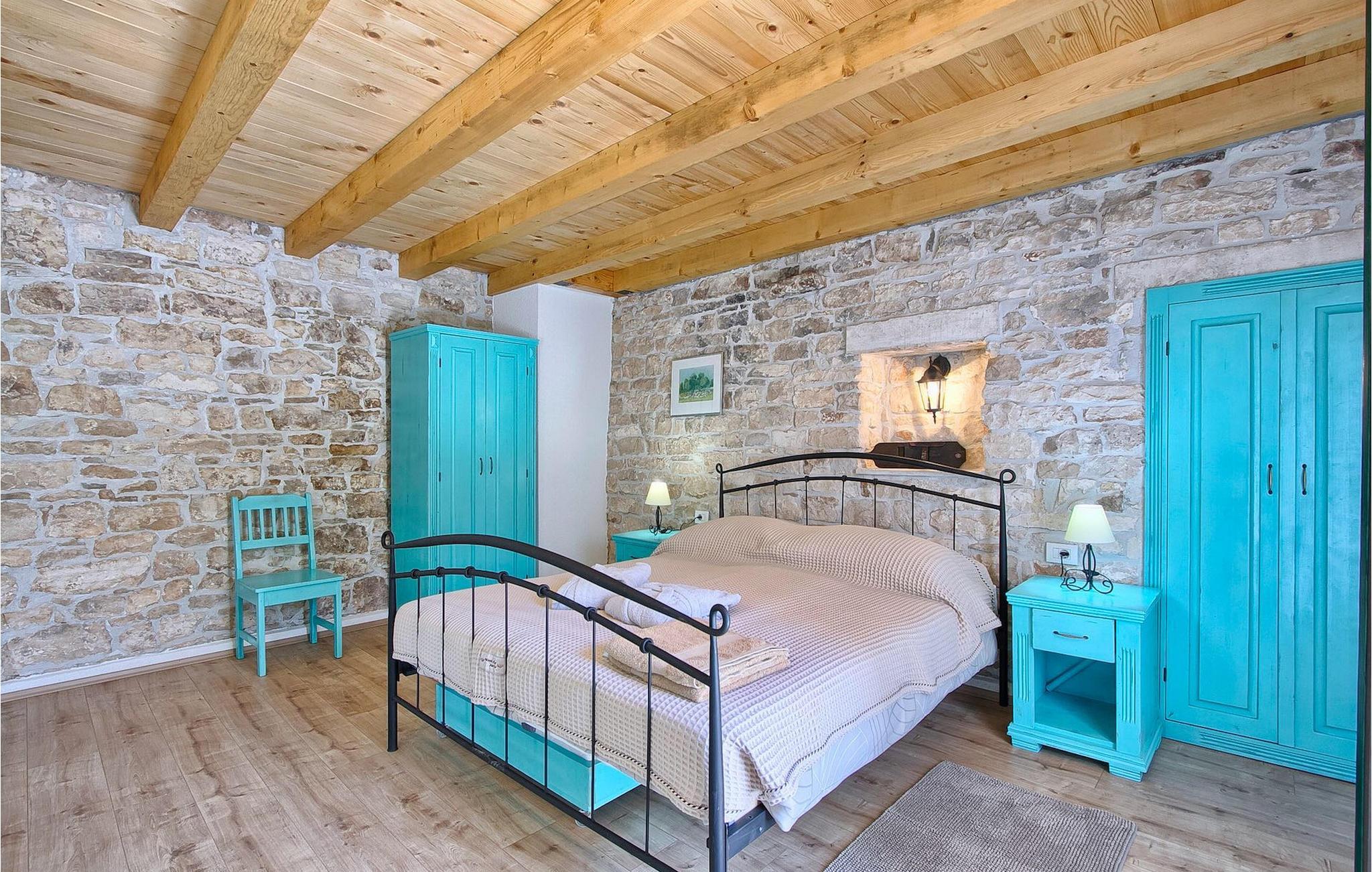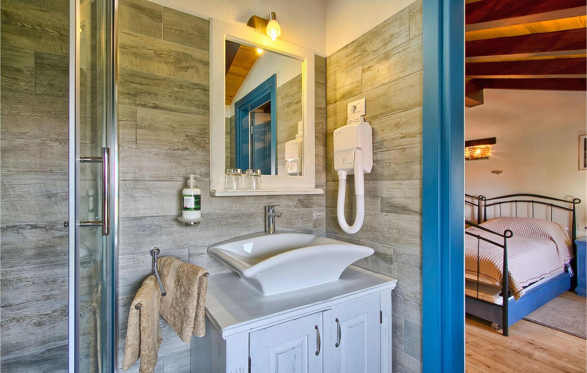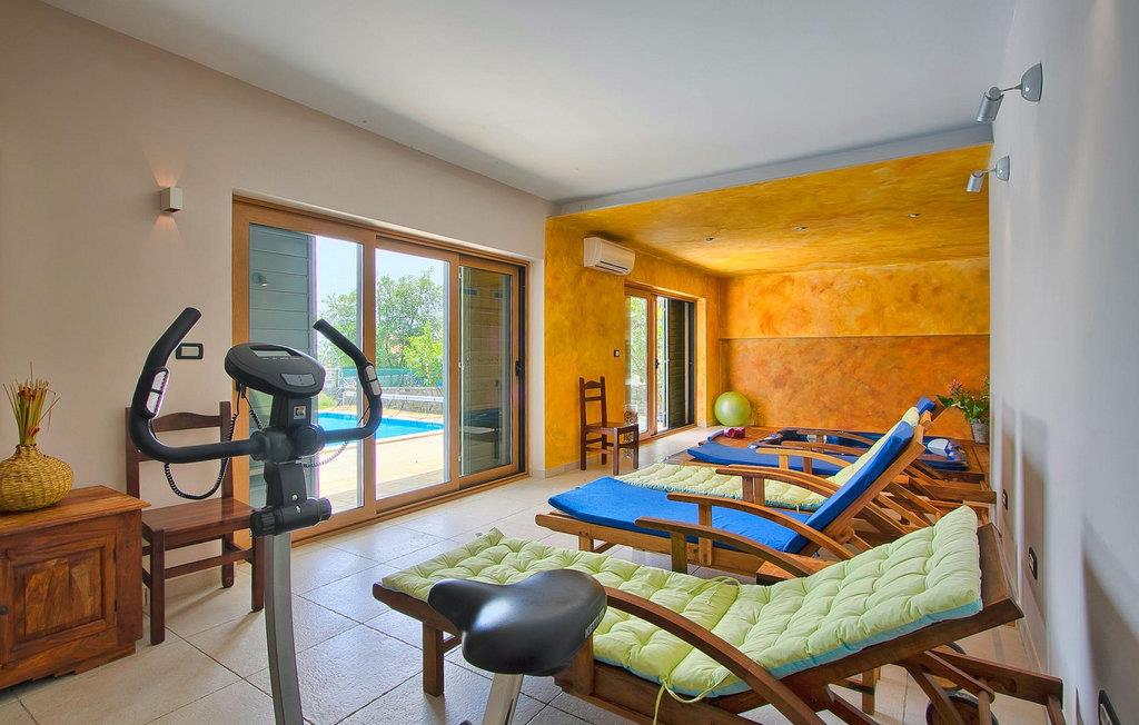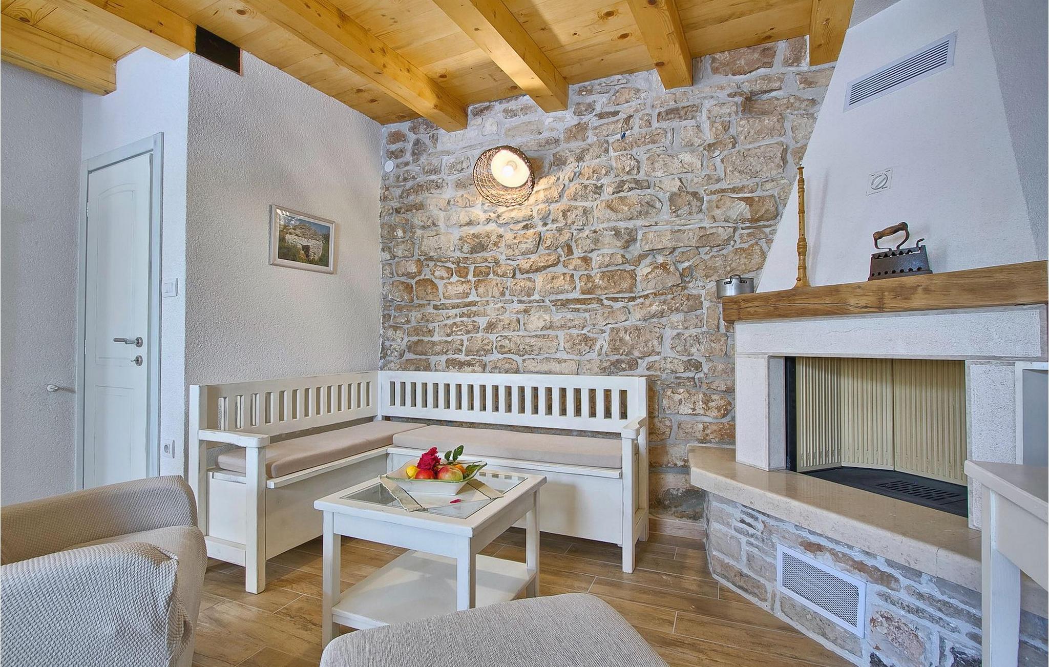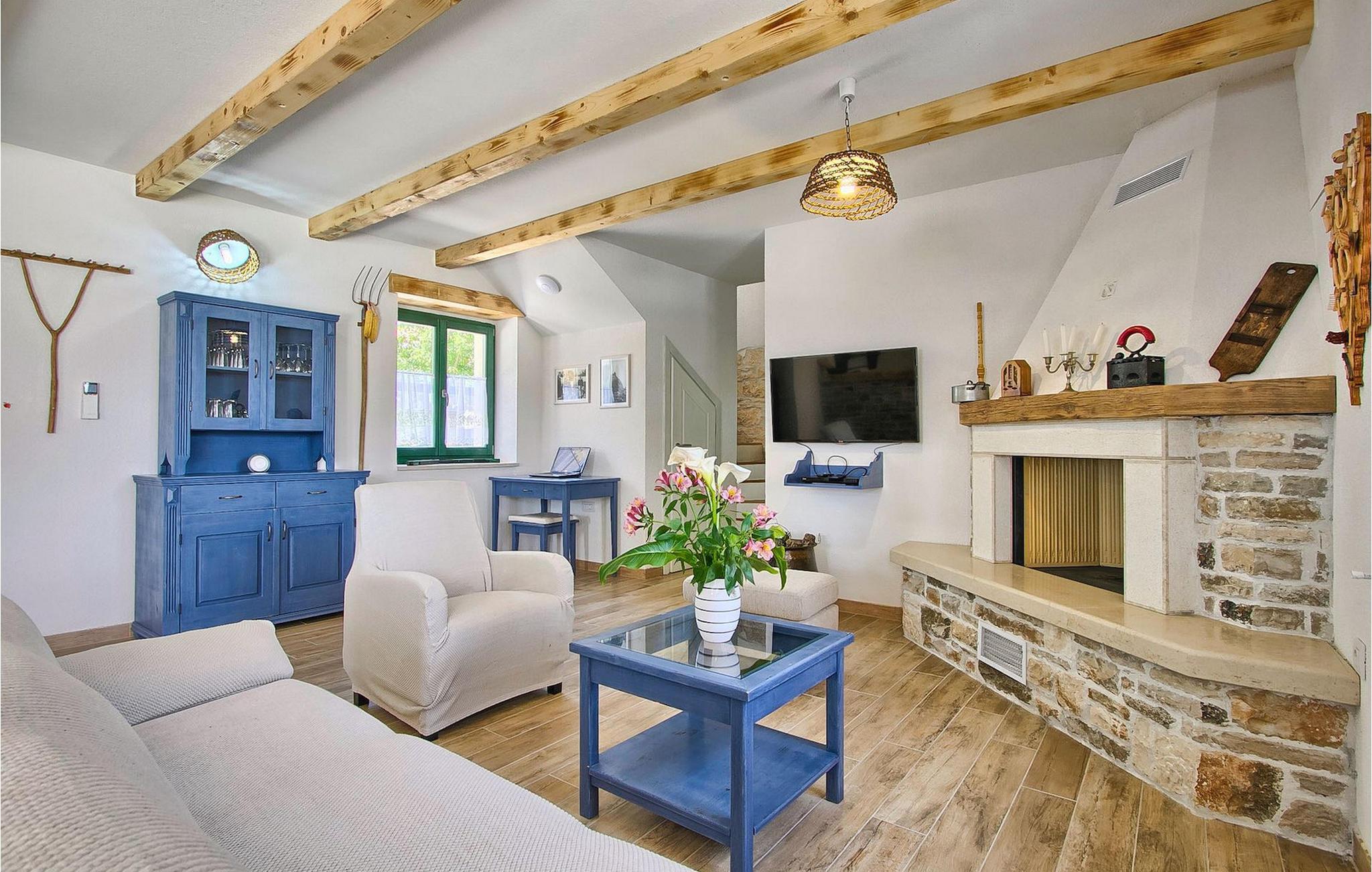 Die Villa Soricevi Dvori besteht aus zwei Doppelhaushälften, die zusammen vermietet werden. Das Haus befindet sich auf einem 1000 m2 großen Grundstück und bietet Platz für bis zu 12 Personen (4+2 pro Haus). Die Villa verfügt über einen großen Garten mit zwei Tischen für 6 Personen, die zum Essen im Freien zusammengestellt werden können, sowie zwei Außenkaminen. Das Highlight des Gartens ist der große private Pool mit Sonnenschirmen und Sonnenliegen - perfekt zum Entspannen! Wenn Sie sportlich aktiv sein möchten, gibt es im Garten ein Volleyball- und Badmintonfeld. Kinder haben ihren eigenen Bereich auf dem Spielplatz mit Schaukeln und Rutsche. Wenn Sie die Umgebung auf zwei Rädern erkunden möchten, stehen Ihnen 8 Fahrräder zur Verfügung. Es gibt auch ein separates Gebäude im Garten, wo sich der Wellnessbereich befindet. Es besteht aus einem schönen Innenjacuzzi, einer Dusche, Liegestühlen und einer Finnischen Sauna. Was den Innenraum betrifft, so sind alle Zimmer klimatisiert, mit Möbeln im Shabby-Chic-Stil eingerichtet und mit allen Haushaltsgeräten ausgestattet. Im Erdgeschoss verfügt jedes der Doppelhaushälften über eine Küche, ein Esszimmer mit einem Tisch für 6 Personen und ein schönes Wohnzimmer mit Kamin. Es gibt auch eine separate Toilette in jedem Teil. Im ersten Haus führt die Innentreppe in den ersten und zweiten Stock, wo sich zwei Schlafzimmer befinden. Im ersten Stock finden Sie ein Schlafzimmer mit schöner privater Terrasse. Die Innentreppe im zweiten Haus führt in den ersten Stock, wo sich zwei Schlafzimmer befinden. Vom Korridor im ersten Stock haben Sie Zugang zur überdachten Terrasse. Alle 4 Schlafzimmer verfügen über ein eigenes Badezimmer mit Dusche, einen Komfort, den Gäste gerne genießen. Wenn Sie von einem idyllischen Familienurlaub in Istrien träumen, sind Sie hier genau richtig.Villa Soricevi Dvori befindet sich in Barat, einem Dorf an den Hängen des Lim-Tals und nahe Kanafanar. Umgeben von Feldern, Olivenhainen, Weinbergen auf der typischen roten Erde, und Eichenwäldern. Barat ist der ideale Ort für einen Urlaub. Auf einer Höhe von 290 m, fernab von geschäftigem Treiben, bietet es saubere Luft und Ruhe. Barat liegt auf der südwestlichen Seite der Halbinsel, in der Nähe der istrischen Y Autobahn, auf der Sie in weniger als einer halben Stunde alle wichtigen Ziele in Istrien erreichen- Pula, Rovinj, Porec und andere Städte. Nahe Barat liegt Dvigrad, die Ruine einer verlassenen mittelalterlichen Stadt.
