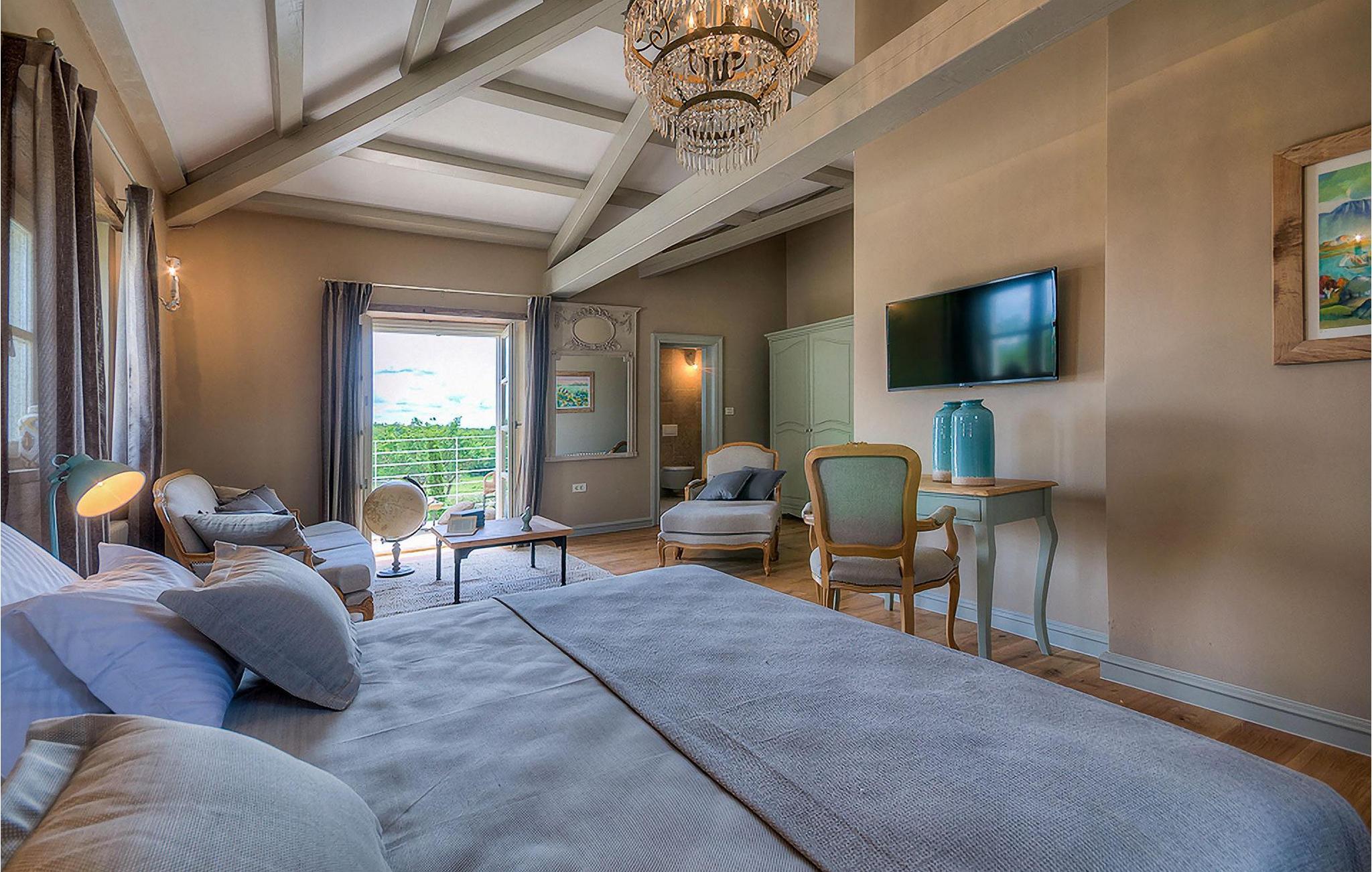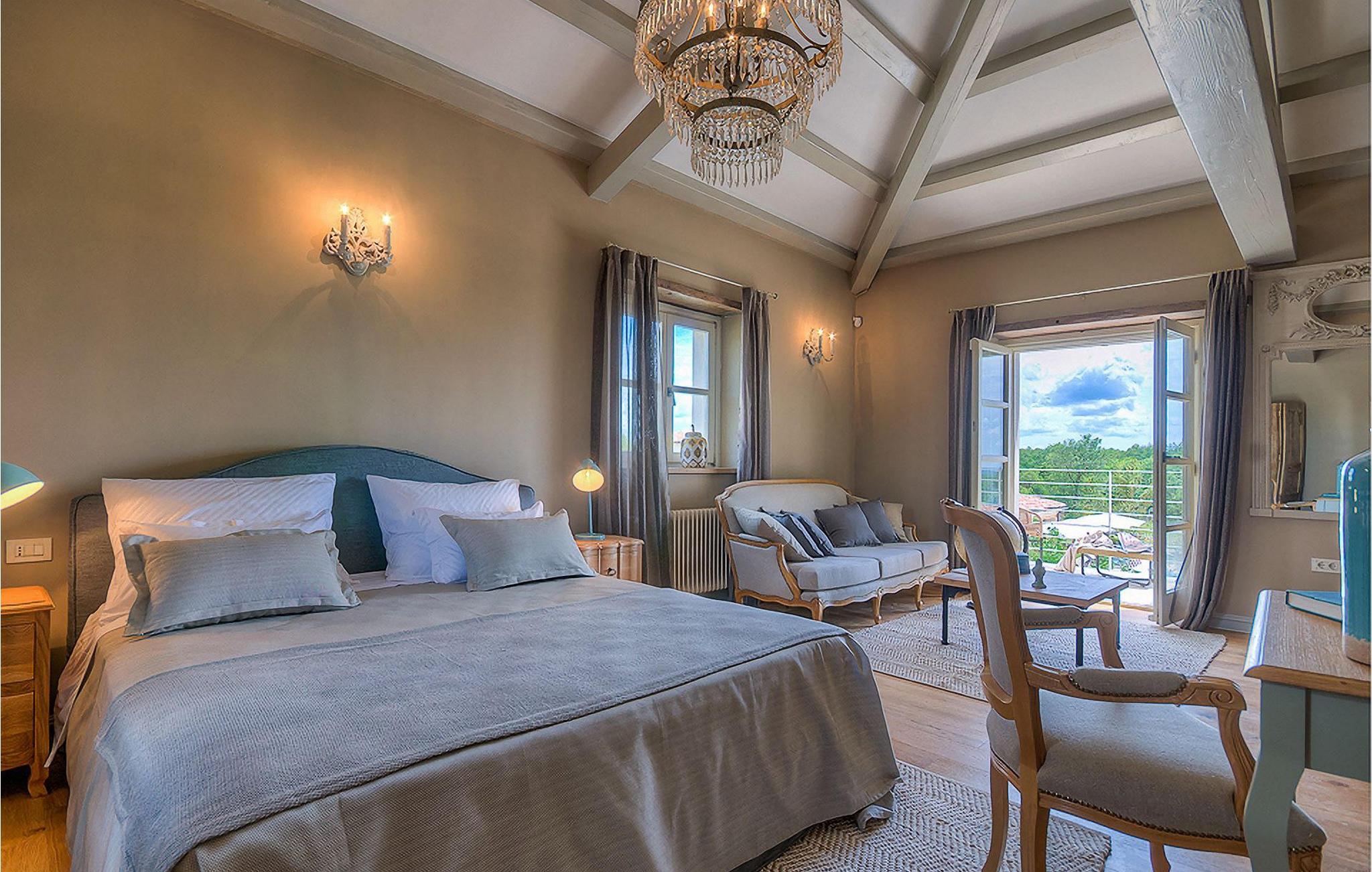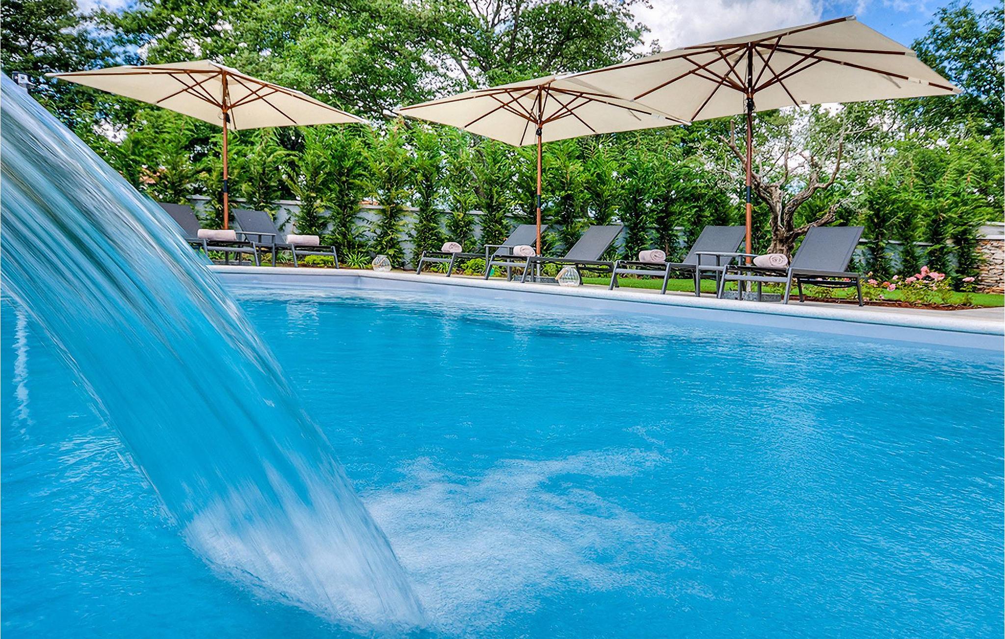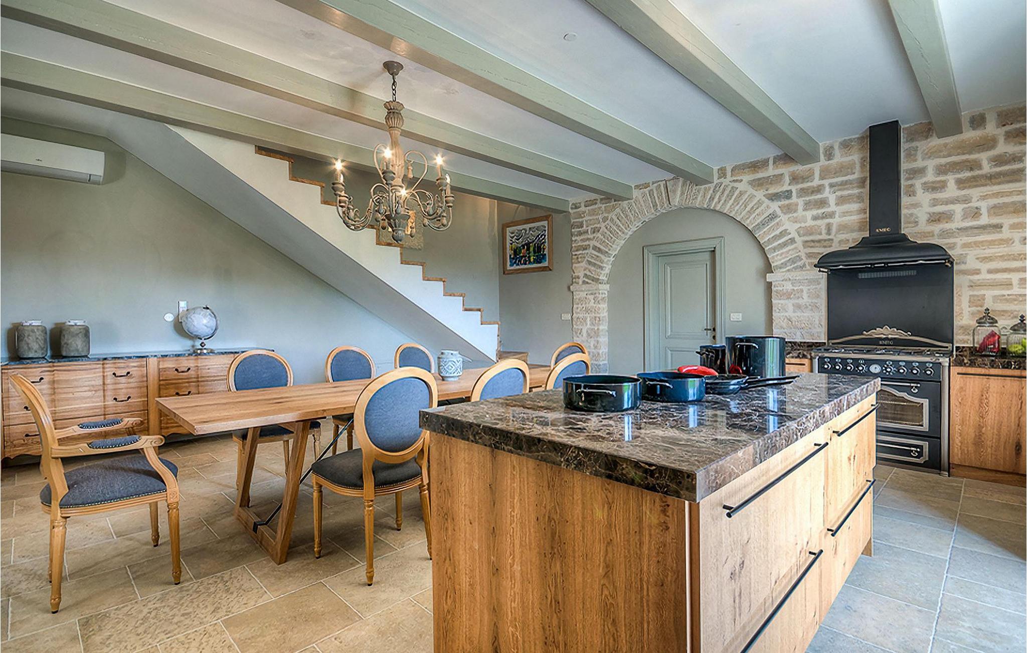 Elegant, stilvoll und hervorragend gelegen, inmitten der pittoresken Landschaft Istriens und doch noch in der Nähe von sonnigen Stränden und lebendigen Küstenstädten, bietet die Villa Elena luxuriöse Unterkunft, in der Sie jede Minute Ihres Urlaubs entspannt genießen können. Das Erdgeschoss ist ganz dem aufwändigen Verweilen gewidmet. Der herrliche großzügig ausgelegte Raum ist durch einen Steinbogen in Wohn-, Ess- und Kochbereiche verteilt, mit riesigen Fenstertüren, die eine Fülle an warmem istrischem Licht hineinbringen. Natursteinwände, Holzbalkendecken und der herrliche offene Kamin schaffen eine warme, gemütliche Atmosphäre, während die Mischung aus modernen und Vintage-Möbeln, sowie die exquisite Ausstattung Sie mit erstklassigem Komfort versorgen. Drei Schlafzimmer sind über die obere Etage verteilt, während das vierte im Erdgeschoss direkt auf den verlockenden Privatpool öffnen, der wunderbare Ort zum Erholen und Entspannen. Die hübsche, überdachte Veranda mit dem authentischen eingebauten Grill und einem großen Esstisch ist eine attraktive Zuflucht von der Sommerhitze, sowie der perfekte Ort für genussvolle Mahlzeiten im Freien.