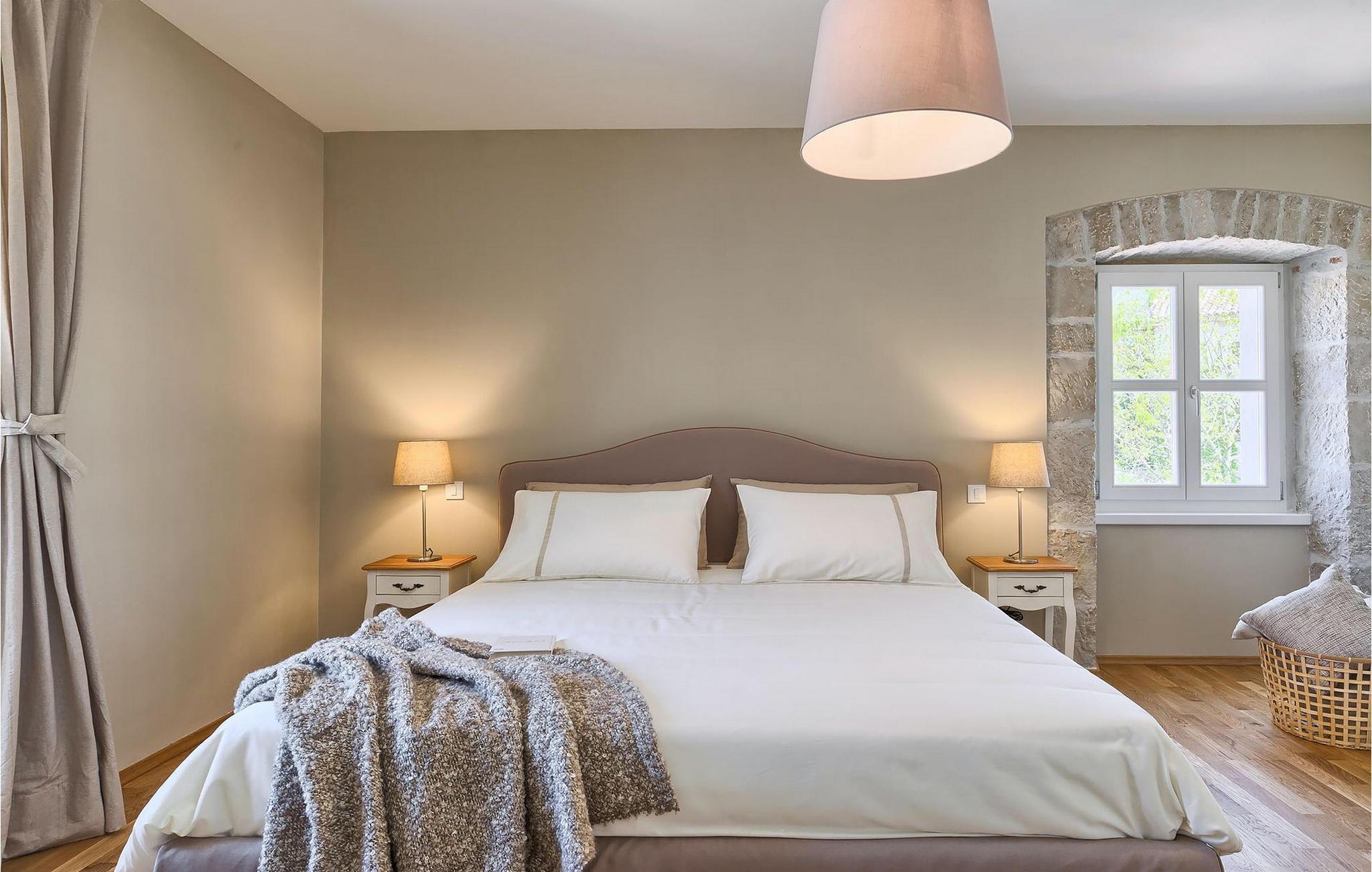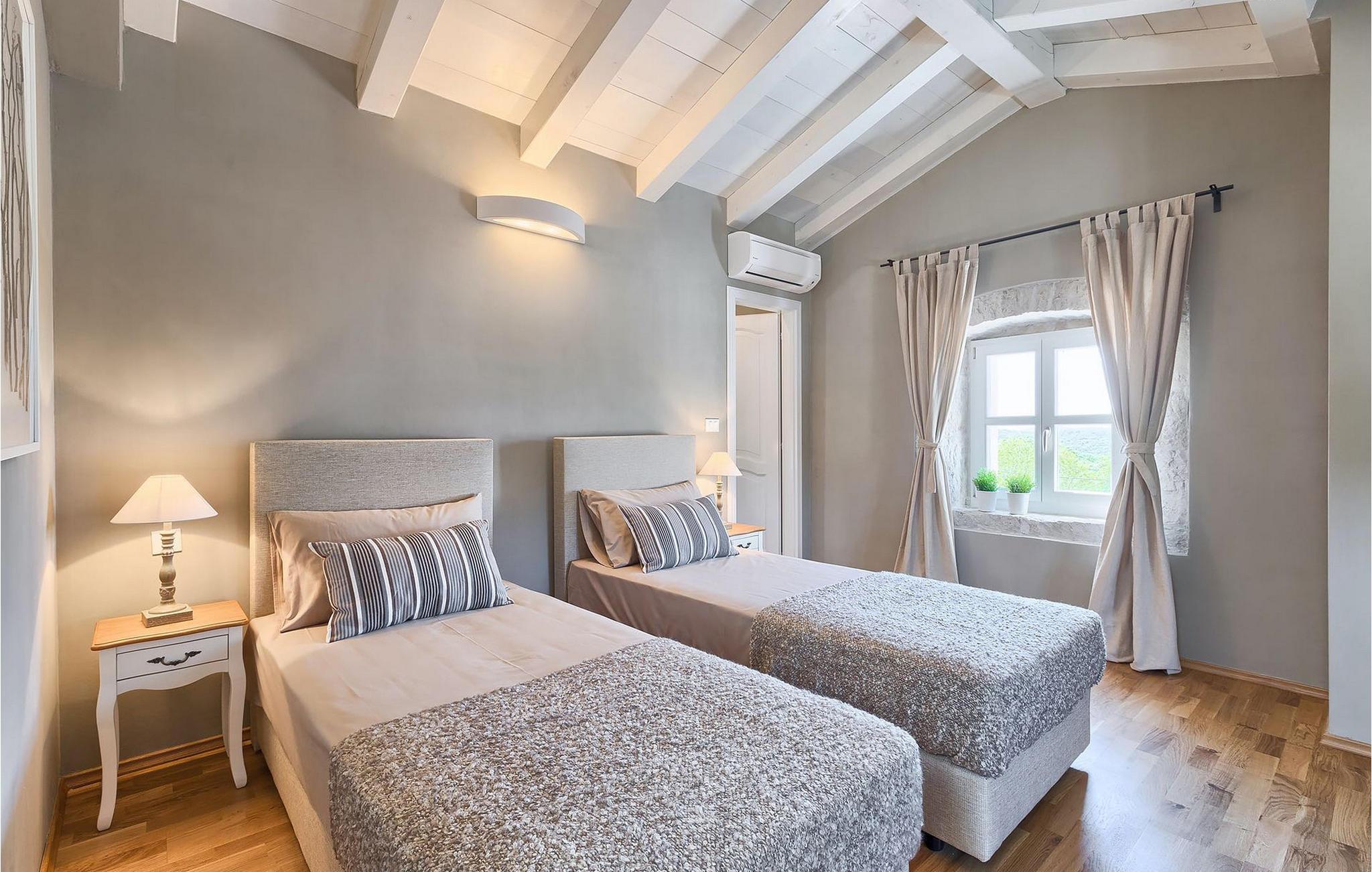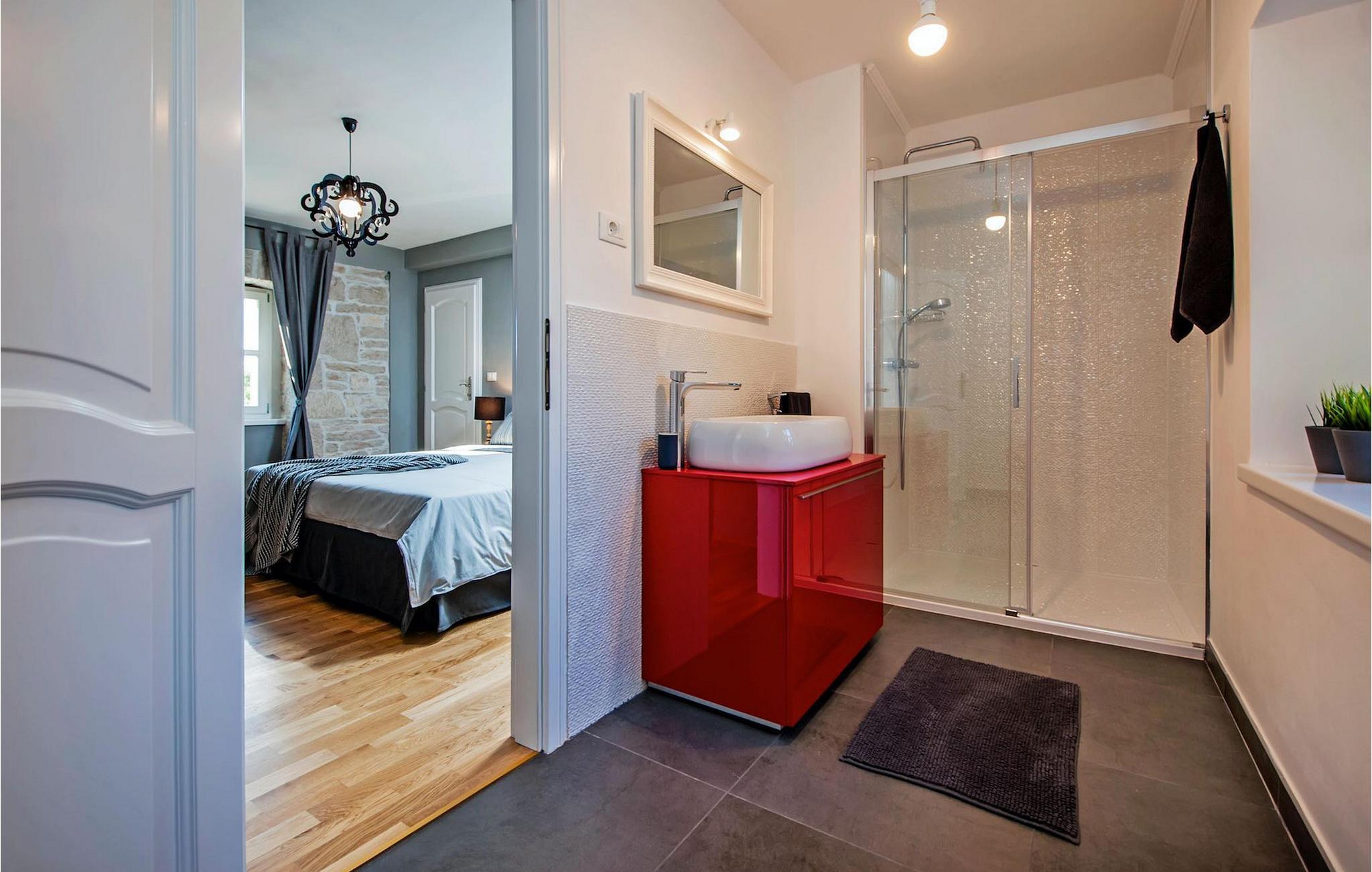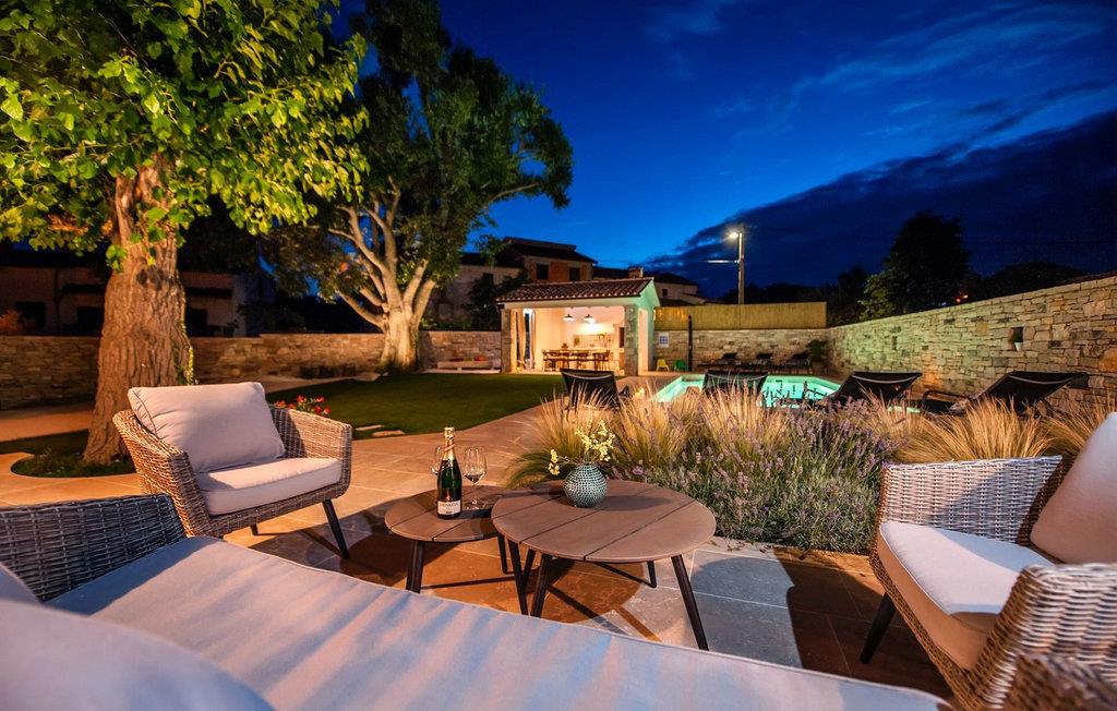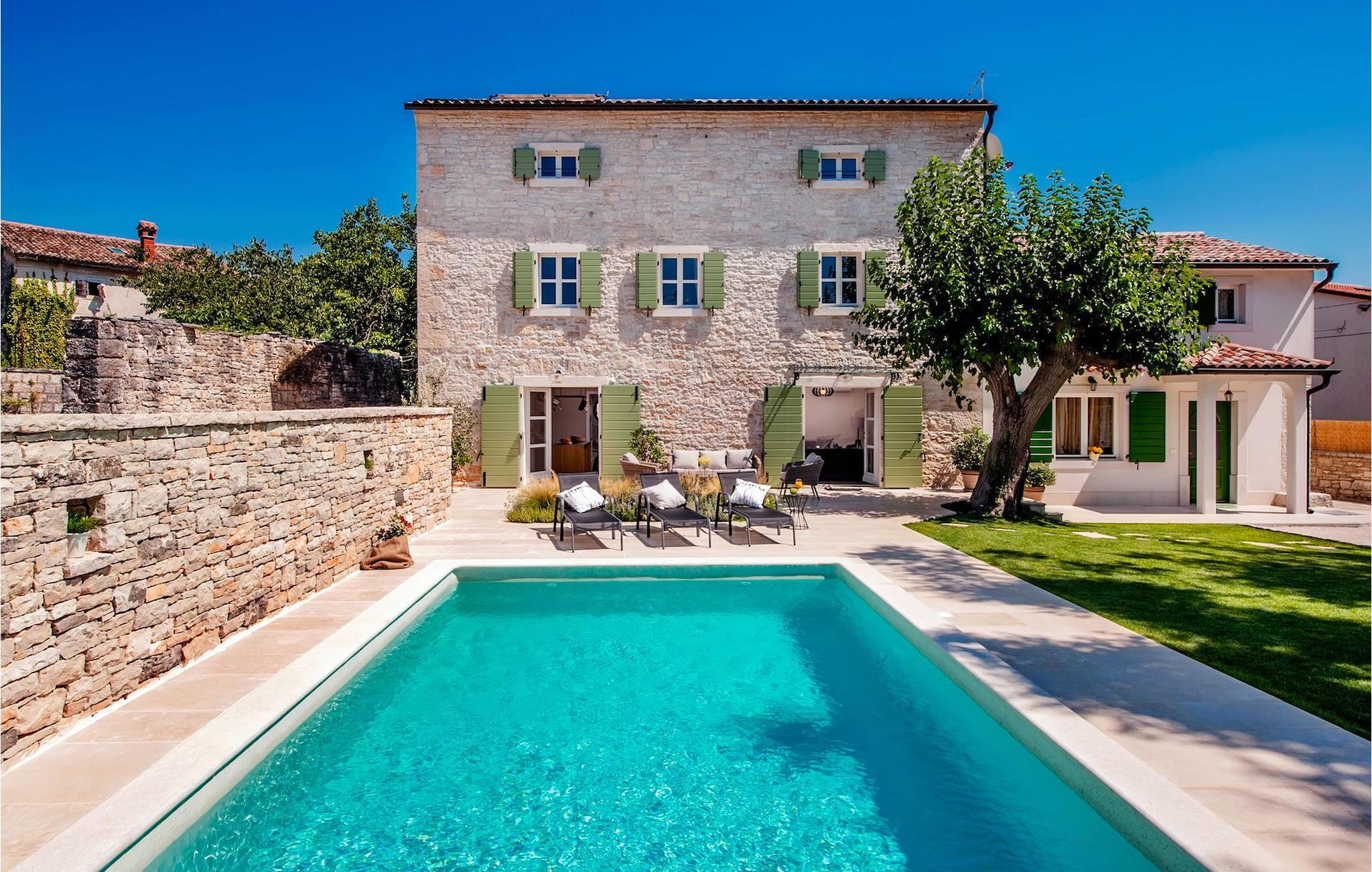Beliggende i den charmerende og maleriske lille landsby Mrgani, tæt på byen Rovinj, er Villa Luvi det perfekte sted at bo, hvis du ønsker at nyde et moderne opholdsrum og være tæt på turist-hotspots i Istrien, men stadig opleve charmen og freden i en typisk istrisk landsby. Dette er et gammelt istrisk landsted, der er blevet renoveret og istandsat, så du kan nyde det fuldt ud. Villaen har 4 soveværelser, heraf tre med dobbeltsenge, mens det fjerde har to enkeltsenge. Alle værelser har aircondition og eget badeværelse. I stueetagen finder du et fantastisk moderne og fuldt udstyret køkken, hvor du kan nyde at tilberede lækre måltider til dine kære. Da stueetagen er designet som et opholdsområde i åbent plan, er de hyggelige sofaer og tv kun et skridt væk fra køkkenet. På det udendørs område finder du en al fresco spiseplads, et udendørs køkken, privat parkering til to biler, og selvfølgelig det bedste af det hele - en privat pool, hvor du vil finde forfriskning på de varme sommerdage. Der er ikke mere at sige end - god fornøjelse!