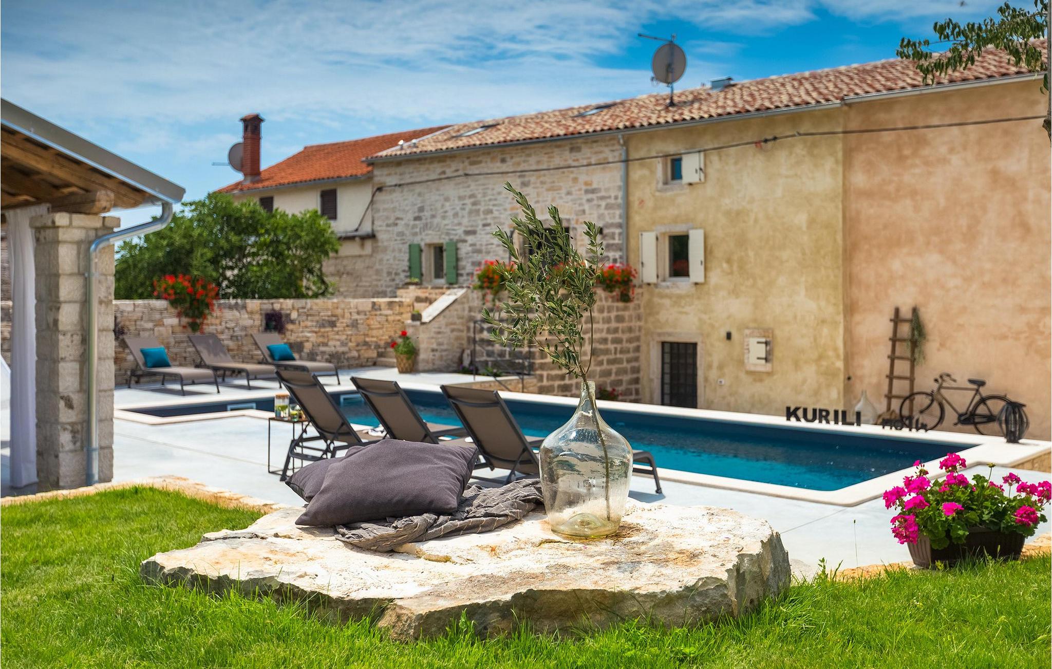 Villa Kurili No14 er et kærligt og omhyggeligt restaureret traditionelt istrisk stenhus knyttet på begge sider, som har været ejet af den samme familie i generationer. Mange af de originale autoktone detaljer blev bevaret, samtidig med at de blev tilpasset og udstyret i overensstemmelse med alle moderne faciliteter og behov. Villaen kan højst rumme 7 gæster.