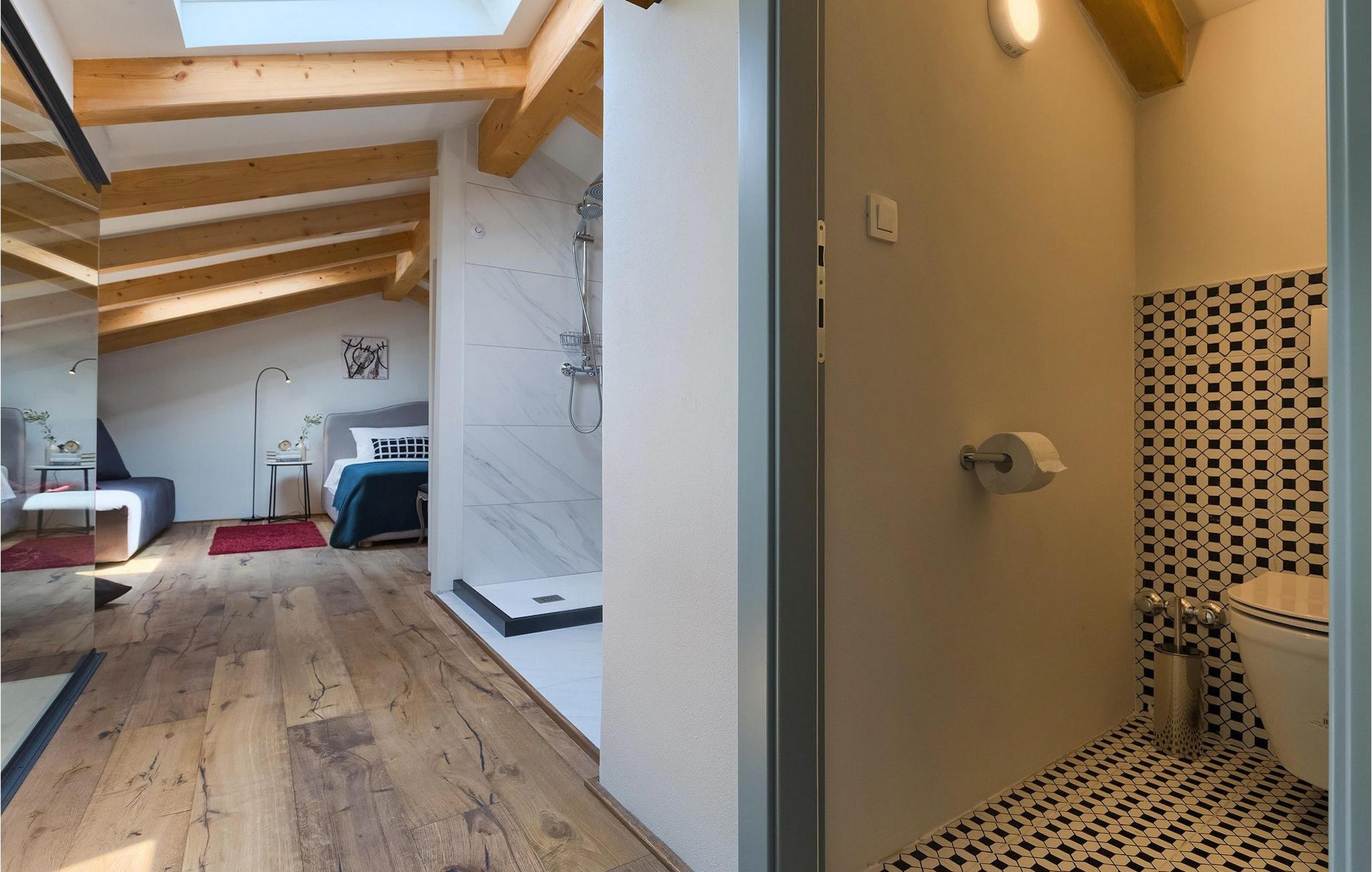 Badeværelse (nr. 1) - WC. Varmt og koldt vand. Bruser
