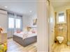 Denne villa med privat swimmingpool ligger i Marici nær Kanfanar. Den maleriske by Rovinj med smalle gader, hyggelige restauranter og terrasser og de smukke strande ligger 20 minutters kørsel væk. På en indhegnet grund har du en swimmingpool, en solterrasse med liggestole og parasoller, et udendørs køkken og en overdækket terrasse med et spisebord til din rådighed. Villaen har et behageligt interiør og består af en stue med åbent køkken, tre soveværelser og to badeværelser og et separat toilet.