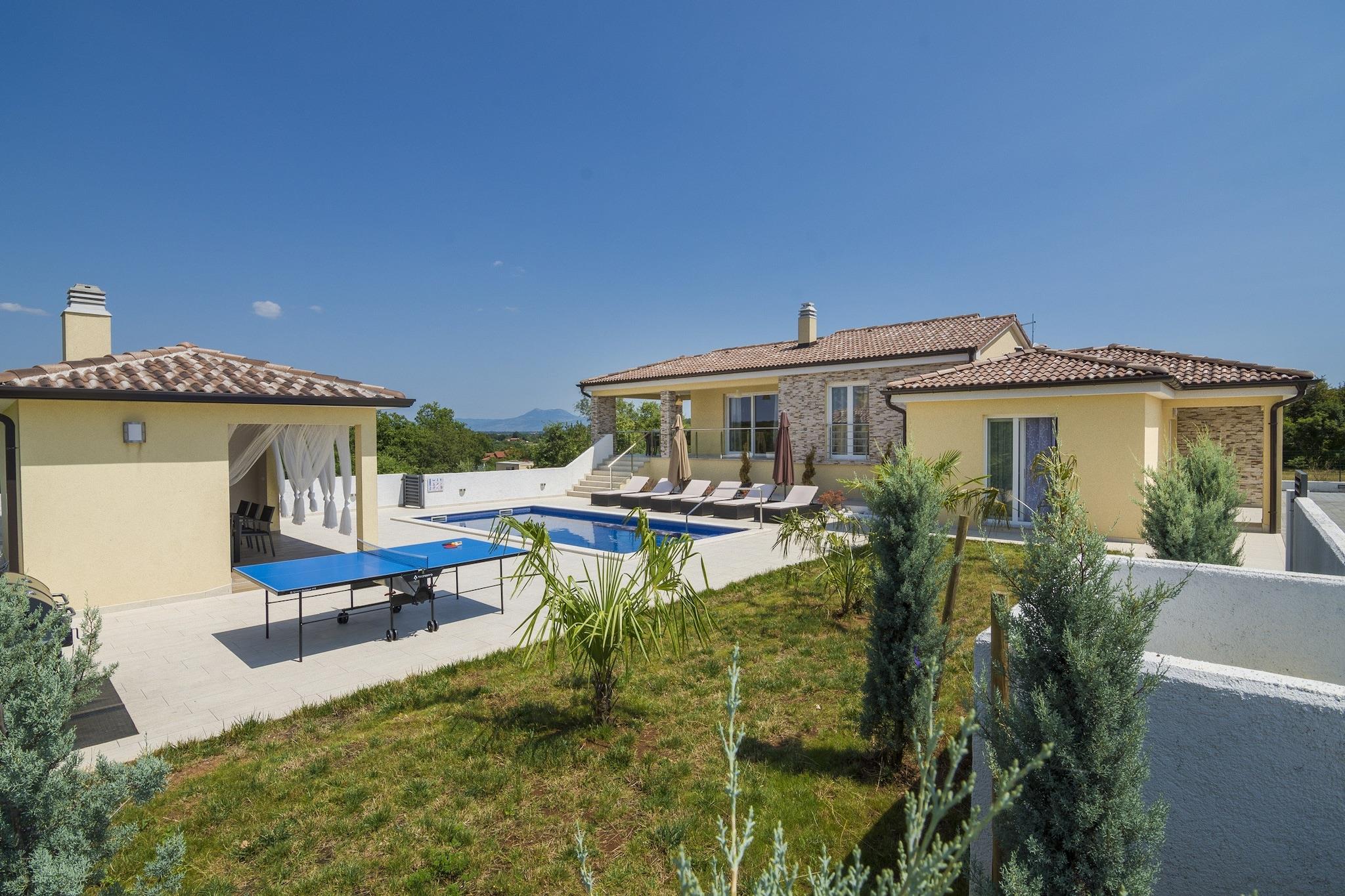 Landlig luksus med et moderne touch Velkommen til din private del af Istrien! Denne rummelige 4-værelses villa i Kapelica kombinerer landlige ro med komforten i et fuldt udstyret, moderne hjem. Med en privat pool, stor indhegnet have, grillplads og liggestole er det det perfekte tilflugtssted for familier eller venner, der søger plads, stil og solskin. Hvert soveværelse har en king-size seng og eget badeværelse, hvilket sikrer komfort og privatliv. Villaen har også et fuldt udstyret åbent køkken, indendørs spisestue, satellit-tv, Wi-Fi, en pejs og aircondition overalt. Fredelige omgivelser, men alligevel godt forbundet Beliggende i et roligt, familievenligt område, tilbyder villaen en fredfyldt landlig flugt, mens den stadig er tæt på bekvemmeligheder. Et supermarked er kun 2 km væk for alle dine væsentlige ting, og du er kun 7 km kørsel fra den nærmeste strand for krystalklart Adriaterhav. Udforsk den charmerende by Labin eller tag til kystbyen Rabac for panoramaudsigt over havet, kulturelle attraktioner og pulserende lokalliv - alt sammen inden for en kort køretur. Velsmagende lokal spisning i nærheden Foodies vil elske spisemulighederne i nærheden: Nyd traditionelle istriske retter på Restaurant Tina eller en afslappet aften på Pizzeria Rumore, begge kun 5 km væk. Uanset om du tænder op for grillen i villaen eller udforsker det lokale køkken, er hvert måltid her et øjeblik at nyde.